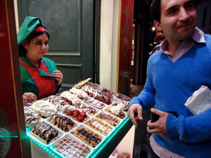 Above: Arsean choosing a waffle… one of the most profoundly difficult decisions for the Brussels tourist