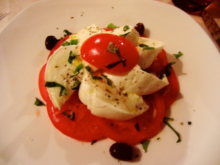 Vini da Gigio’s caprese appetizer. The most amazing caprese salad I have ever encountered… moist mozzarella, juicy, ripe tomatoes, Italian olive oil and balsamic, and a sprinkling of fresh basil, salt, and pepper to top it all off. Oh and I see an olive or two in there. (Note: I did not play with the color of this photo- it really was this vibrant).