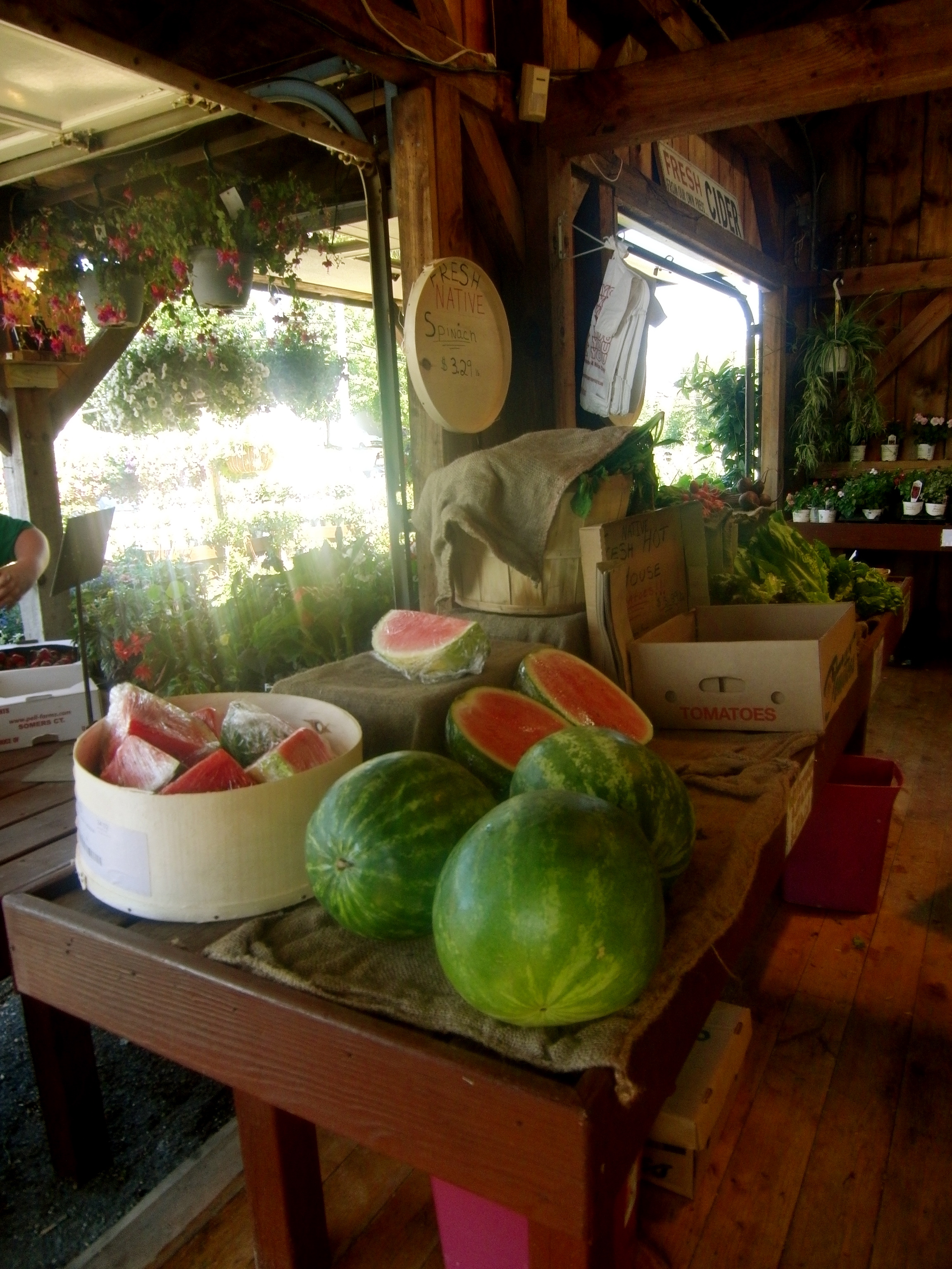 But I didn’t go up there for the sole purpose of shameful laziness: I love to visit the various farm stands and nurseries throughout the season. With each week comes new seasonal food, new fragrances, new sightings, new flavors. I learned that this is the best time of year to eat fresh romaine as it is at its peak in mid-June. It often lasts longer this time of year, and we bought enough to dine on romaine for breakfast, lunch, and supper for the rest of the week.
