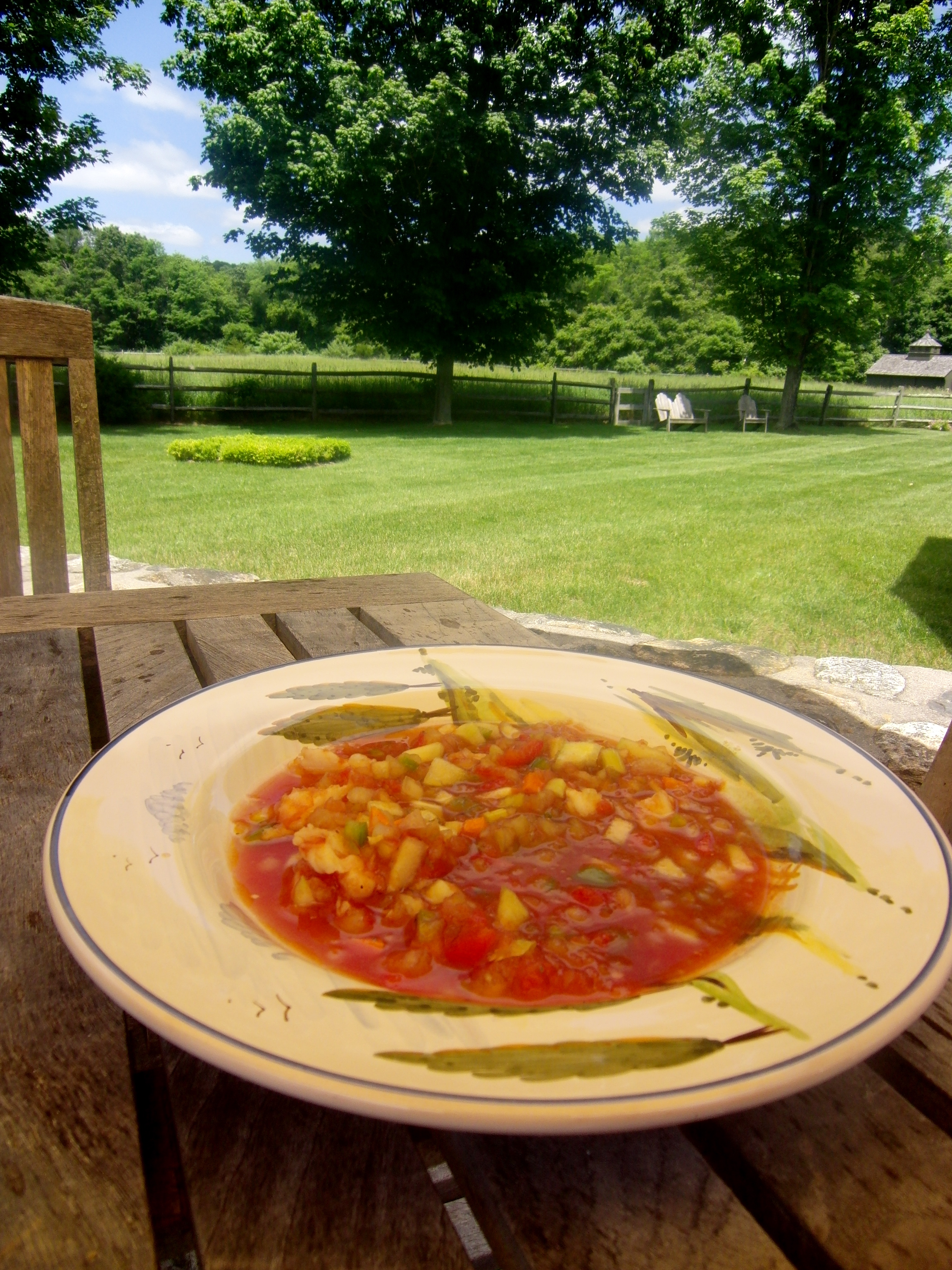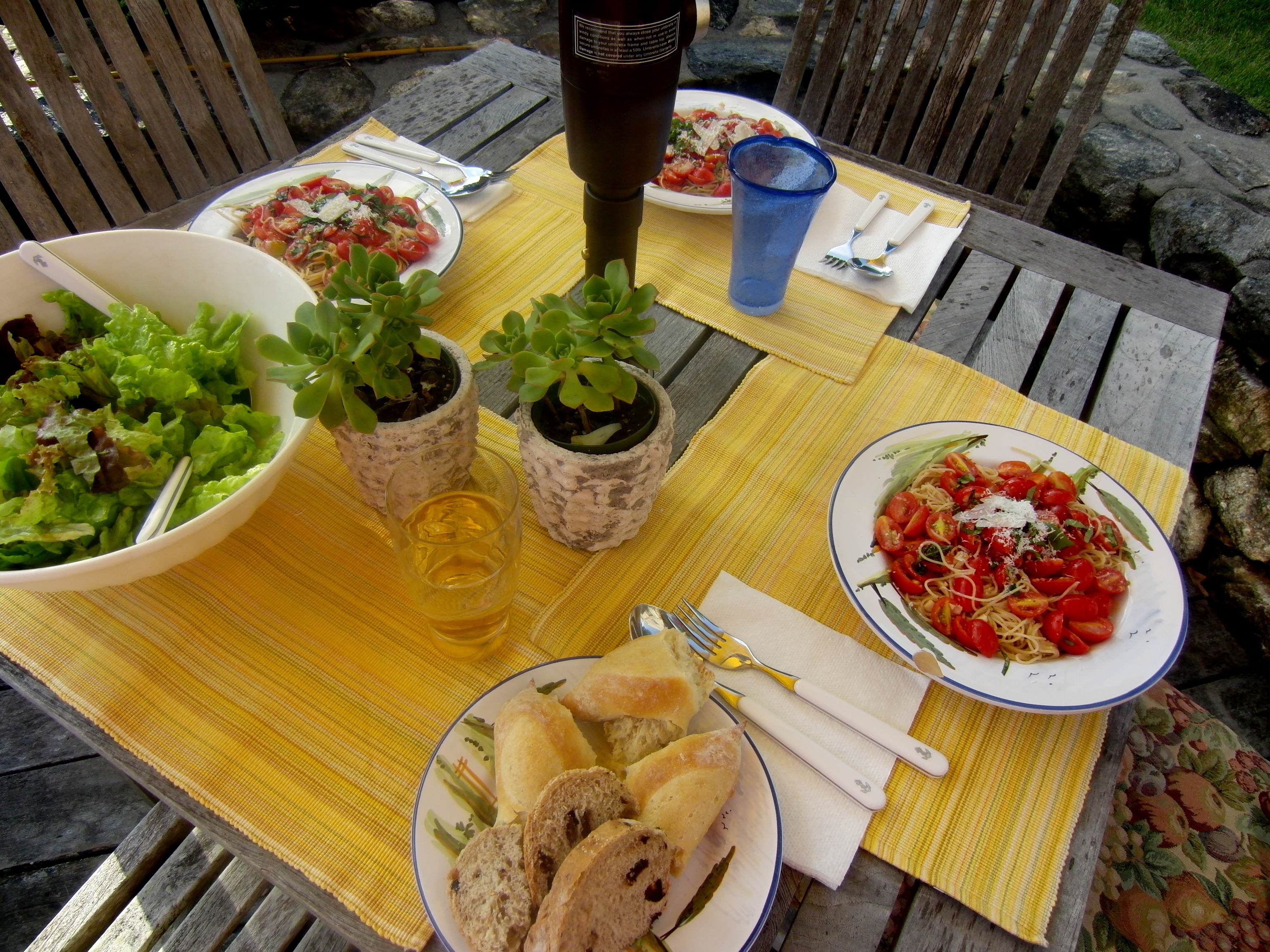 Summer garden pasta with fresh lettuce from the farmstand and Howard’s Bread: a renowned and heavenly treat found only in the Lyme, Connecticut area.
