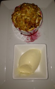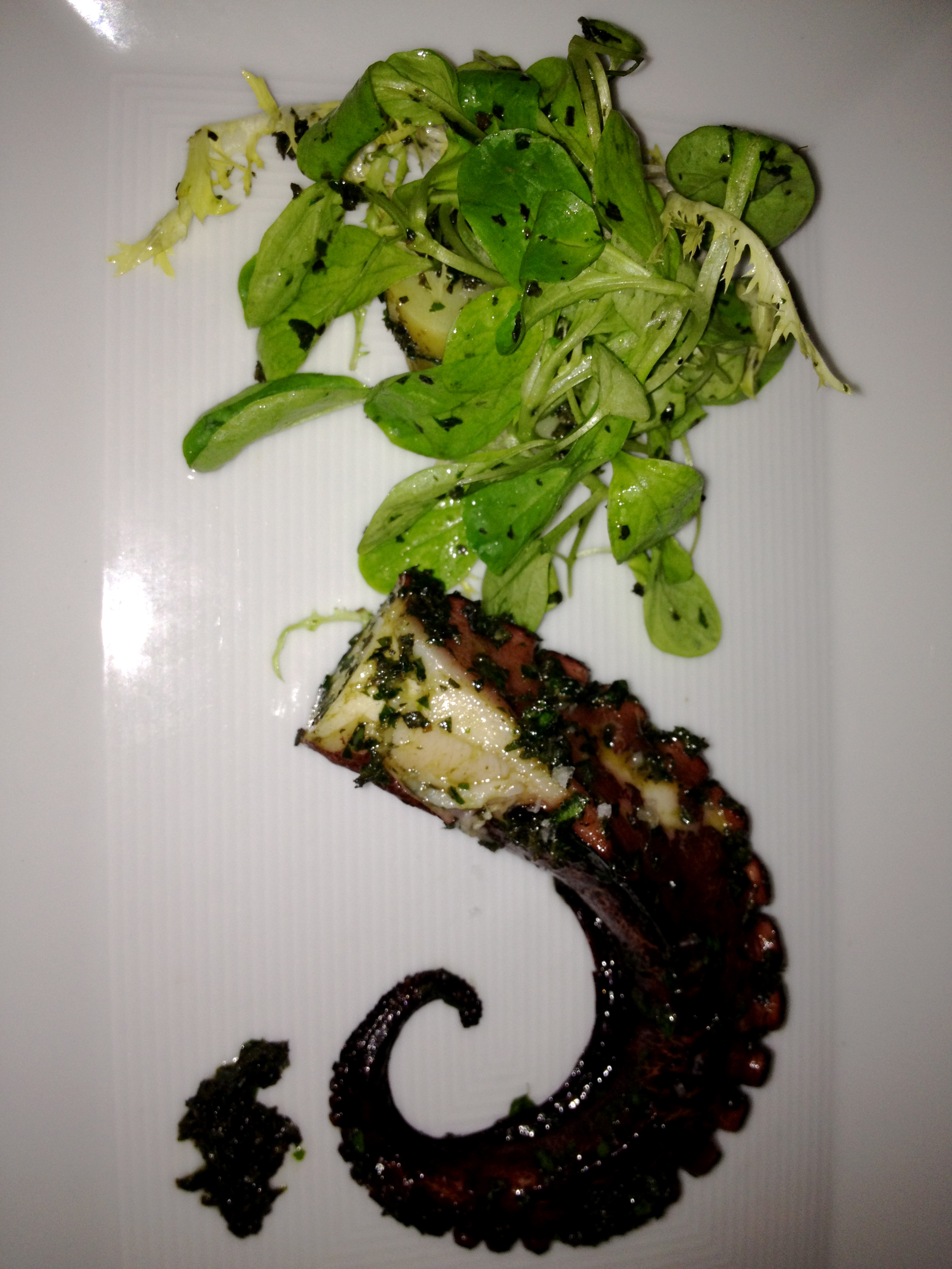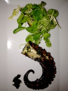 It was on one of those recent, unbearably hot days that I dined at Fulton on the Upper East Side. We braved the stifling heat, all sufficiently hungry but unable to get a table inside where it was busy and seemingly louder than the quieter outdoor tables, albeit a pleasant ambience and a casually elegant crowd. We had practically become one with the pavement, melting into the sidewalk and feeling the temperature rise every time a car drove by, but we tempered ourselves with sweating glasses of white wine and light dinner options. Our server was as knowledgeable as could be. He was friendly, upbeat, and extremely patient with all of our questions and abundance of indecisiveness. His pleasant, fun, eager attitude reminded me of Tyler Florence’s personality on ‘Tyler’s Ultimate.’ I couldn’t believe how stellar his performance was considering the fact that he was wearing dark blue jeans in the heat. The crab cake appetizer was decidedly the best crab cake I have ever eaten. It was moist and creamy, without the small bits of crab and pieces of pepper and panko separating from each other. Both the green salad and the arugula salad were impeccably fresh and appropriately sized. The grilled octopus, as seen in the photo, was perfectly cooked so that it was neither too chewy nor too fishy yet. It had that ‘grill’ flavor, that ‘grill’ smell. The whole branzino was also grilled to perfection, and I overheard other Fulton regulars choosing the same option, mentioning how often they frequent the restaurant and order this light, filling white fish. Even though the suffocating heat had not lifted by 10pm, we decided against a cool sorbet or homemade ice cream flavor and opted for the warm, mixed berry crumble with almond struesel and brown butter ice cream. I shamelessly monopolized the small ramekin, breaking the crisp, crumbly topping, scooping dripping, sweet, plump blueberries onto my spoon, and dipping it into the vanilla ice cream before shoveling the dollop into my mouth. Between the heat, the crumble, the fish, and the intermittent ice cubes, I had a feeling of fullness that could have only been cured with a walk up to Carnegie Hill and back (if only it weren’t so brutally hot). As if the service were not exceptional enough, we were each rewarded with adorable, complimentary cookies, presented in cellophane bags and tied with a ribbon. Beautiful presentations and fantastic fare, I highly recommend this refreshingly ‘downtown’ seafood restaurant on the upper east side.