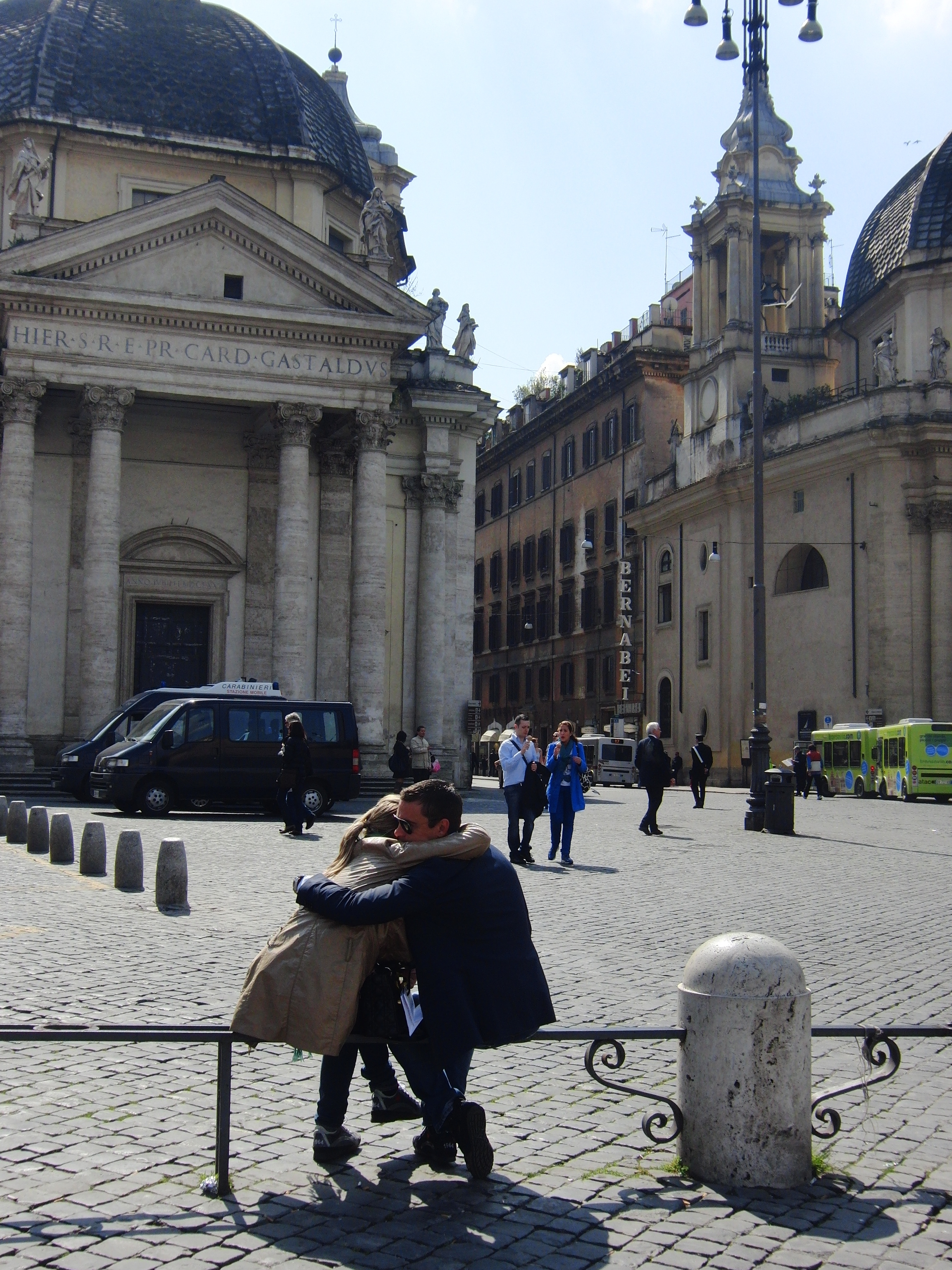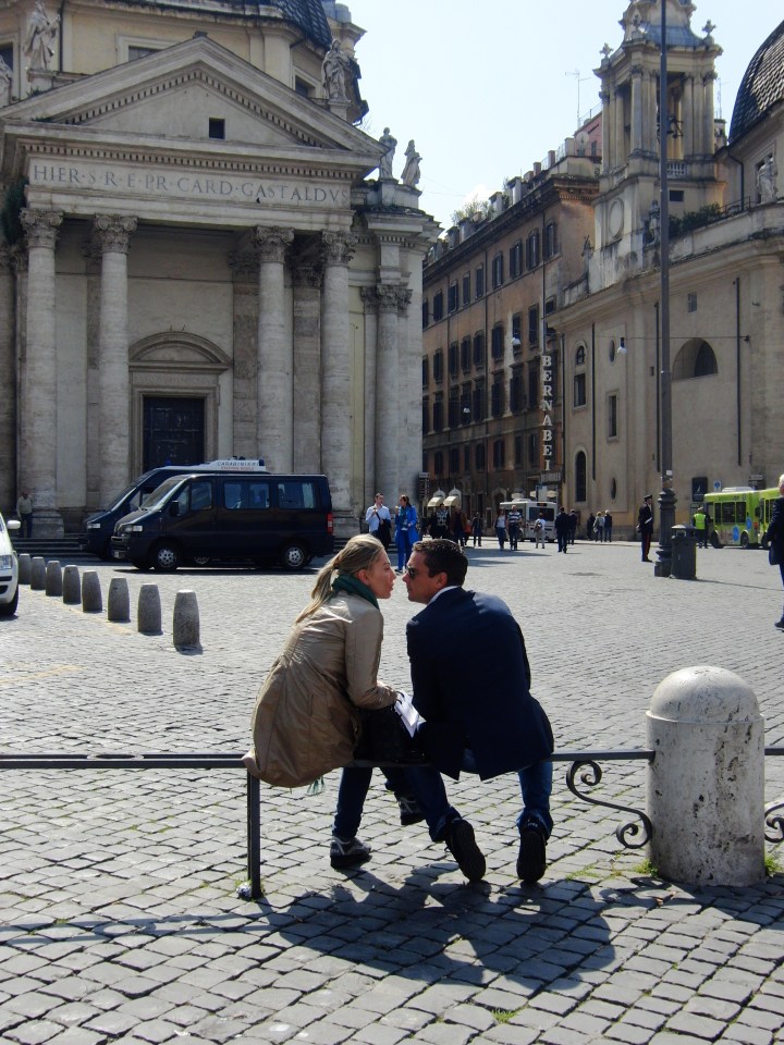 A very chic couple pretend that railing is the least bit comfortable (it is in fact incredibly painful for the behind.. I always wondered why they don’t set up more benches) in Piazza del Popolo.
