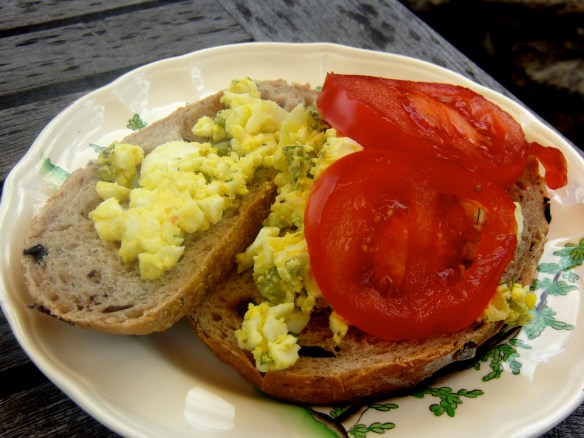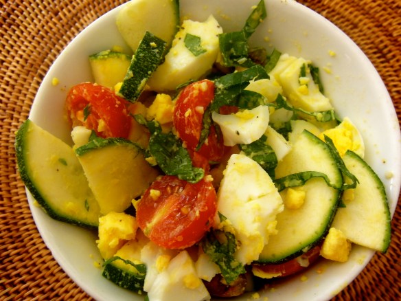 July 16, 2012 • 0 Summer Appetizers, Vegetable Plates, and Simple Lunch Ideas Hard boiled eggs chopped and tossed with cherry tomatoes, raw zucchini, basil, and freshly ground pepper Hard boiled eggs with peppercorns, salt, pepper, and a dash of greek yogurt, topped with garden tomatoes on Howard’s Olive bread Rate this:Share this: Click to share on Facebook (Opens in new window) Facebook Click to share on Pinterest (Opens in new window) Pinterest Click to email a link to a friend (Opens in new window) Email Click to print (Opens in new window) Print Click to share on X (Opens in new window) X Click to share on Tumblr (Opens in new window) Tumblr Click to share on LinkedIn (Opens in new window) LinkedIn Like Loading... Related Categories: Appetizer, Farmstand Meal, Grilling, Platter, Salad, Side Dish Tagged as: grilled vegetables, Hard Boiled Eggs, Healthy Egg Salad, Healthy Lunch, Pesto