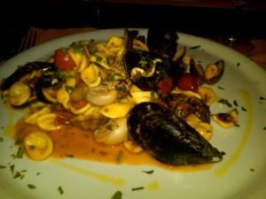 ‘Ciao!’ I called out to the deep male voices I heard bellowing from the kitchen. A dark-haired Italian appeared. He showed me the menu and told me how the cuisine is of Neopolitan and Puglian styles. I promised to return that evening for ‘la cena’ with a friend.