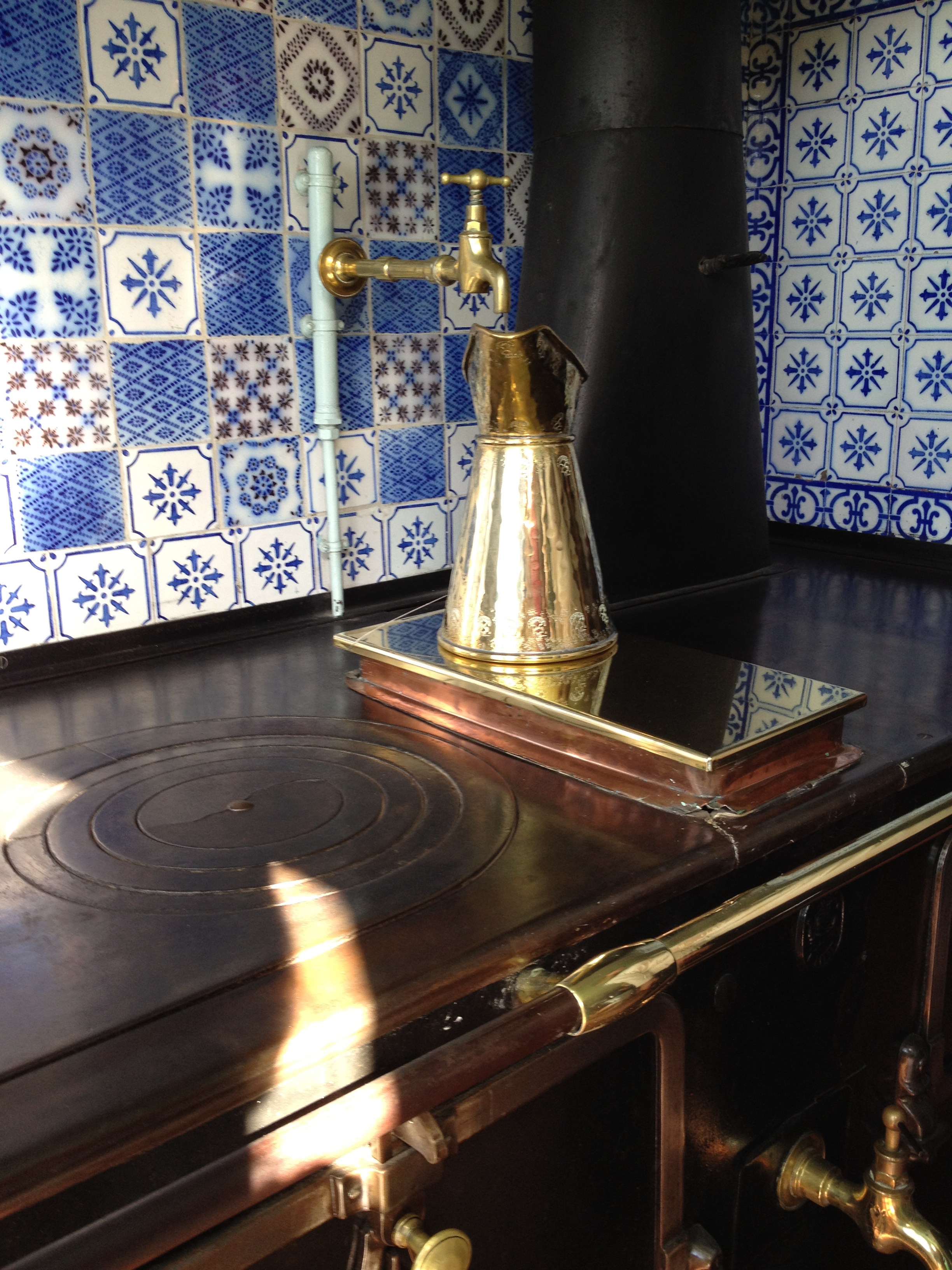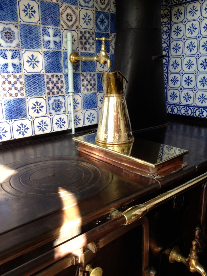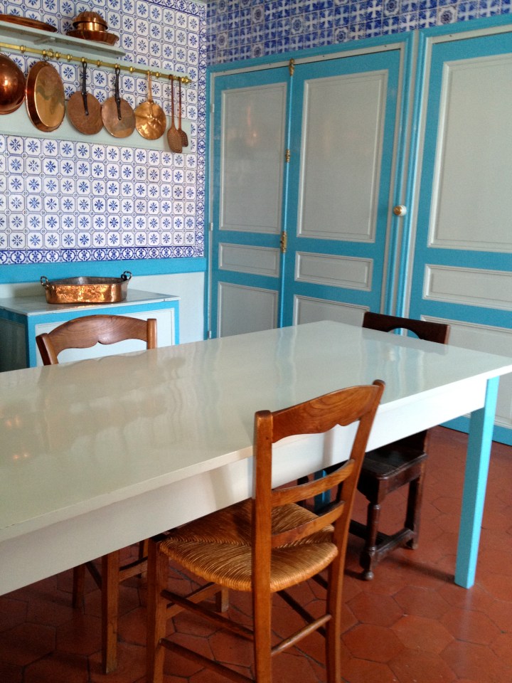 Although the bounty of colors in Monet’s incomparable garden extends across the rainbow and beyond, yellow and blue were clearly favored in the house’s interior. In the yellow dining room, Alice received family, friends, dealers, collectors, and artists from all over the world, including visitors from Tokyo. Monet and his wife formed close bonds with many prominent Japanese people in Paris, and the painter made his visitors feel all the more welcome amongst the Japanese-inspired decor found throughout his country home. The blue kitchen, with faience tiles from Rouen made using rare cobalt blue, exuded warmth and freshness. At the time, the kitchen remained a place for the cook and her maids, not for the family and their guests. Food, however, played a large part in the family’s everyday lives, and gourmet meals lovingly cooked by the chef with ingredients grown by local village farmers were an important part of the day. The fireplace with its roasting spit and the large kitchen table demonstrate the homey, welcoming atmosphere that Monet sought to create in the family style kitchen.