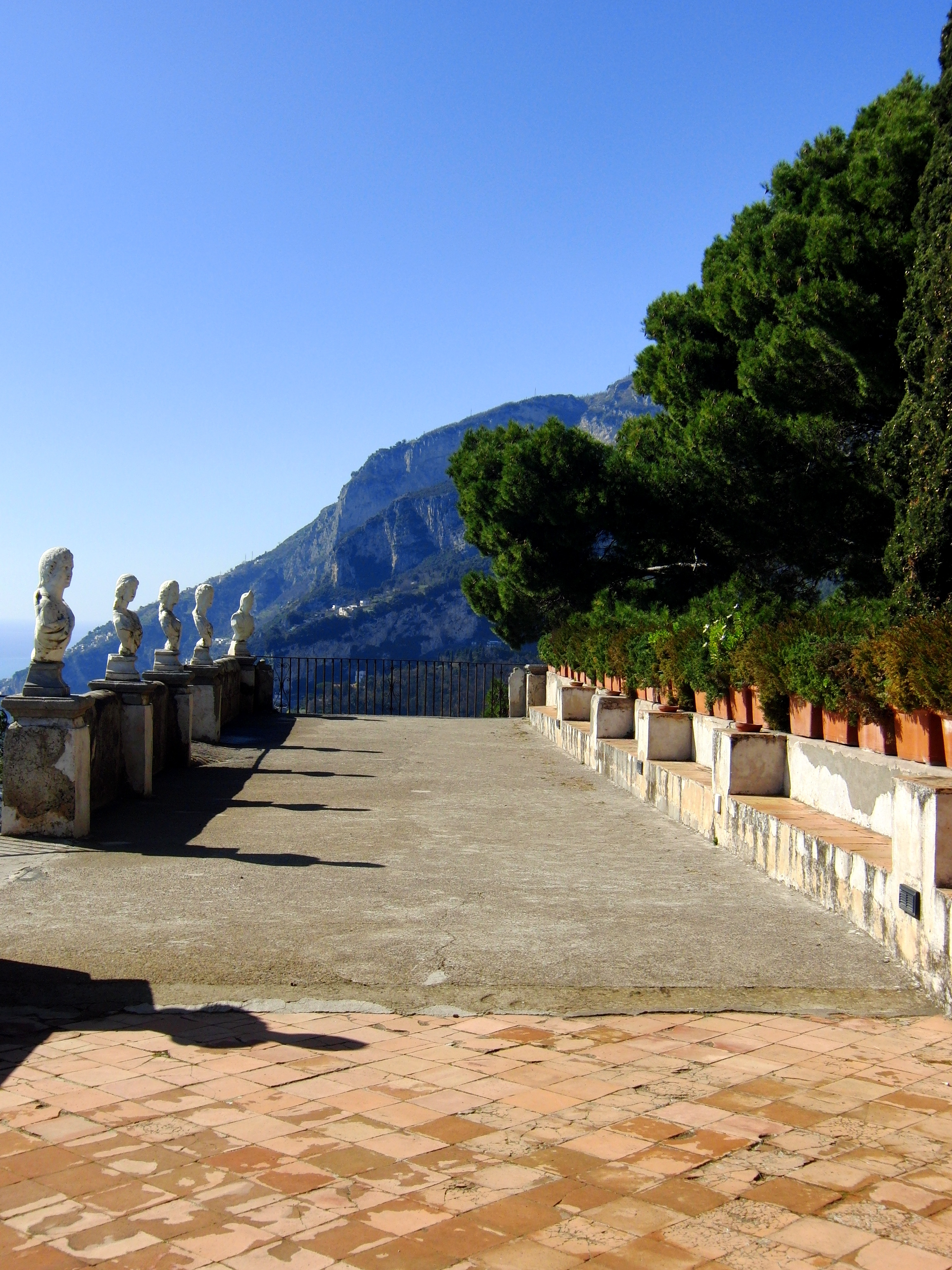 The infinite terrace at Villa Cimbrone makes me wish I could fly. The shocking blue of the sea, a reflection of southern Italy’s vibrant sky, is hypnotic. I can see why Greta Garbo chose Villa Cimbrone as her favored escape. I visited in February when the walkway is far more barren than in summer months and the urns not yet planted, but I was in such a dreamy state that I barely noticed.