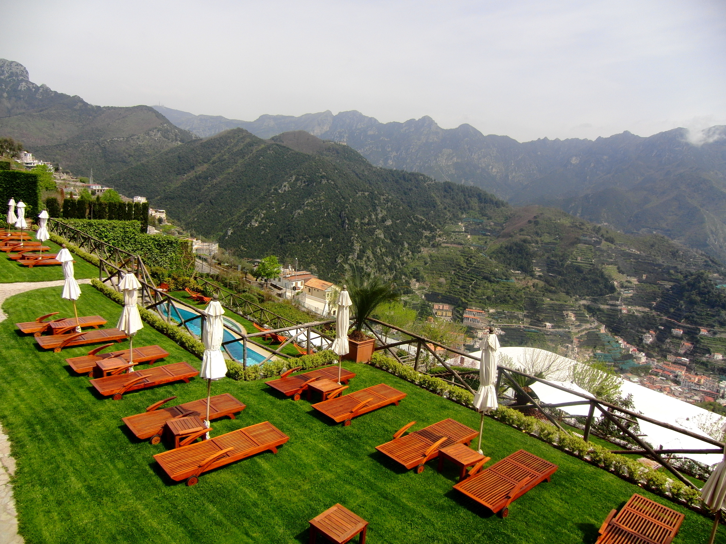 While Villa Cimbrone is now a hotel, it remains a tourist destination, and if the thought of ‘intruders’ bothers you, I might suggest Palazzo Sasso, recently renamed Palazzo Avino, located on the other side of the village. It’s terrace is just as magnificent, and the property has numerous levels of man-made plateaus. Lounging and lusting can be done on all levels, but there is a special level for the hotel’s outstanding spa, outdoor exercise room overlooking the sea, and two separate pool plateaus. There is even a rooftop sanctuary with two whirlpools, an ideal spot for a dip and a Prosecco as the Italian sun sets. Palazzo Avino offers two dining options: the two Michelin starred ristorante Rossellinis or a casual meal against the crystal blue background on the terrace at Terrazza Belvedere.