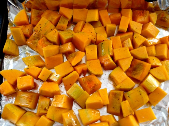 Recipe: Pre-heat oven to 400°F. In a large bowl, toss squash with 2 tablespoons olive oil, salt and pepper. Arrange squash in a single layer on a large baking sheet and roast for 30-35 minutes, until the squash is tender and golden.