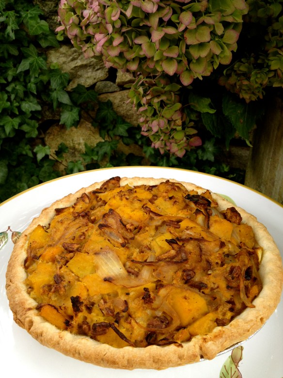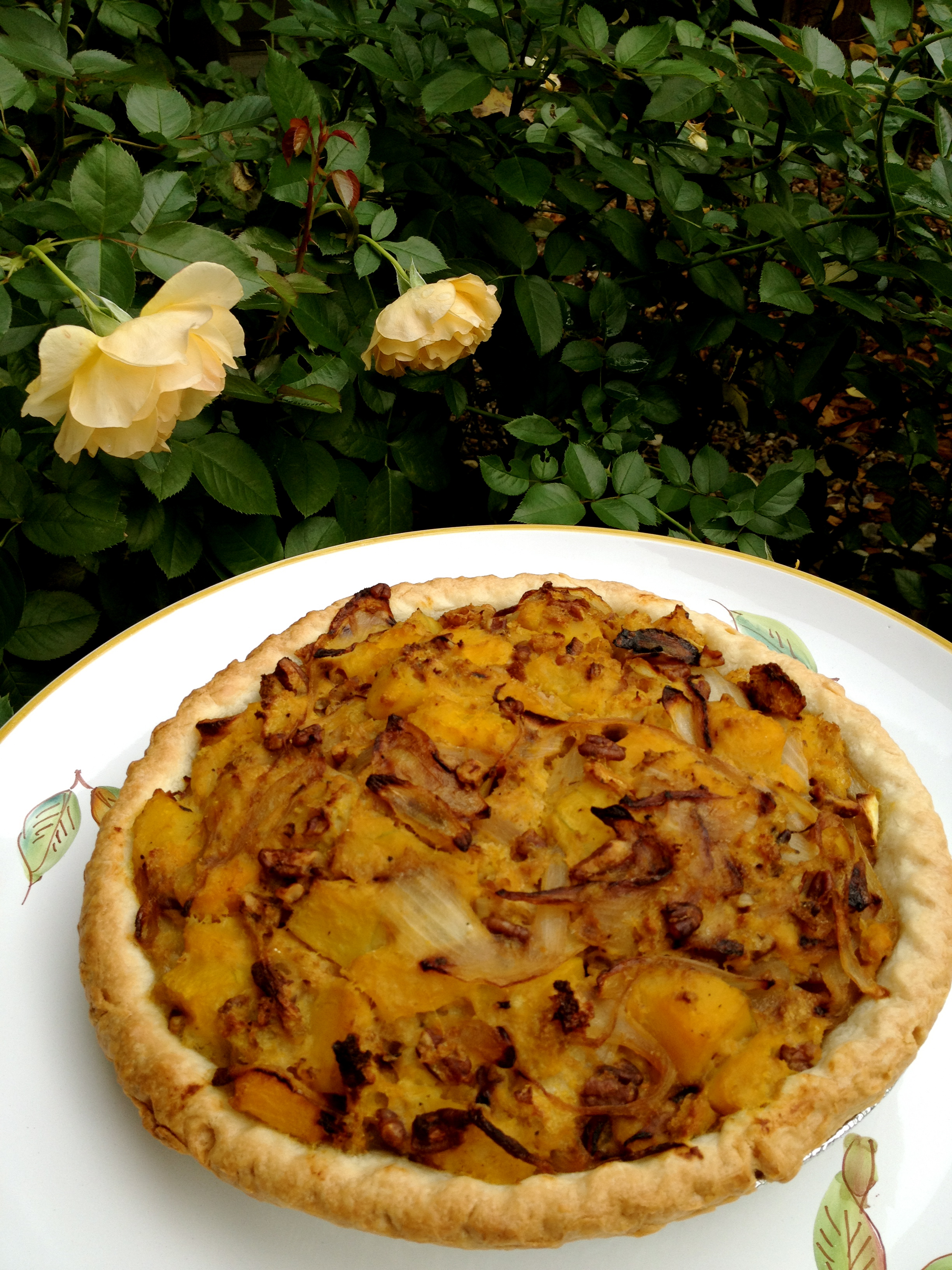 This is a quintessential Autumn dish. It makes for a great, quick lunch served with a simple salad of fresh lettuce from the farm. Prepare a whole pie if you are having friends over for a lazy Sunday afternoon, and keep the leftovers in the fridge for the rest of the week. An added dash of cinnamon and nutmeg compliment the squash, giving it a warm, spicy aroma. This is my version of comfort food: light but decadent, with beautiful, Autumnal colors.
