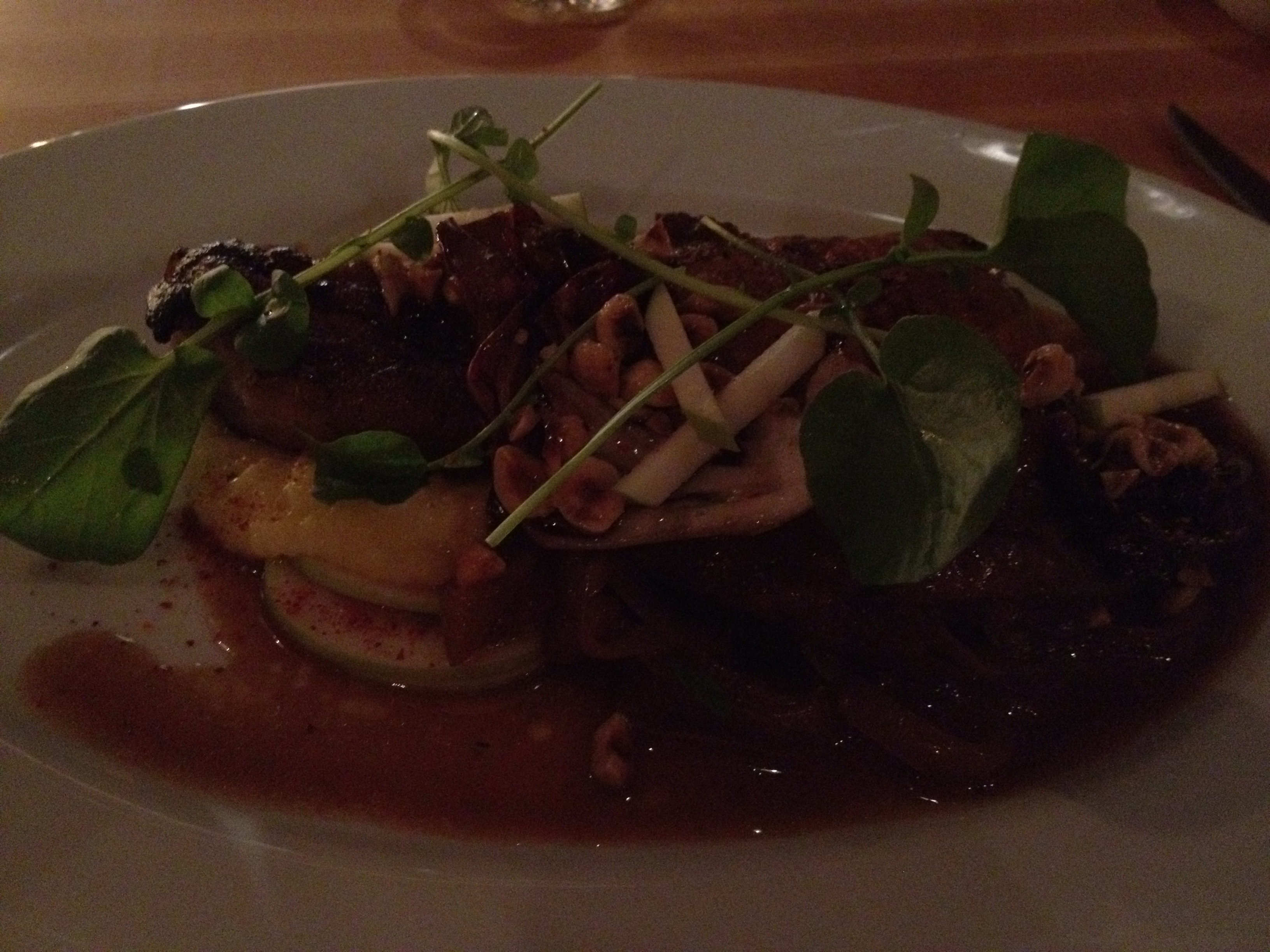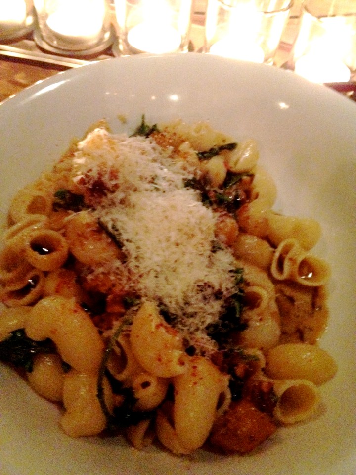 Each plate was beautifully and artfully presented, and my eyes followed them out of the kitchen and to the other diners’ tables with excitement and jealousy. The farm-fresh ingredients were celebrated on each dish: their flavors, shapes, and colors were enhanced and combined in a way that demonstrated the chef’s appreciation for their naturalness. The plates themselves were beautiful. Each and every component exemplified the owner’s unassuming tastes and her unabashed love and passion for her small but meaningful contribution to Portland’s restaurant scene, obviously appreciated by diners from near and far. Sara ordered the pasta (shape of the day): caramelized butternut squash, kale, dolce latte gorgonzola, brown butter, and walnuts. I went with the Roast Pork Chop with raddichio, toasted hazelnuts, apple cider, and caramelized onion sauce. They were two of the best dishes I have ever had. Each had a warm, autumnal scent which could have been meals on their own. If my roast pork chop dish were a candle, I would light it in my kitchen every chilly day this winter. The chop was cooked to perfection, none too chewy and not at all fatty. The radicchio was cooked down to the same tenderness as the caramelized onions, and the sauce was so flavorful, so comforting, I couldn’t get enough of it. There were also thinly sliced Granny Smith apples mixed in, and the chop sat on a bed of polenta and mascarpone. The perfect forkful was a piece of the pork, a few caramelized onions, one or two crunchy hazelnuts, and one thin slice of apple, swished around in the sauce and finished off with a dollop of the polenta. Sara’s pasta dish was equally comforting: a blend of spice (was it a dash of cinnamon or nutmeg?) with the tender butternut squash and crunchy walnuts, each bite more decadent and succulent than the last. My only regret at Bresca was not ordering more: the little garden salad was autumn and winter combined on a dish, served with whole roasted carrots gleaming on the beautiful plate in a honey, cumin, and thyme glaze. The shaved brussels sprout salad served with parmesan and toasted walnuts also looked divine. Bresca is a treasure. Everything from the ambience, to the decor, to the warm, home-y feel and the lovingly crafted food is exceptionally well-done.