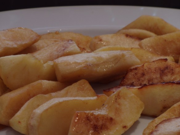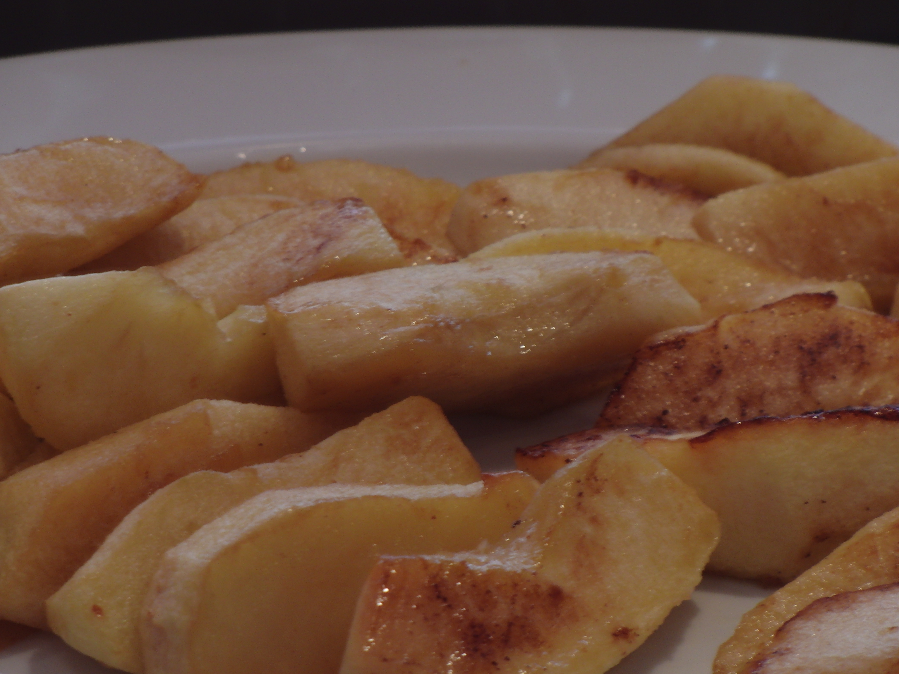 Peel the apples and cut into 8 parts. Cook the apples in butter over medium heat until lightly brown. Reserve.