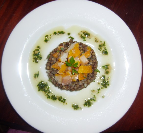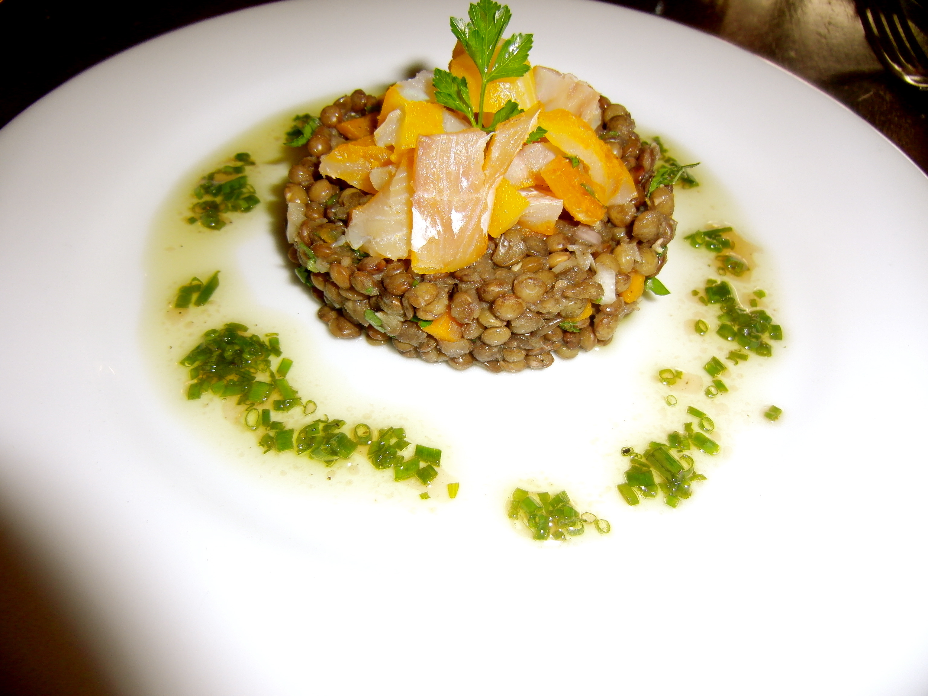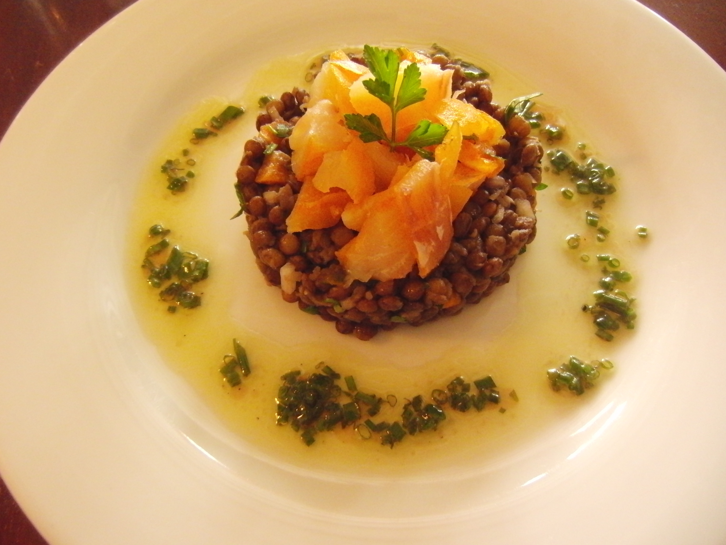 One of the best dishes I have ever had the pleasure of eating: a simple lentil salad topped with haddock