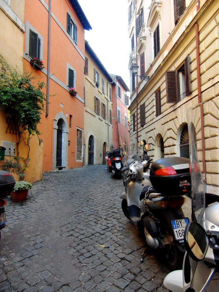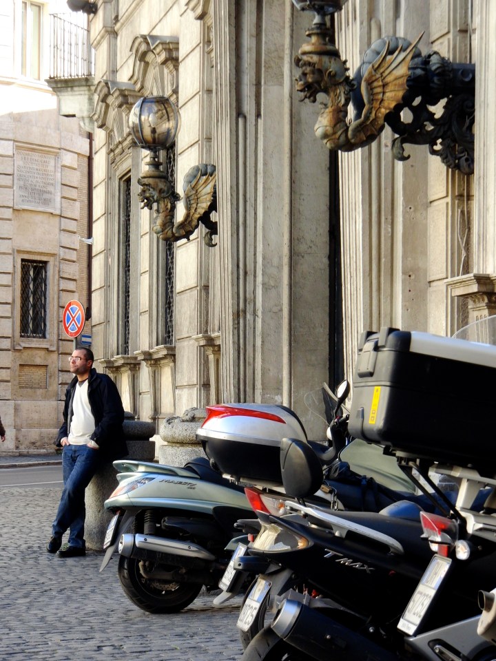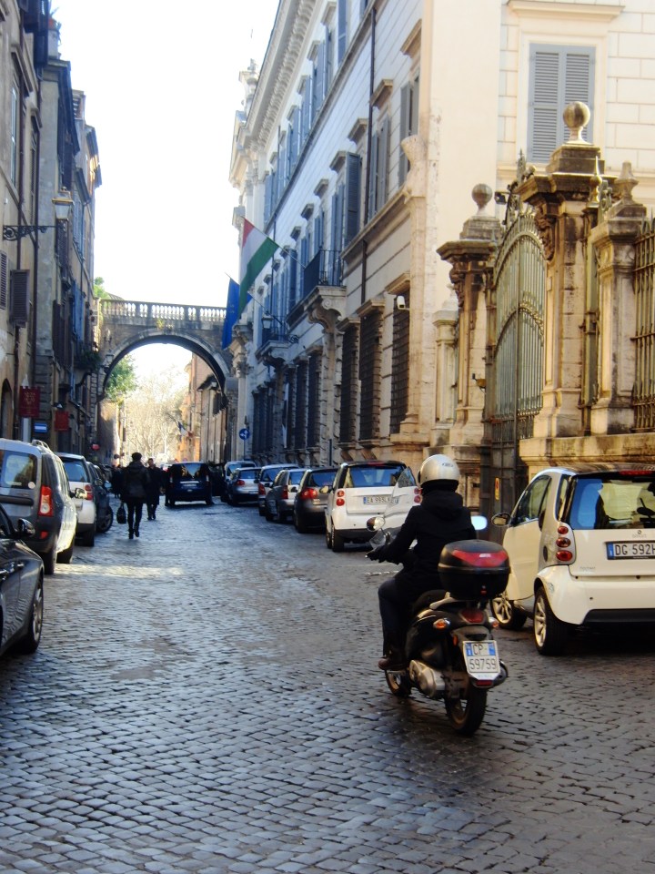 There are no rules on the roads of Rome. It’s every uomo for himself, every pedestrian crosses at their own risk, and yellow dividing lines are meaningless. Criss-crossing lanes, never using signals, running red lights, and going the opposite way down a one-way via (what? I’m only going one way!) are Roman ways of life. They just want to get where they need to go, no matter how many laws they break getting there. Once arrivati, they park wherever they can fit. Scooters are immune to regulations; not even sidewalks are off limits to these headstrong motorists. A morning stroll alongside the Tiber River is always accompanied by the rush-hour soundtrack: infinite horns, loud curses, and a whole lot of yelling and gesticulation. Driving ethics may be at an all time low in Rome, as showing courtesy is considered a weakness, but at least some of them are breaking laws in order to get to work. I once heard a saying about the Italian culture: “Africa ends at the Alps.” Che interessante.
