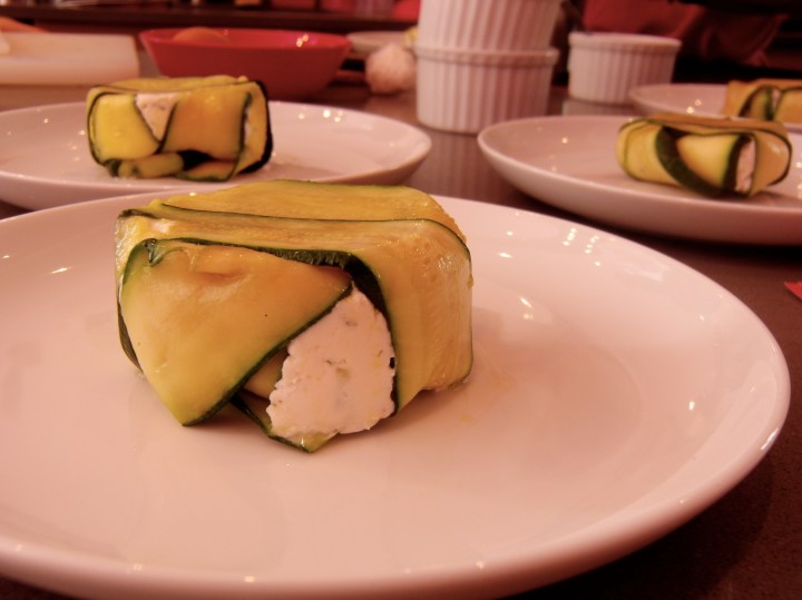 Noémie is, oh, how do you say, a perfectionist. Like all classically trained French chefs, and this dashing femme was trained at Lenotre, mind you, she makes each dish a personal work of art. Cooking lessons in Noémie’s sleek professional kitchen on Rue Nollet are ten verrines of fun; filled to the brim with laughter, cheer, and infectious passion for French cuisine. No wonder Les Secrets Gourmands de Noémie is featured in December’s French Marie Claire as a cutting edge extra-curricular activity. Menu du jour? Fromage de chèvre et courgettes charlottes. Bon appetit!