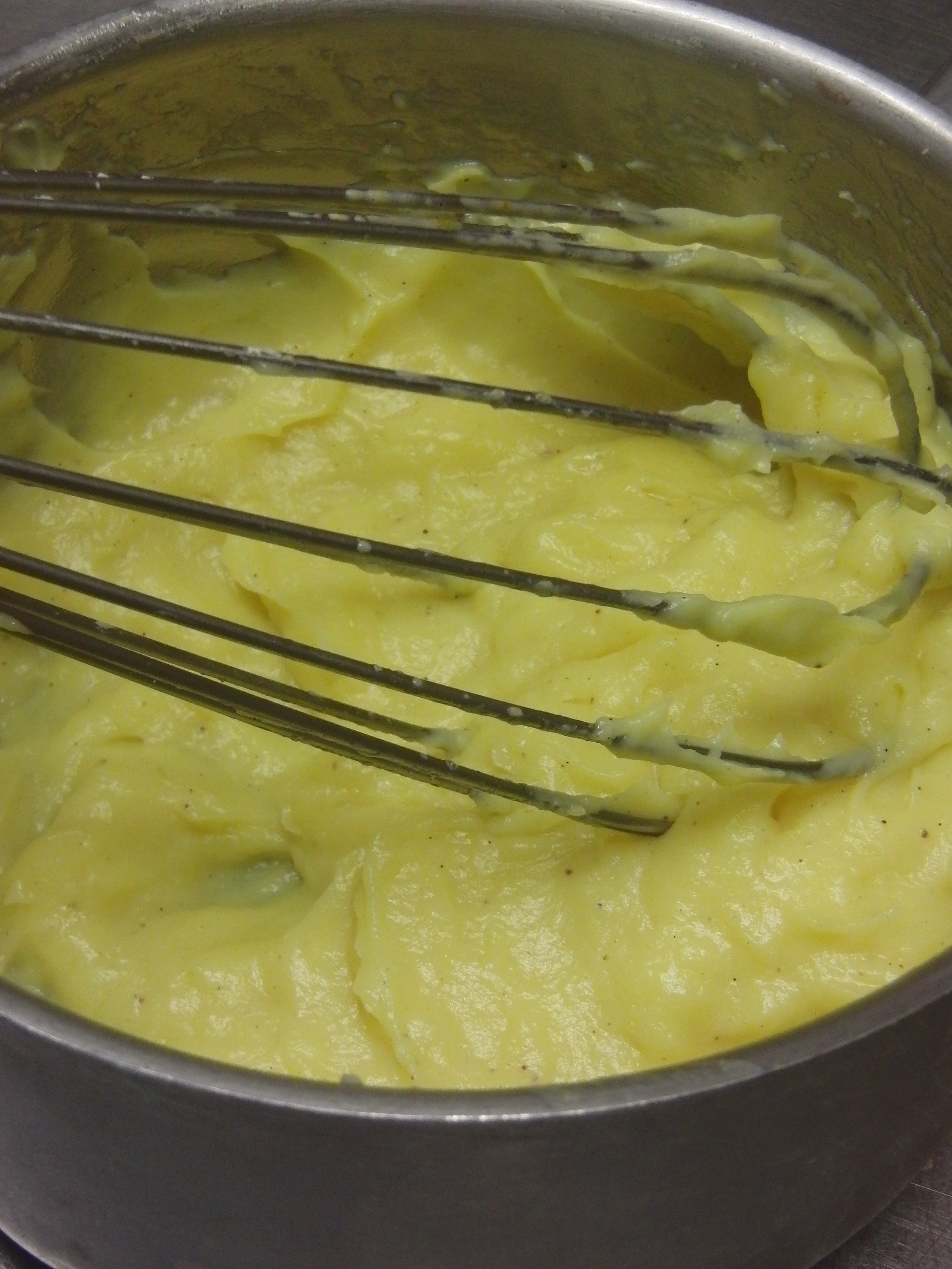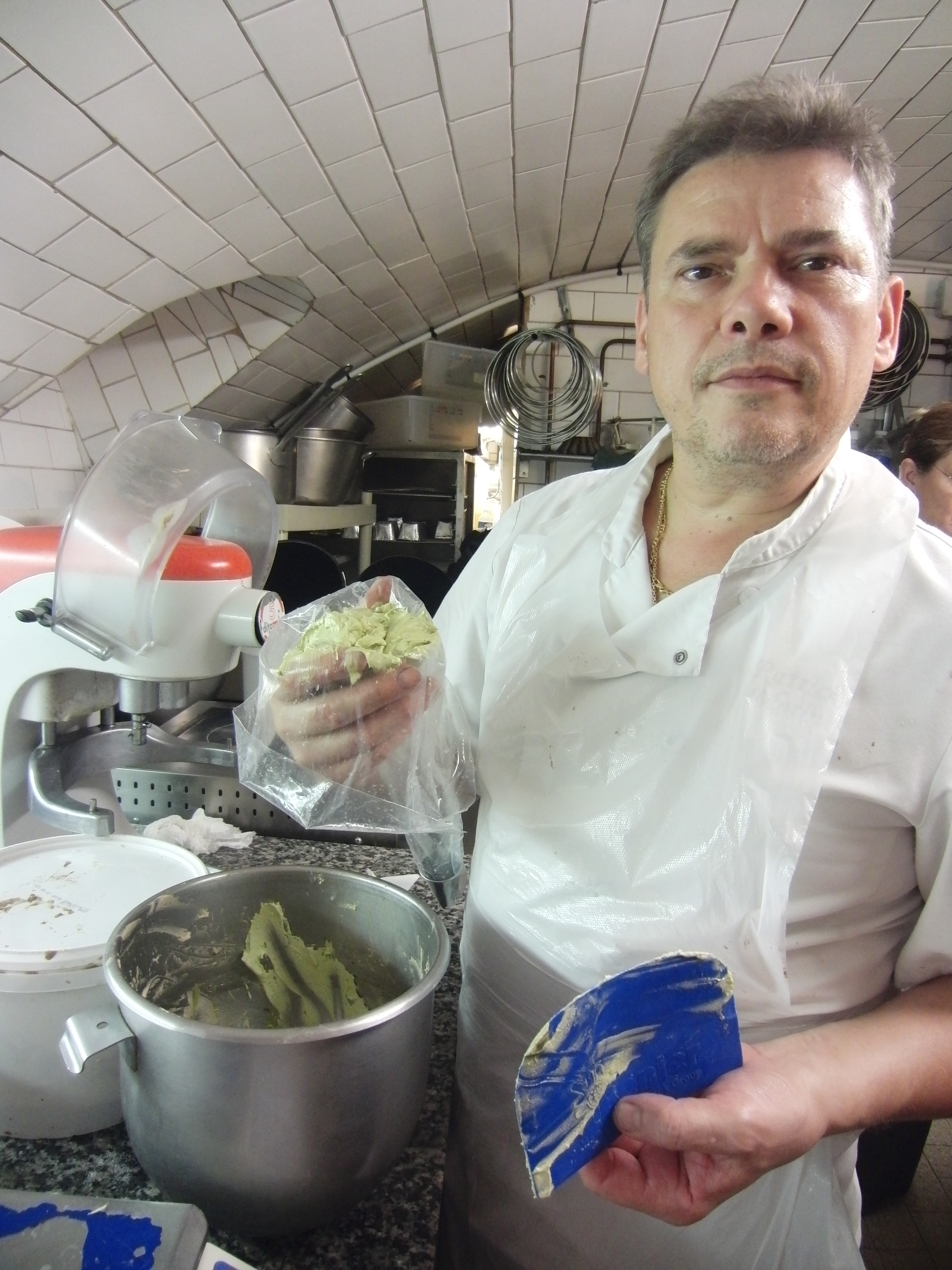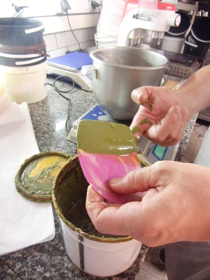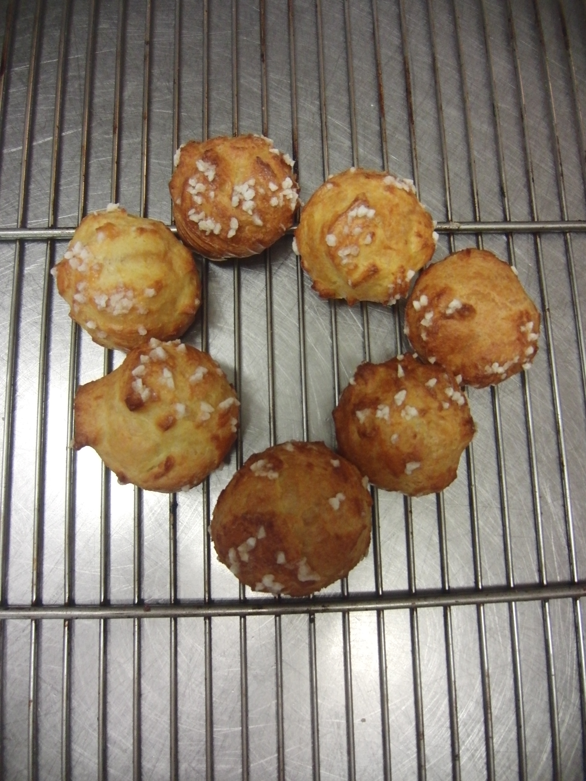 We made these little choux pastries during a French pastry class designed by bon vivant Corinne Preteur. The trick to their perfectly adorable shape is in the piping, as is the artful cream filling. If you prefer to leave them unfilled, dust them with sugar crystals or dip them in caramel and have a cafe while they dry and harden. The recipes for choux pastry dough and pastry cream can be found on a recent post for eclairs and Paris Brest, also made in Les Grenier a Pain’s delightful kitchen beneath their neighborhood boulangerie, as famous for their fruit tarts as they are for their spiced breads and traditional loaves. Fill the little choux with the flavored cream of your choice. My personal preference is pistachio and/or praline, but I never met a pastry cream I didn’t fancy.