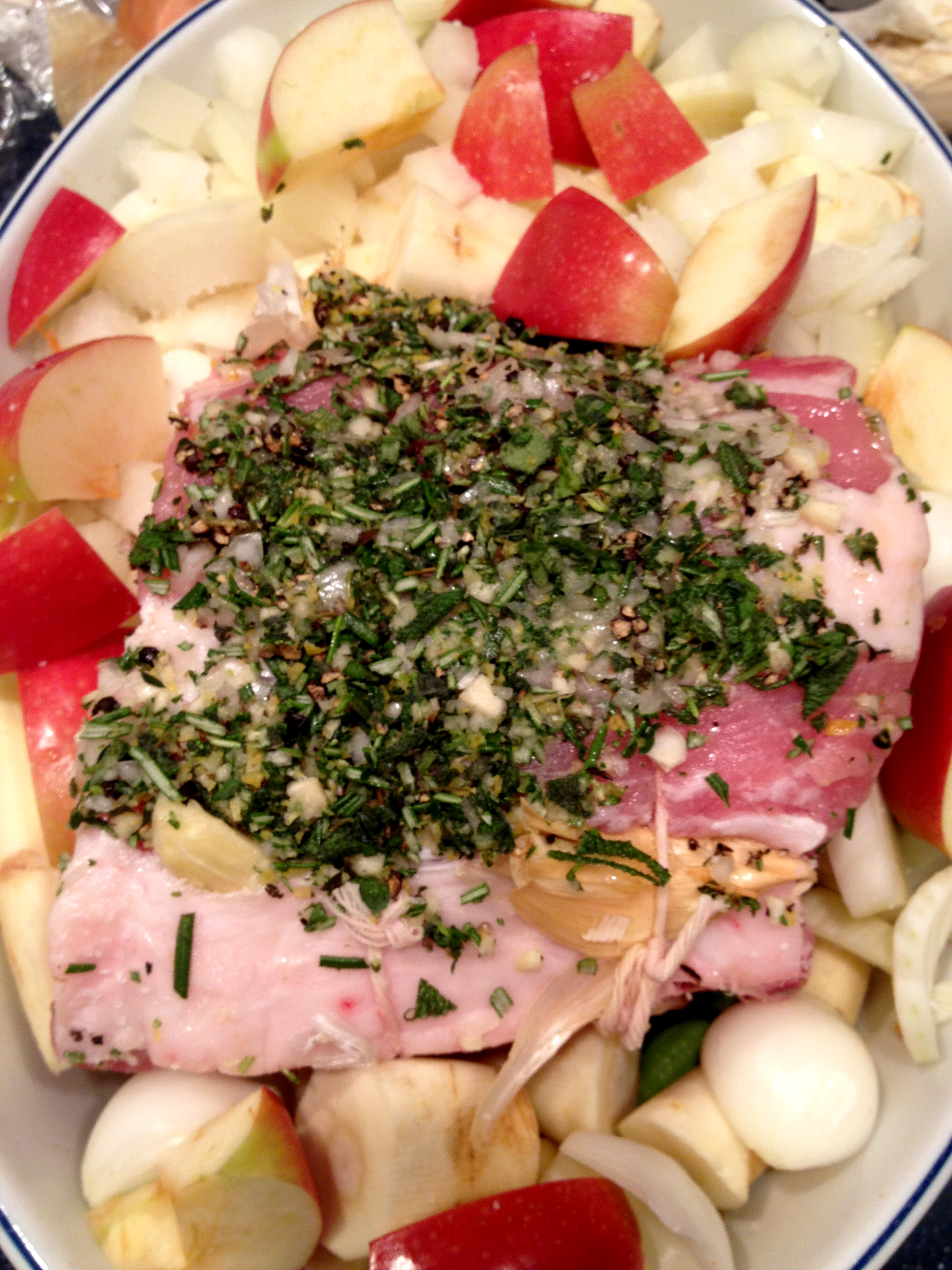 Chopping: that’s all there is to it. Herbs give pork heightened flavor in this one-pot dish, filled to the brim with root vegetables and fruit.