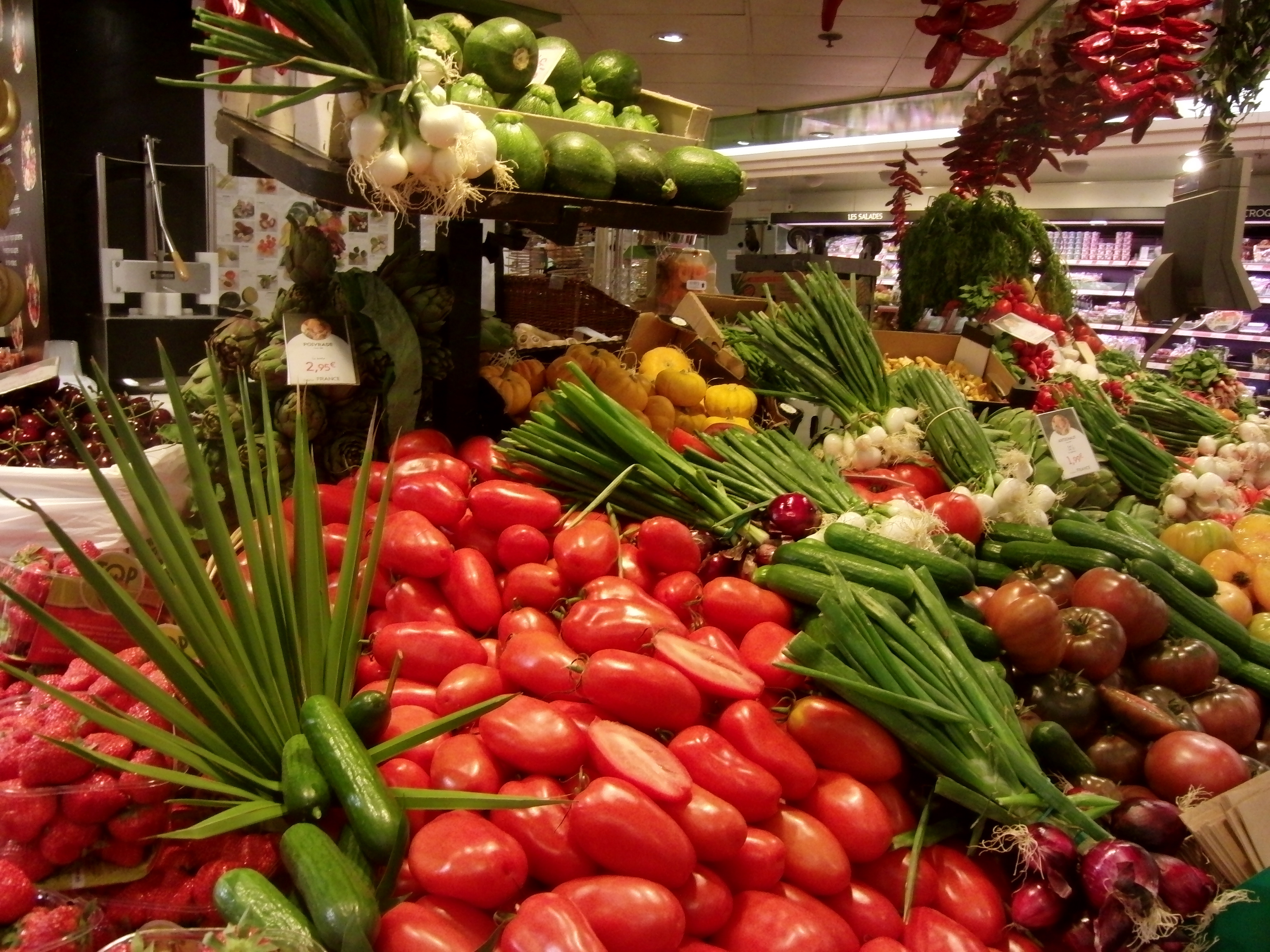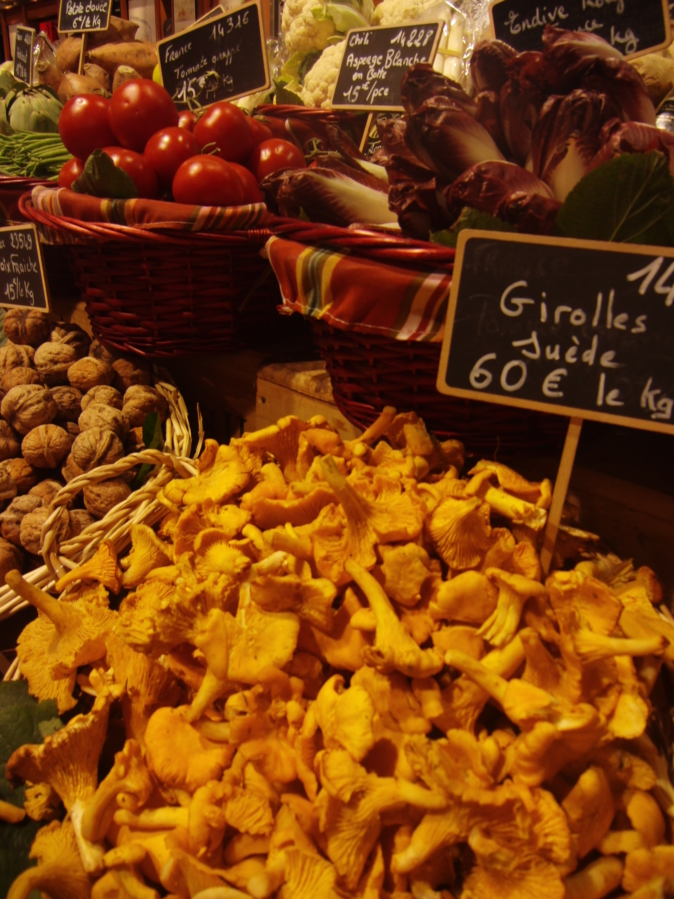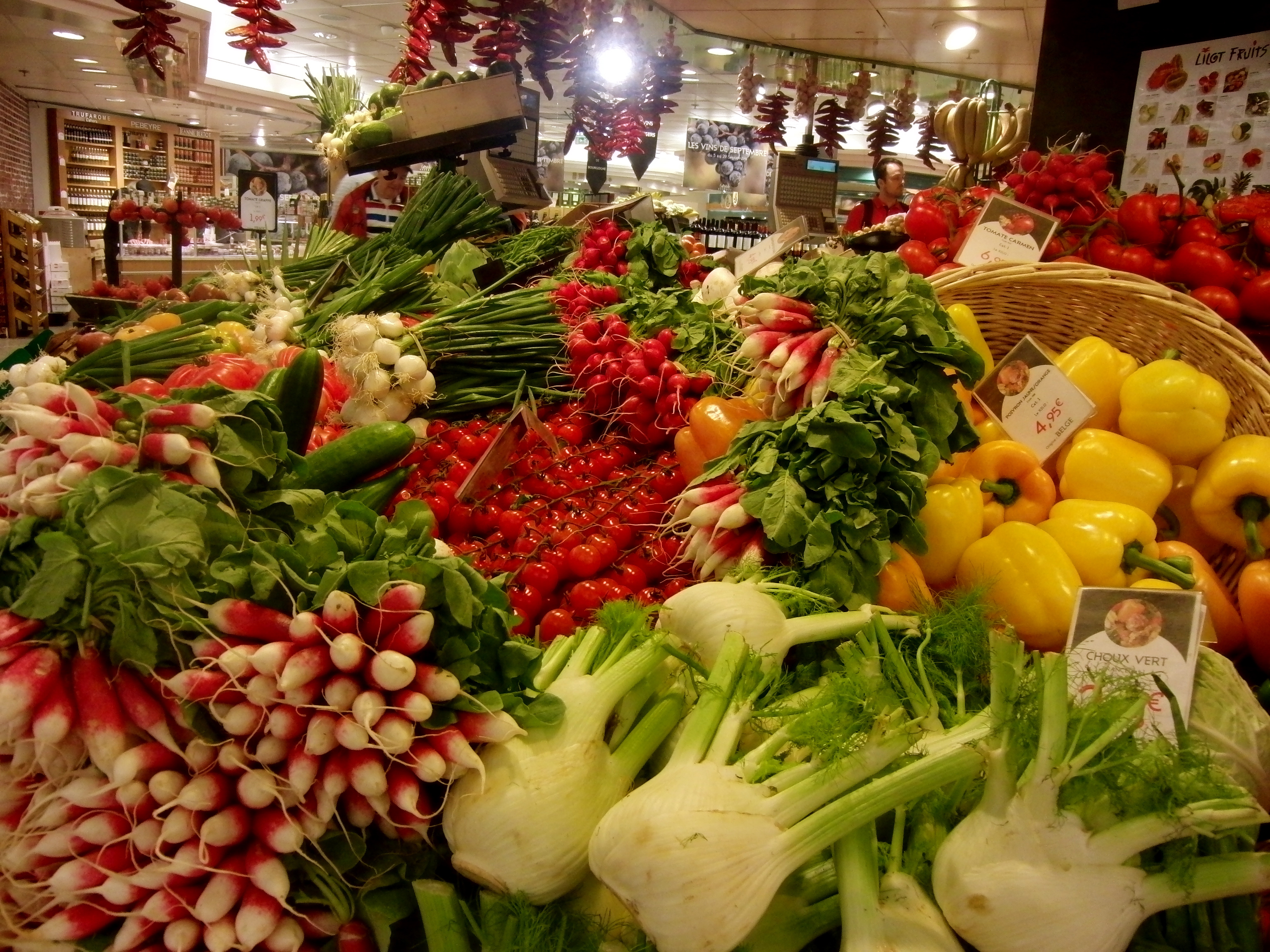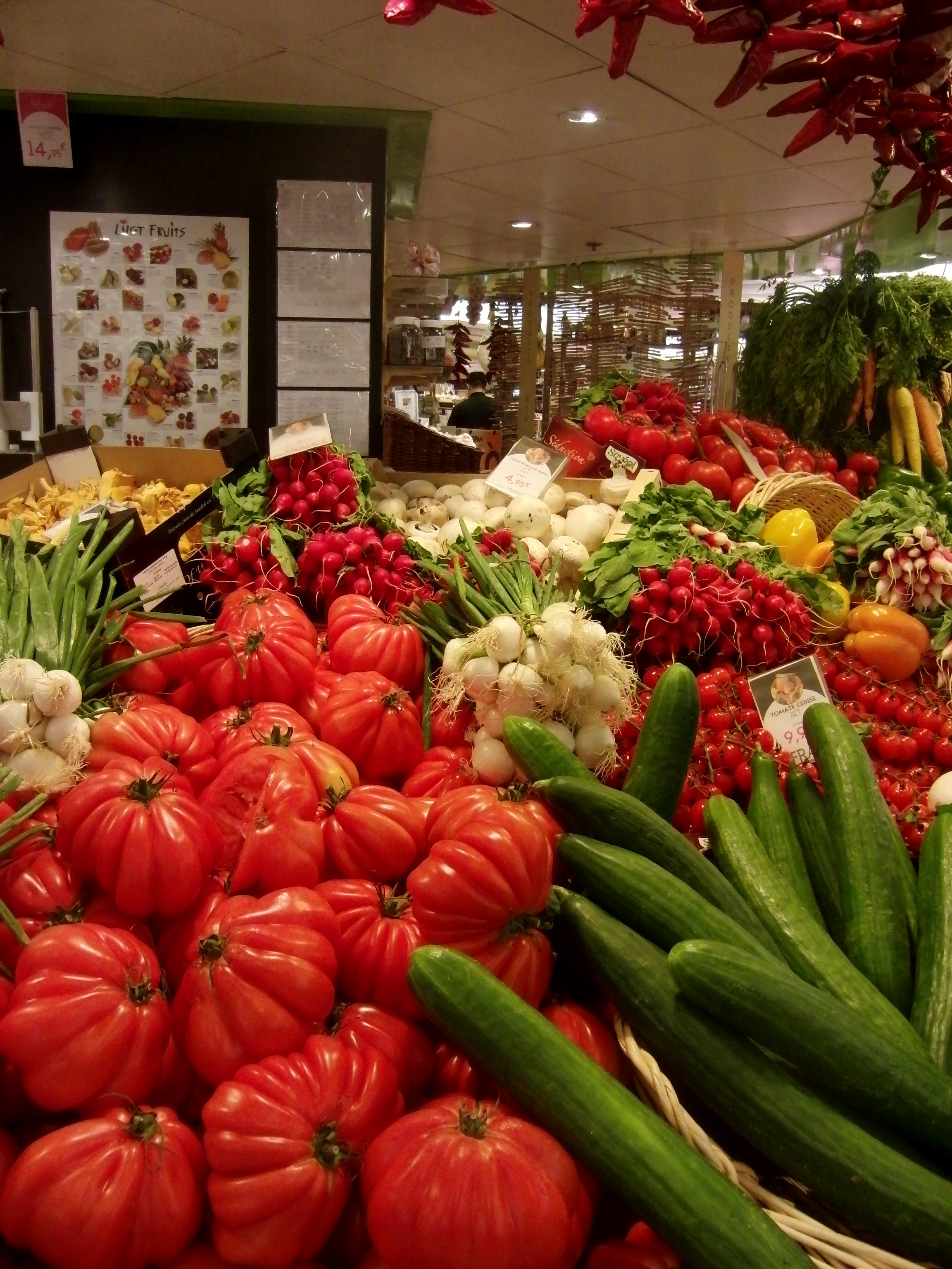 Shopper beware: I learned the hard way that grazers are not allowed to touch the produce. There is no such thing as searching for your own ripe tomato at Galeries Lafayette: the grocers will pick them for you. There are also no pictures or cameras allowed, so these few dismal produce snapshots will have to suffice.