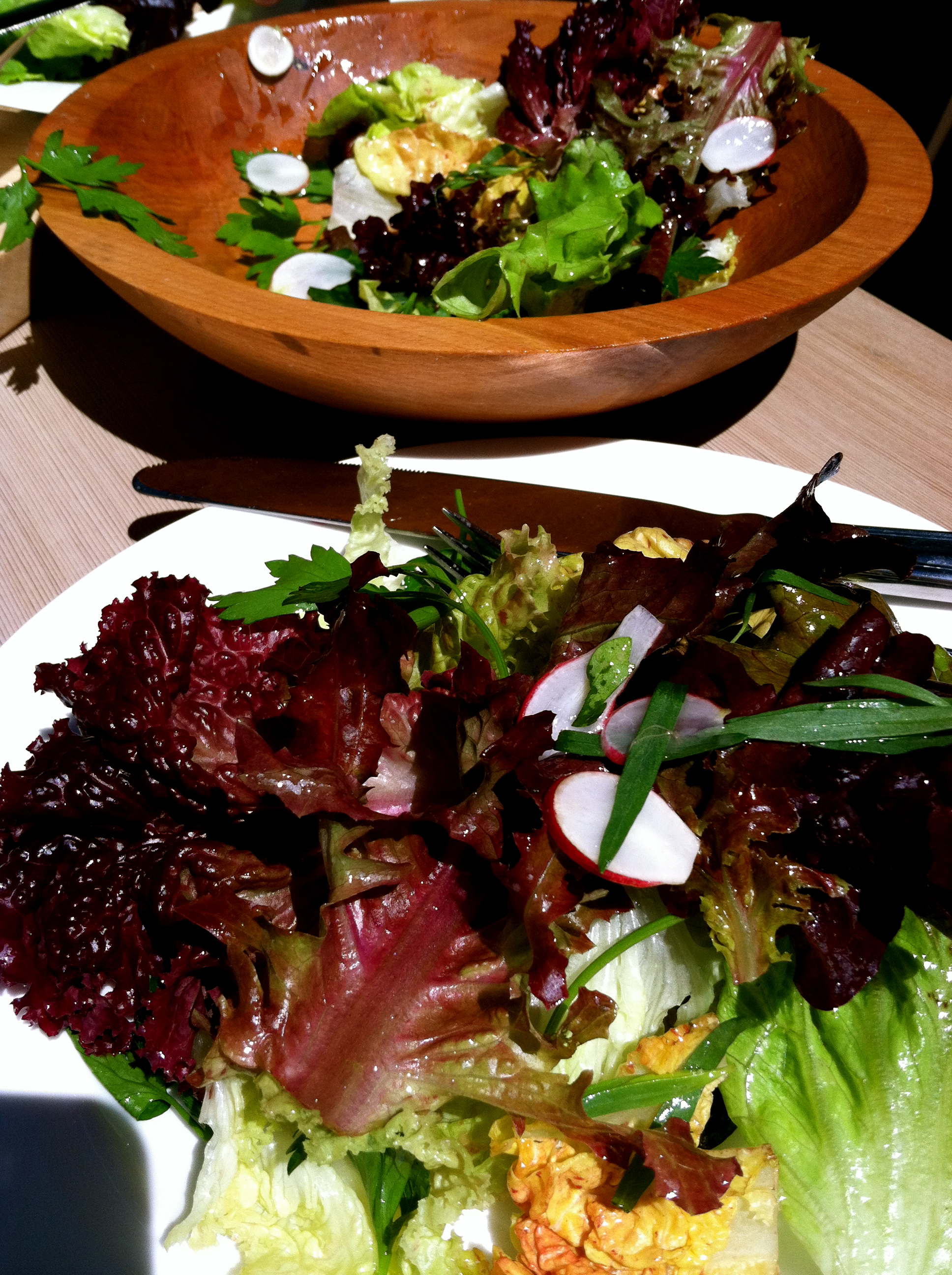 Their small menu changes daily based on what is available at local farms, thus it is guaranteed to be fresh and thoughtfully crafted. Shoppers, grazers, and diners alike can stand next to the chefs as they prep ingredients and shovel handmade pizzas into the oven. Once seated in a shady spot on the side patio, I opted for the salmon tartare salad, a perfectly proportioned, perfectly pink helping of the area’s freshest salmon. The large tossed salad is a favorite with its just-picked mixed greens and local, seasonal vegetables, like the crisp radishes seen in the photo below.