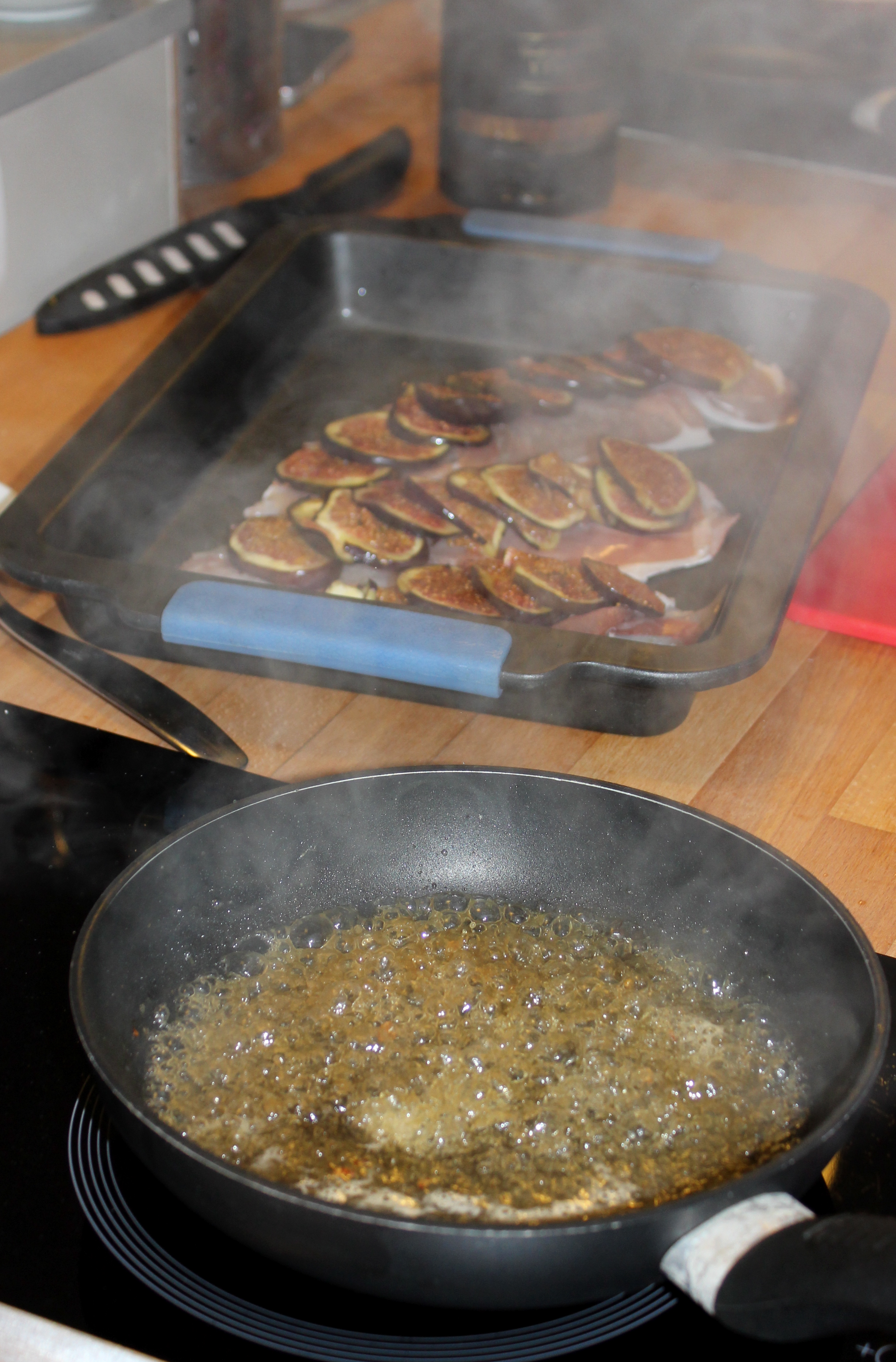 In the meantime, prepare the fish. Grate the scales and fillet them. Slice the figs and saute in a little bit of butter, or agave, or olive oil, for 3 minutes.
