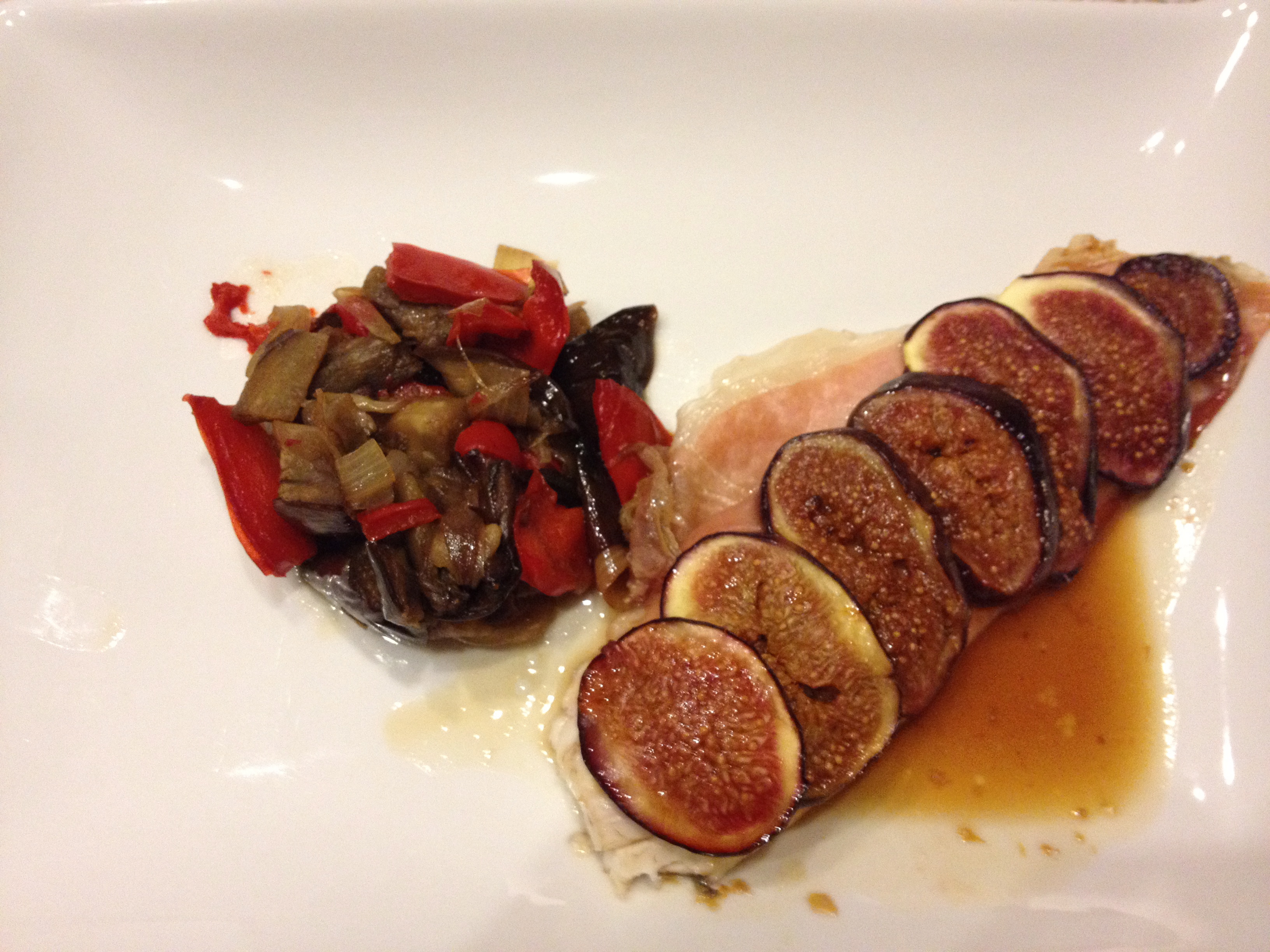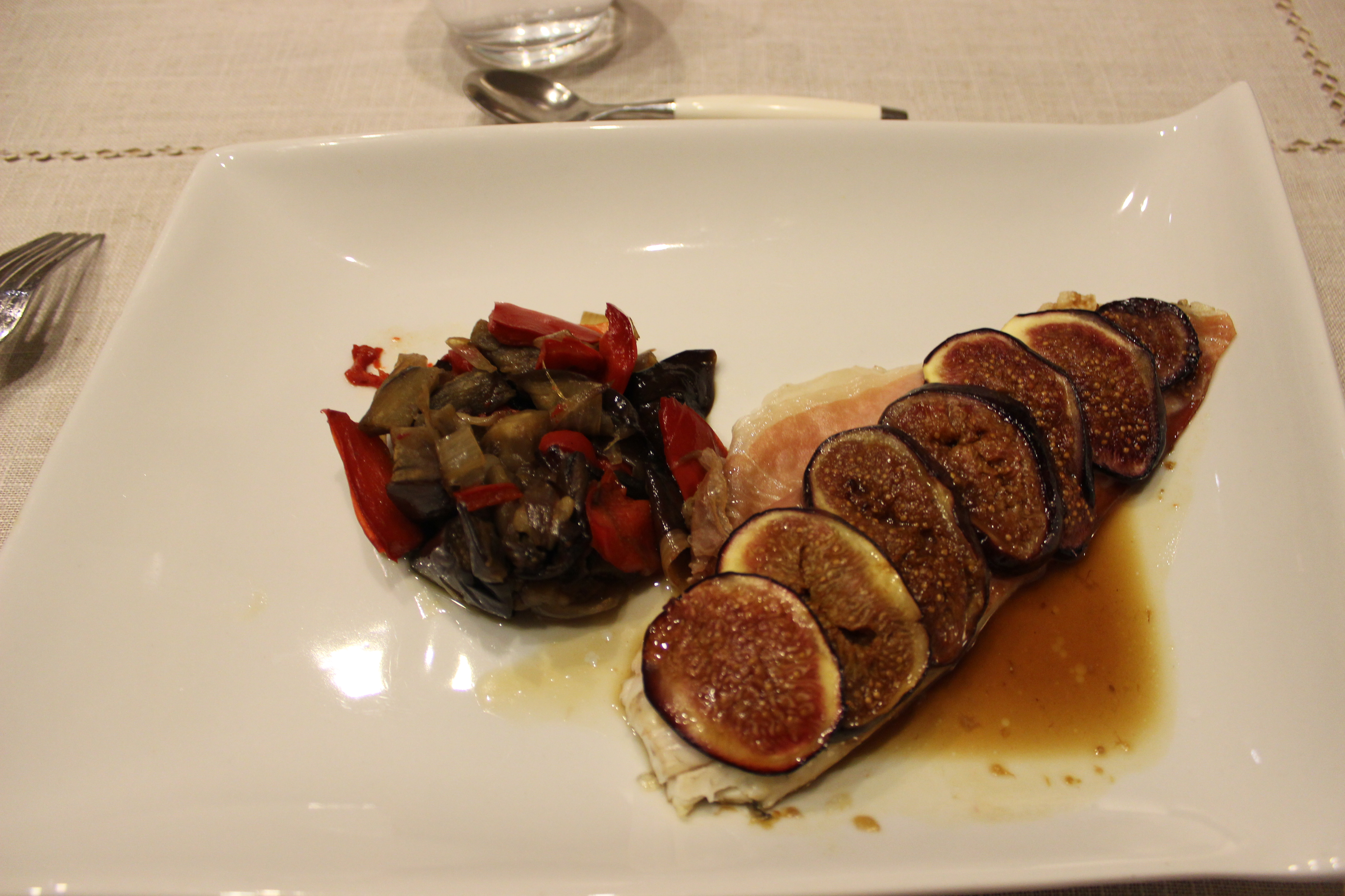 While the fish cooks, deglaze the pan in which you cook the figs with white wine over low heat and let cook for just a few minutes so that you have a warm sauce to serve with the fish.