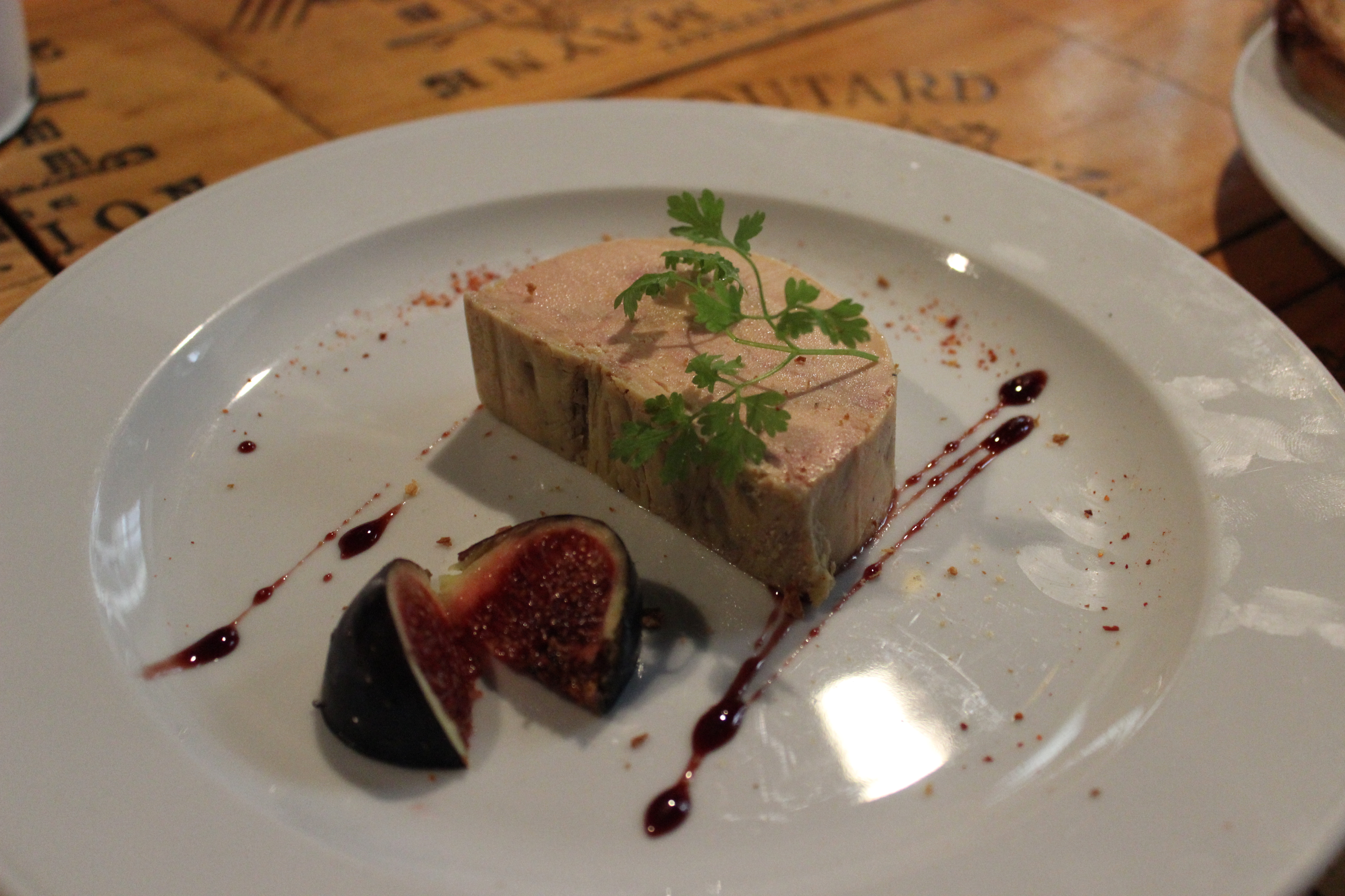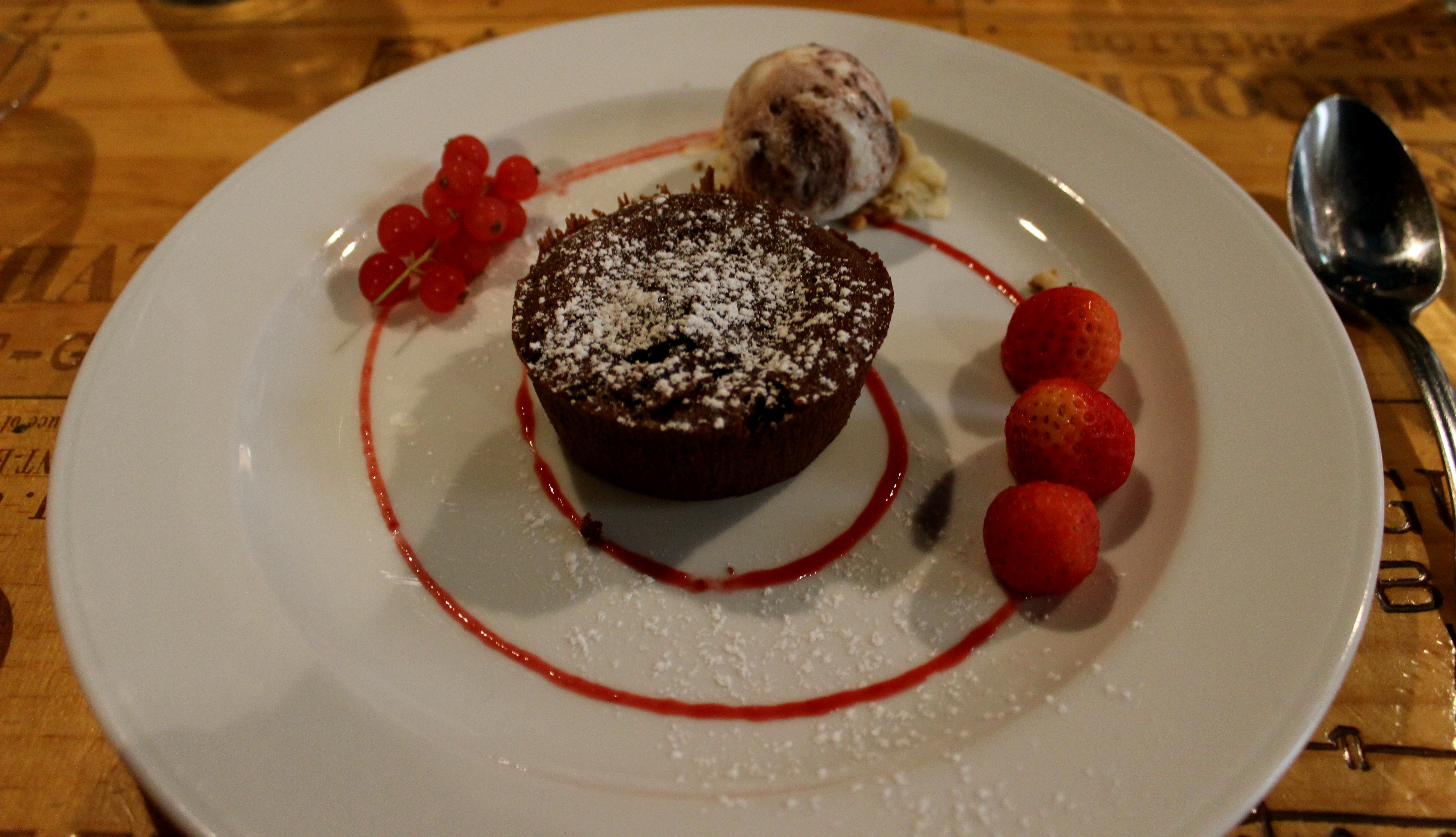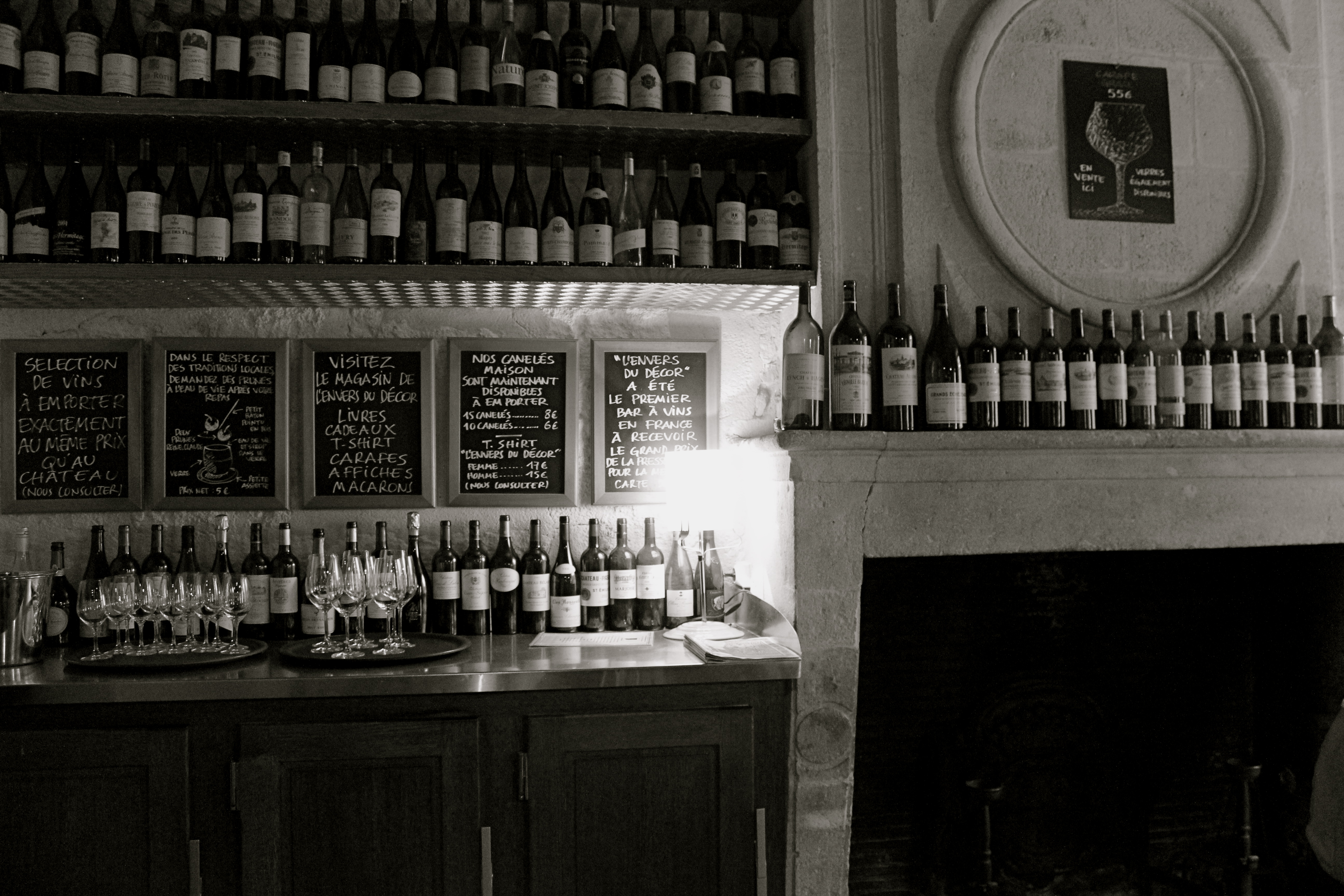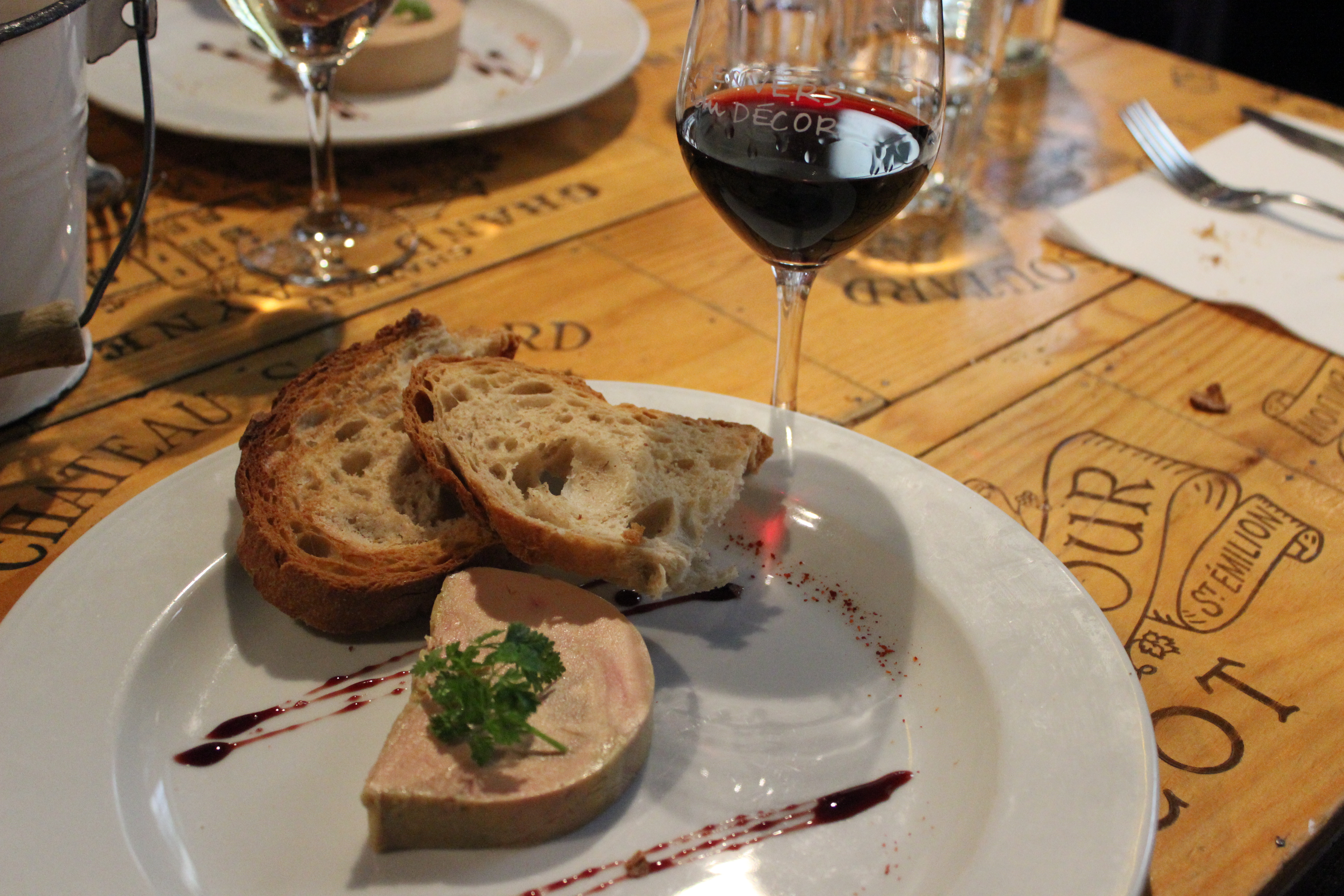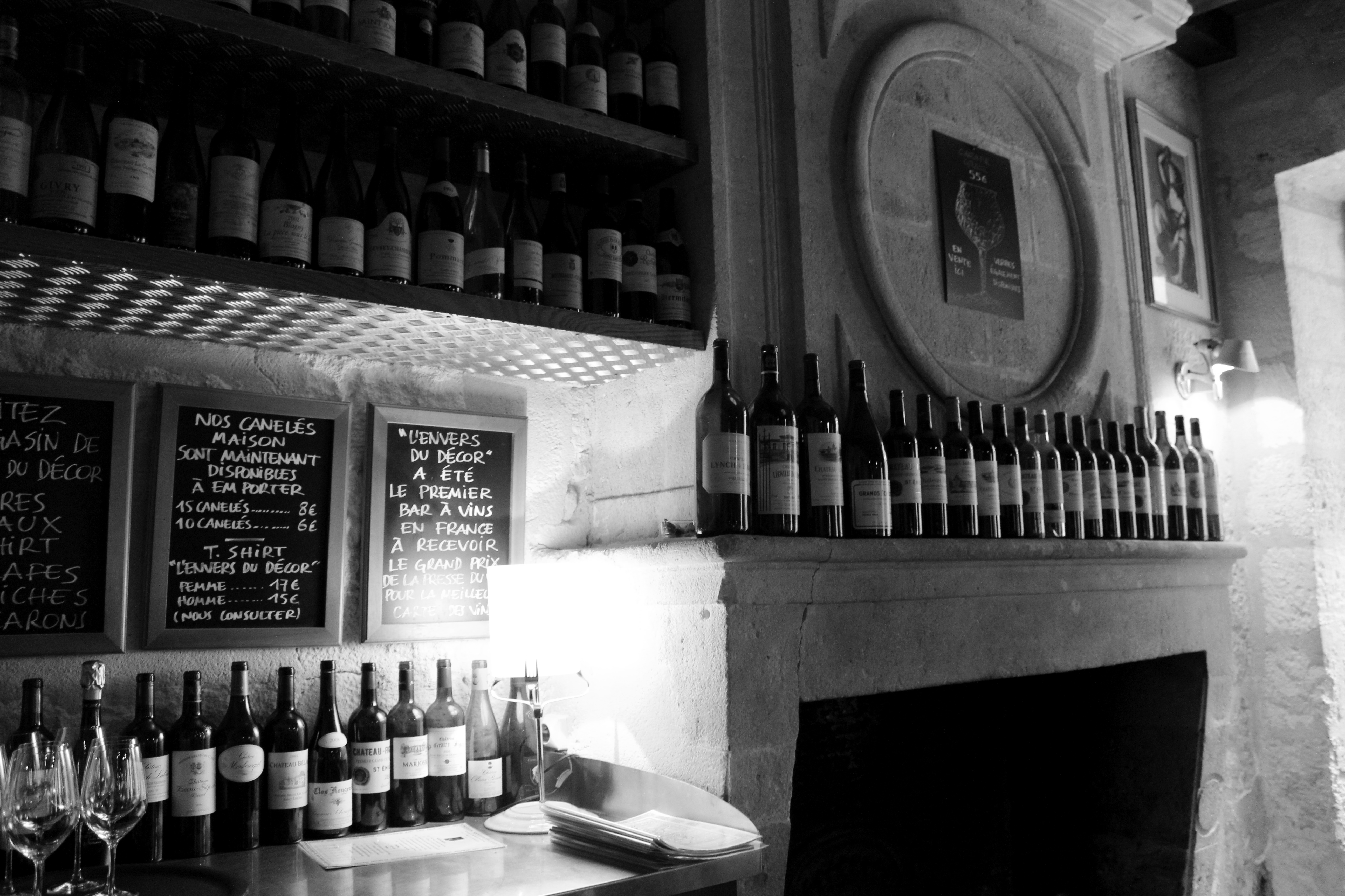 On to déjeuner. A quite excellent meal at L’Envers du Decor, an unassuming, rather cozy and jovial restaurant which I highly recommend to those who are looking for a relaxed atmosphere in town. One might be put off by the rather loud and boisterous main room where the bar is situated, but venture to the second room down a quiet hallway, past the ‘pass’ where the delicately prepared dishes come through, and one finds the locals and those in the know. I adored the quirky decor; the tables and walls are made of reconstructed, glazed wine boxes, the floor a blue and red tile, and an oversized fireplace heralds the head of the room, surrounded by wine bottles from the area. It is rustic yet warm, and the menu is a welcome mix of both light and classic Bordeaux cuisine. My lobster salad was simple and perfectly proportioned. The bread divine as per usual, and the chocolate mousse cake with raspberry sauce a classic fin.