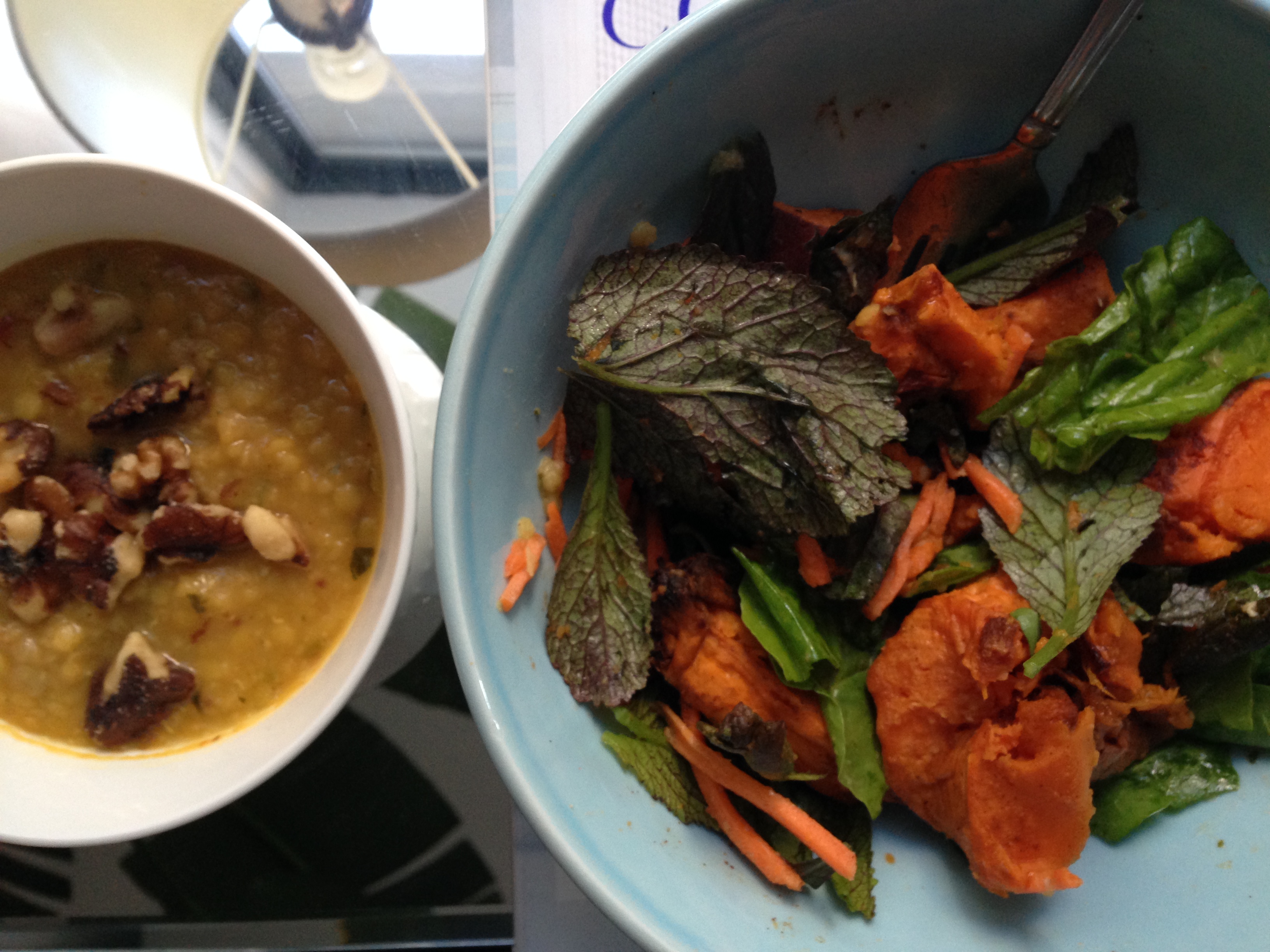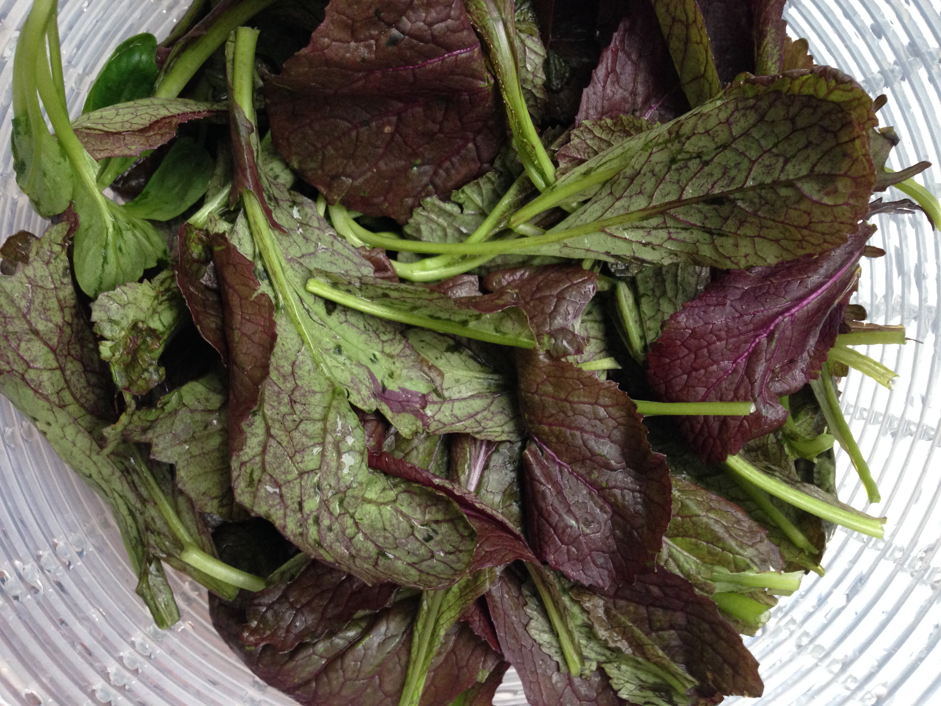 A make-do dinner on one of those winter-lingering April evenings, complete with aforementioned mustard greens.