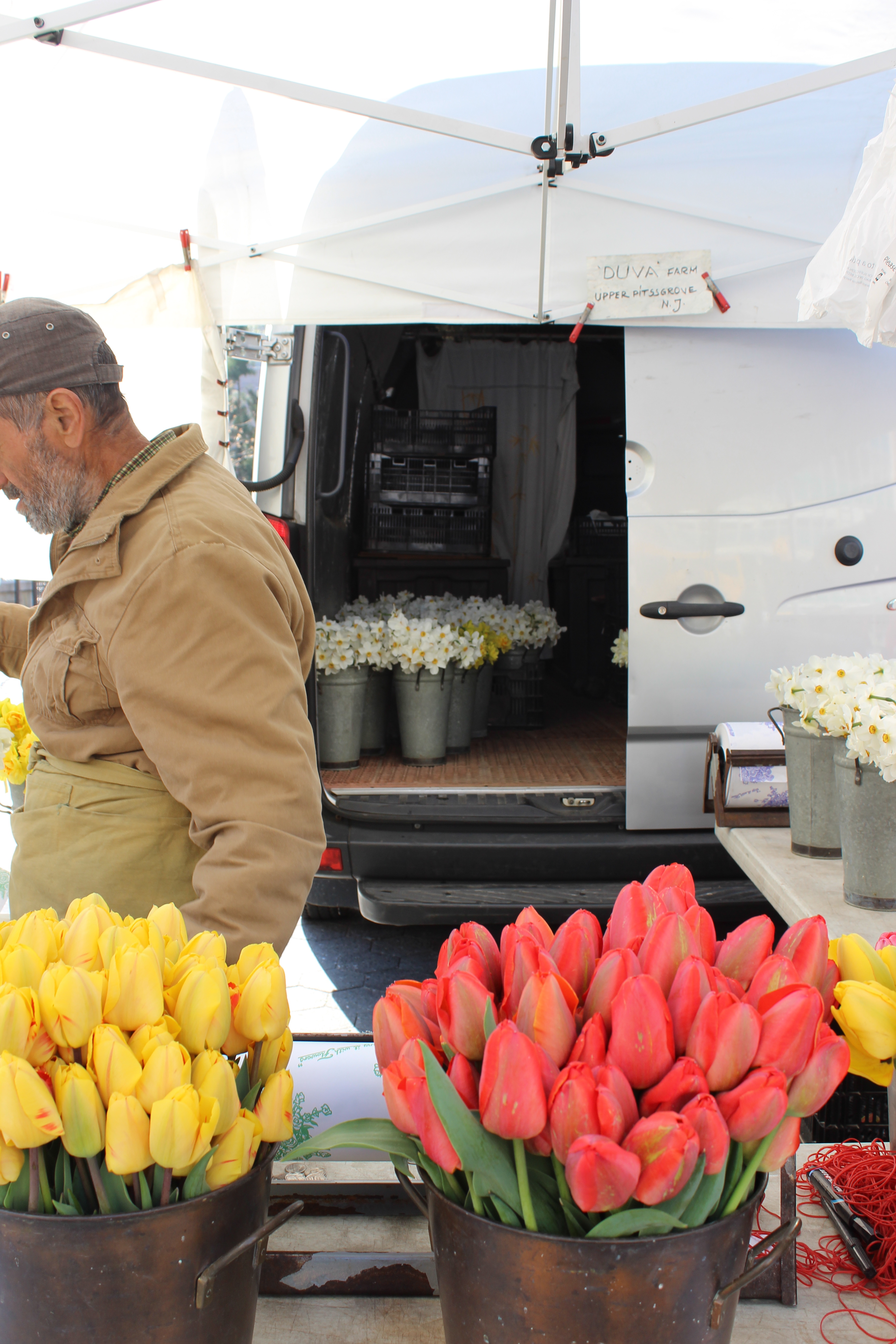 Farmer’s markets bring out the best in us. They are tranquilizers, equalizers… dare I say… democratic. There is something about wandering past tables of local produce, products, and flowers, chatting with the friendly farmers, and filling our canvas bags with misshapen turnips and bundles of green garlic and arugula, locally sourced honey, a bottle of fresh cow’s milk, and a tulip or two, that brings us all back down to earth. All walks of life are warmly welcomed at the farmer’s market. There is no class system, no one person at a greater advantage than another, and we practice patience that we never knew we had.