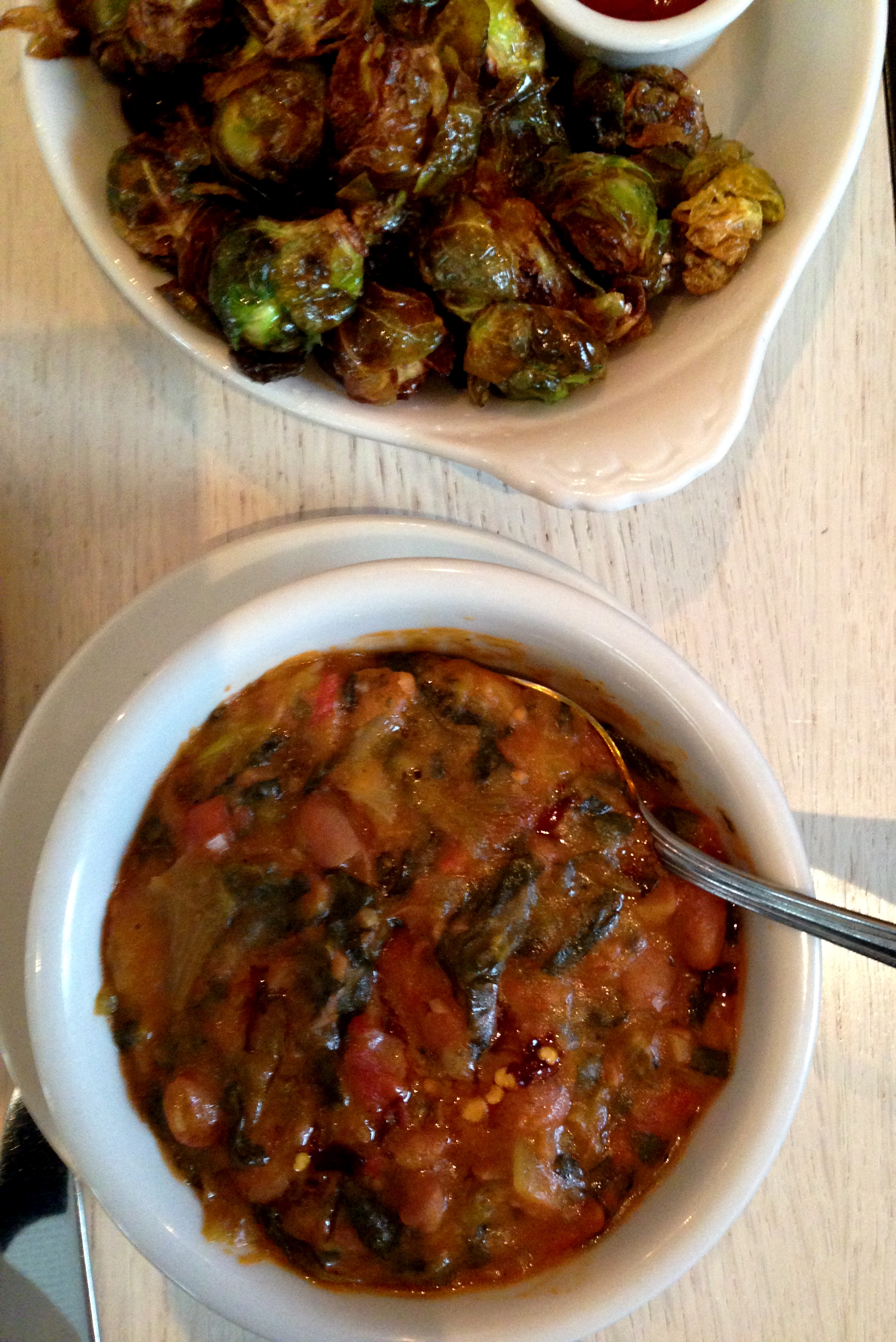 Also ordered on my first occasion: the side bowl of braised Borlotti beans with escarole and roasted chiles tasted like a bowl of Tuscany in SoHo. They were warm, textured, and balanced just so between thick and thin. This can also be brought home and served cold for lunch. The minty spring peas with artichokes and favas that I had back in April are another example of this; I could have finished the whole bowl in one sitting, but I savored a small amount to sprinkle on my salad the next day.