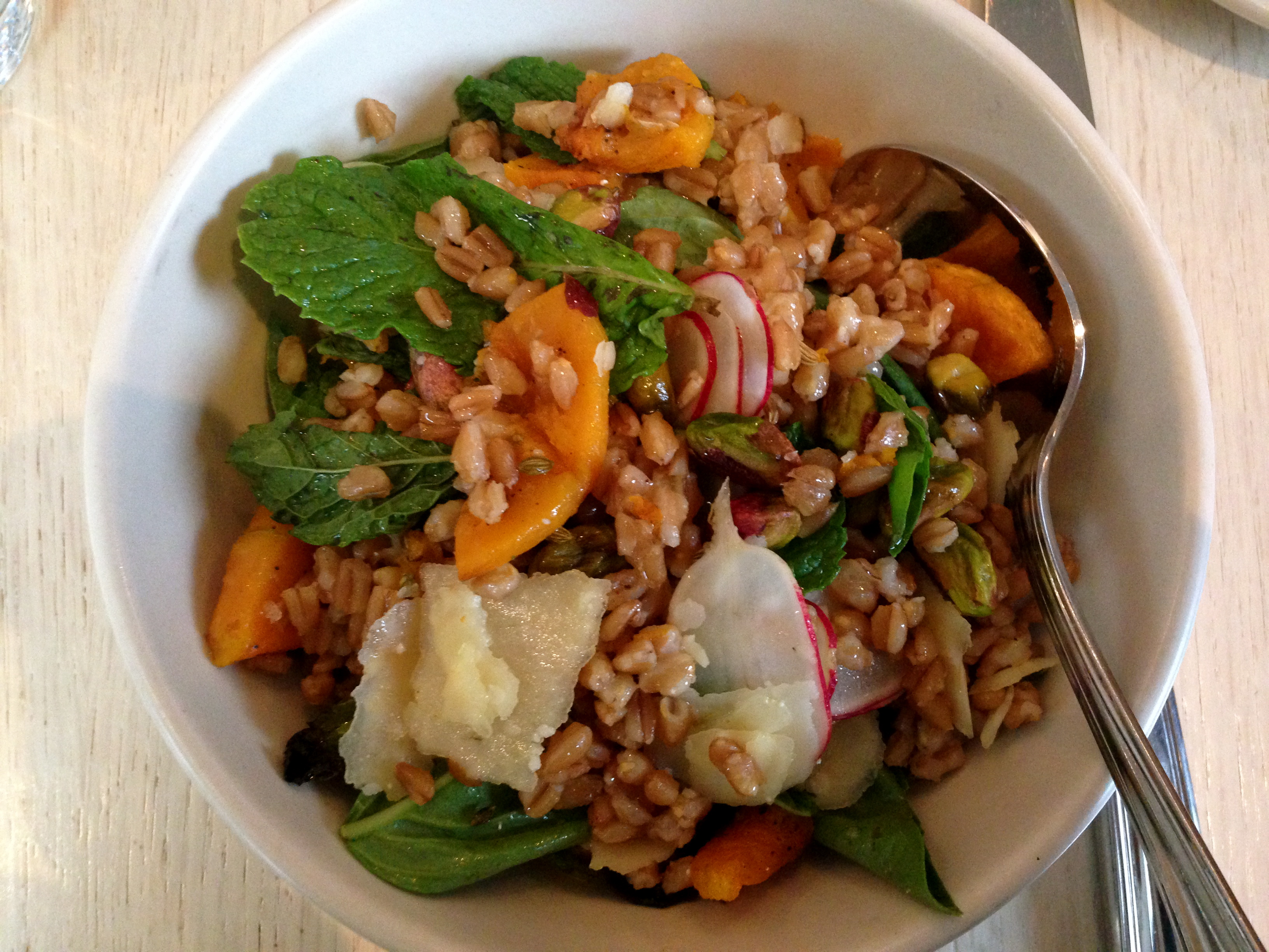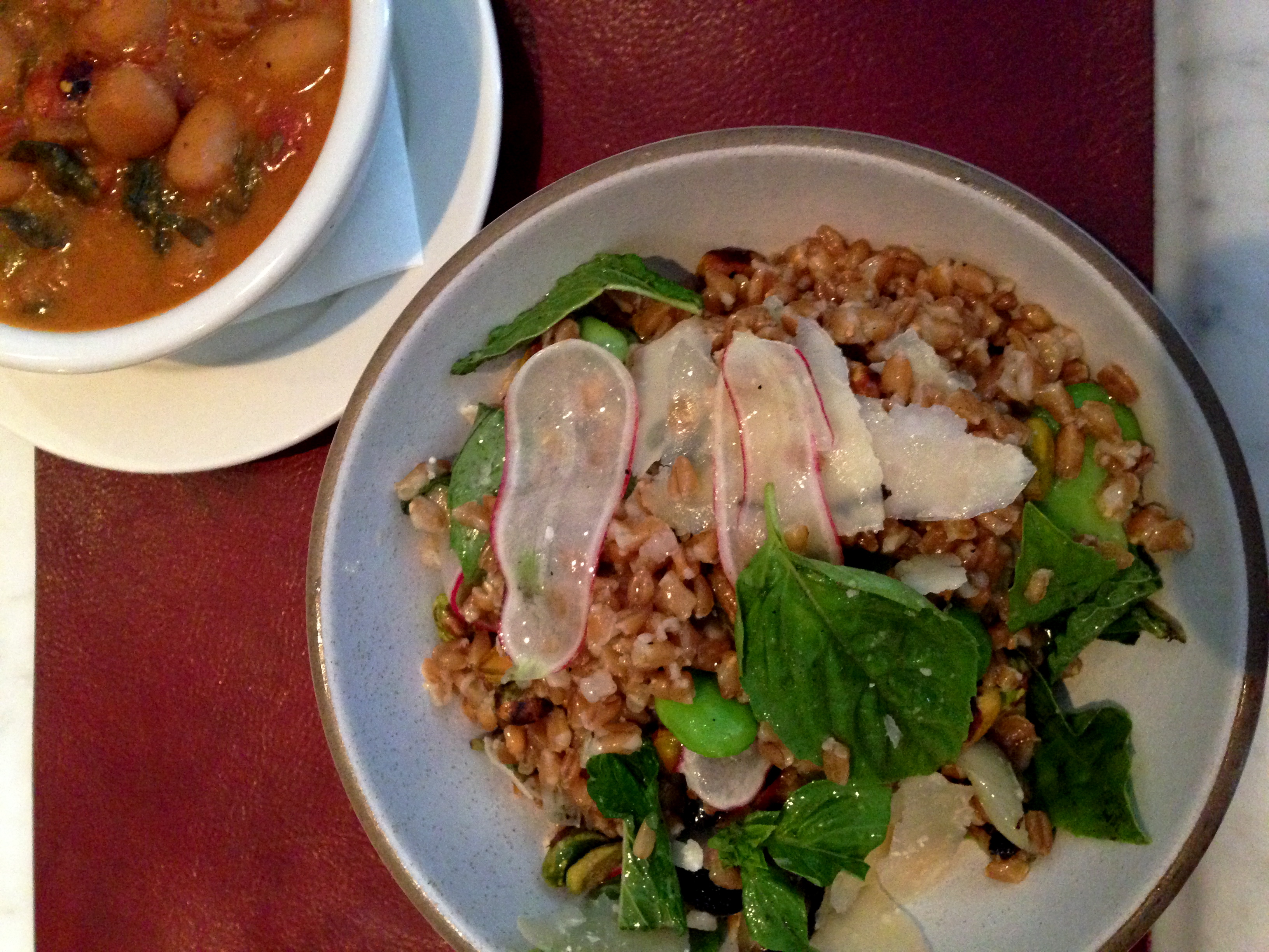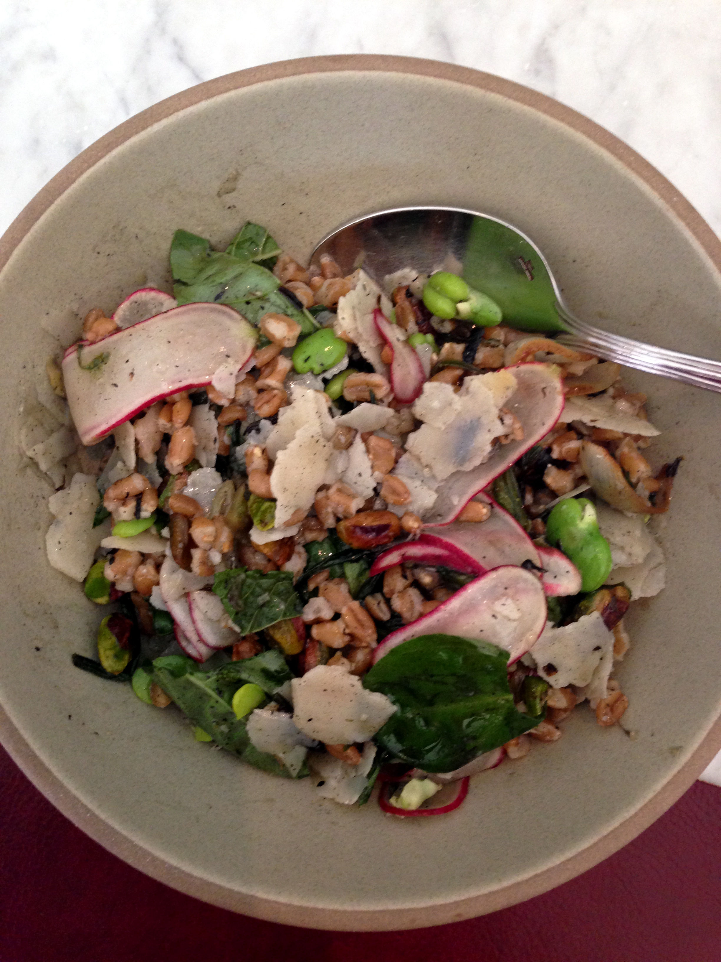 I often find myself jonesing for Hardy’s famous farro dish. Try as I might to be a versatile orderer at a favorite restaurant, I cannot seem to unglue myself from the vividly hued bowl. The first time I had the aforementioned farro was back in the first days of April, and it was a rather genius color and texture combination of vibrant mint, generous shards of parmigiano, toasted pistachios, thinly shaved radish, and moon-shaped pumpkin. Each flavor complimented one another like instruments in an orchestra; they played to one another’s benefit, so simple and sublime. I savored the last few spoonfuls (the serving is plentiful, especially considering that farro is wonderfully filling and a single serving is a lot smaller than you think). Hardy’s leftover farro stays for days in the fridge, and it is a superb addition to any tossed salad or really anything at all. It has since changed as the weather has grown warm; about two months ago it invited grilled ramps into the mix, giving it a sort of burnt tinge, and most recently included spring onions, favas, pistachios, mint, and shards of parmigiano. I will forever miss the pumpkin version and hope very much that it returns next year.