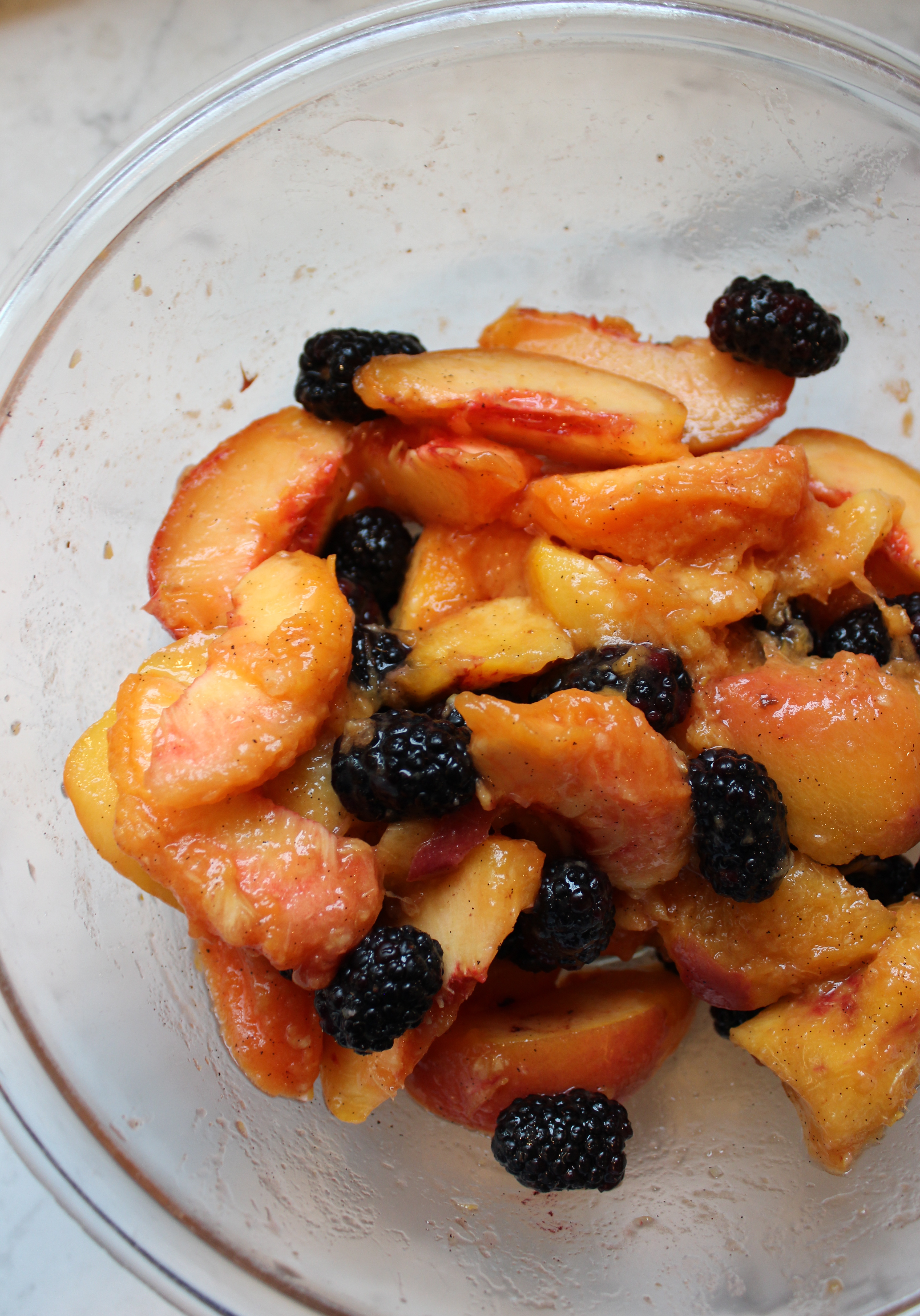 That being said, the organic blackberries are the best that they have been all year; ripe, squishy, and ever so sweet. While our Connecticut peaches are not yet ripe (I blame you: Polar Vortex), Georgia peaches sufficed. We scraped a vanilla bean from Madagascar into the filling, as well as a bit of lemon juice, cinnamon, and nutmeg shavings, and it was so scrumptious and delightfully gooey with no additional sugar that we saw it as a fit breakfast the next morning. Some might prefer 1/2 cup or so of light brown sugar in the filling, but I prefer not to add too much, as the fruit has an abundance of natural sugars.