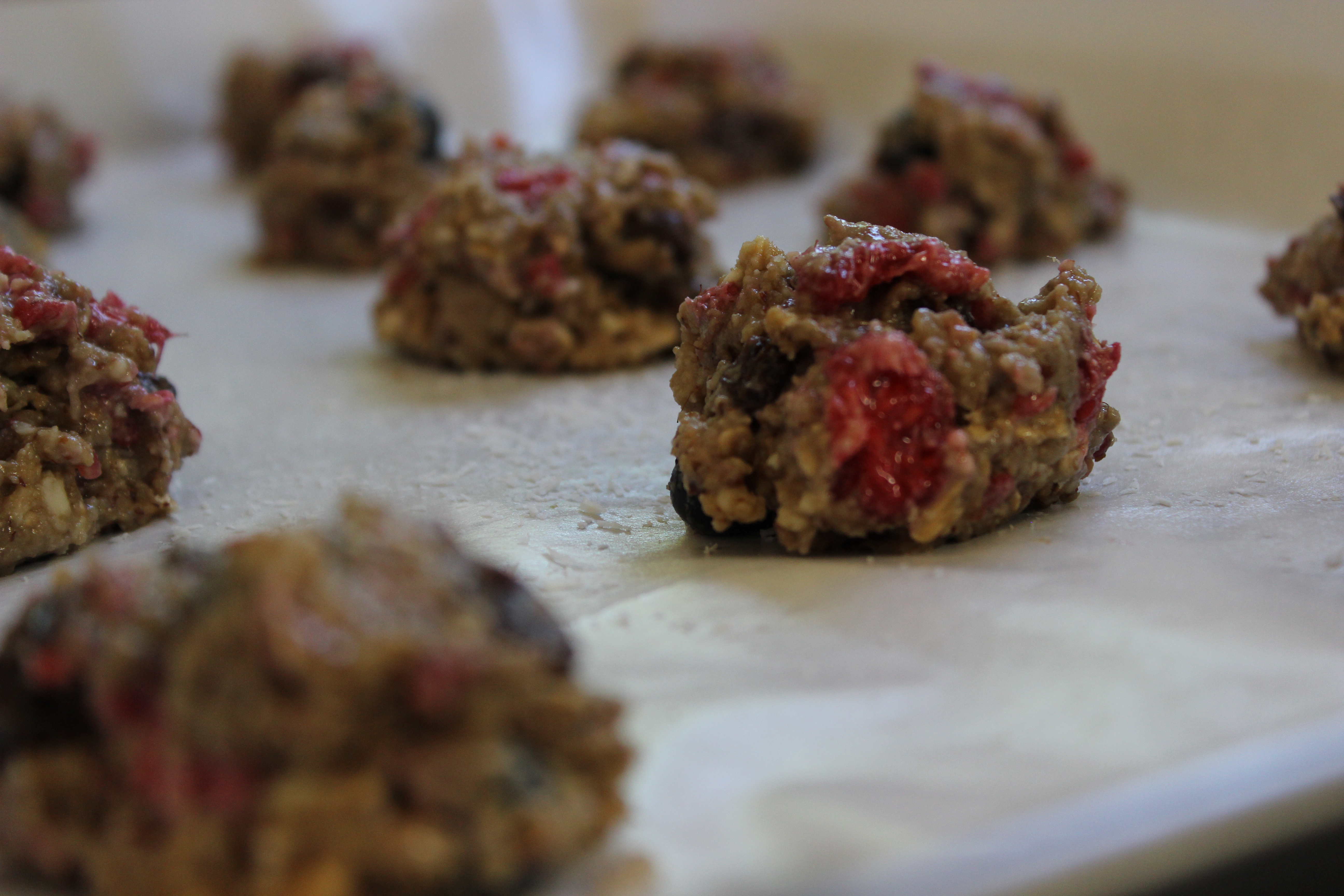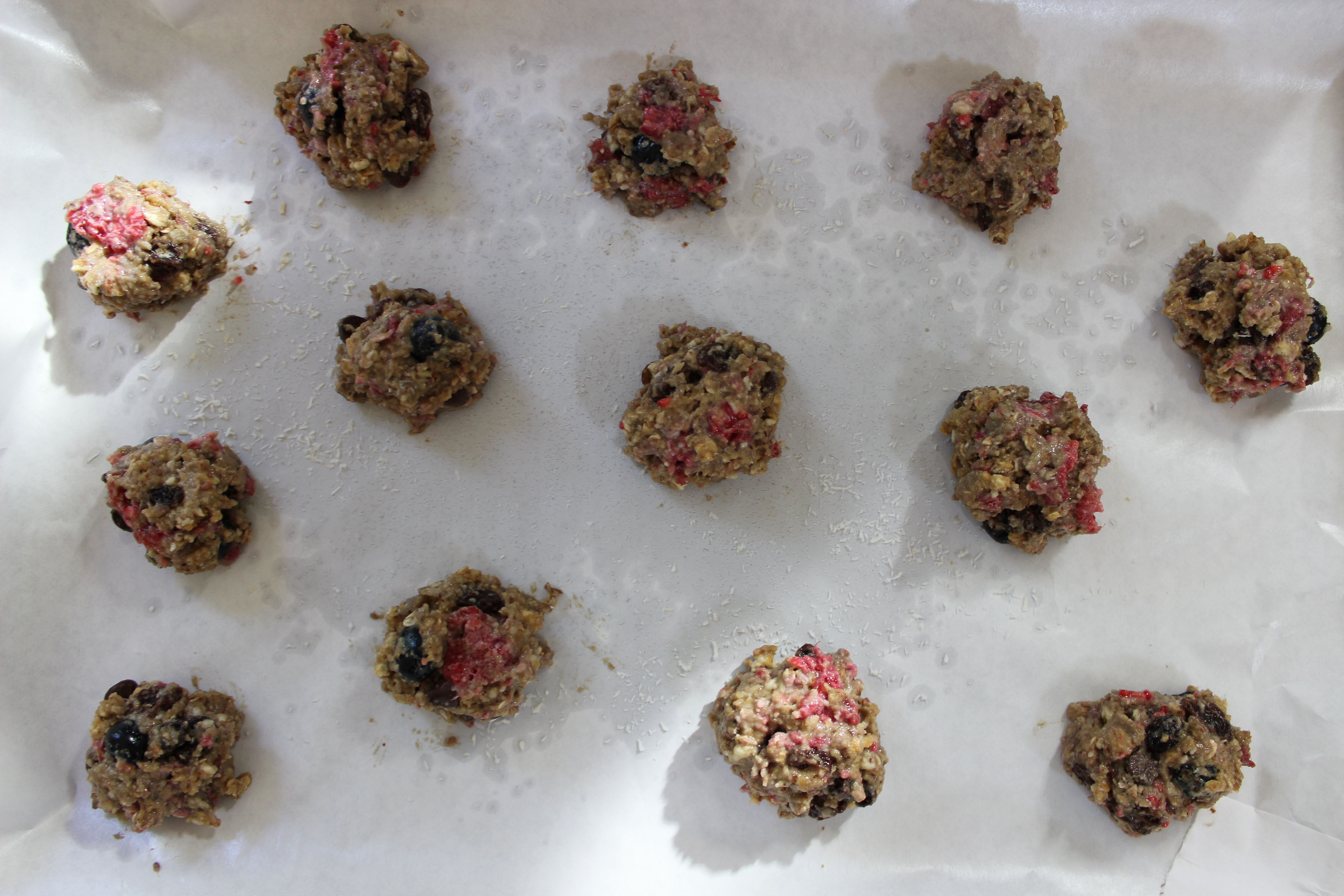 When you are ready to bake, pre-heat your oven to 375 degrees F and spoon out your preferred cookie size onto a parchment lined cookie sheet. I made mine about one and a half tablespoons each. I baked for about 12 minutes or until I could feel that the cookies were not so soupy anymore when I gently pressed down on one. I suggest checking on them after 10 minutes. You do not want to over bake them, as you risk having them taste more like chalk and less like cookies.