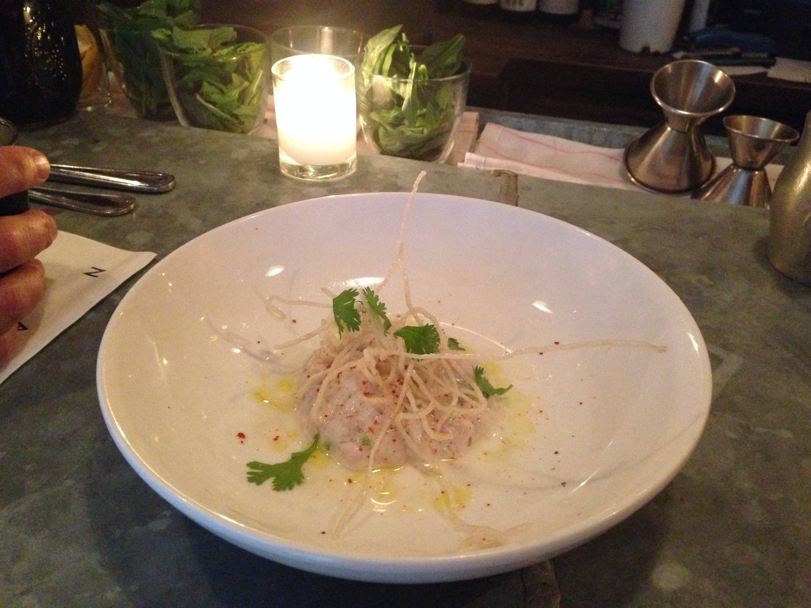 The menu at Navy is ever-changing (literally every day), but on this July evening, the crudo was Le Tigre.