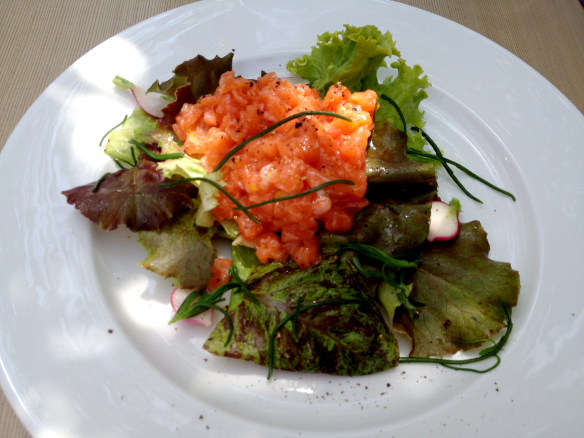 Salmon tartare on a bed of farm fresh lettuce