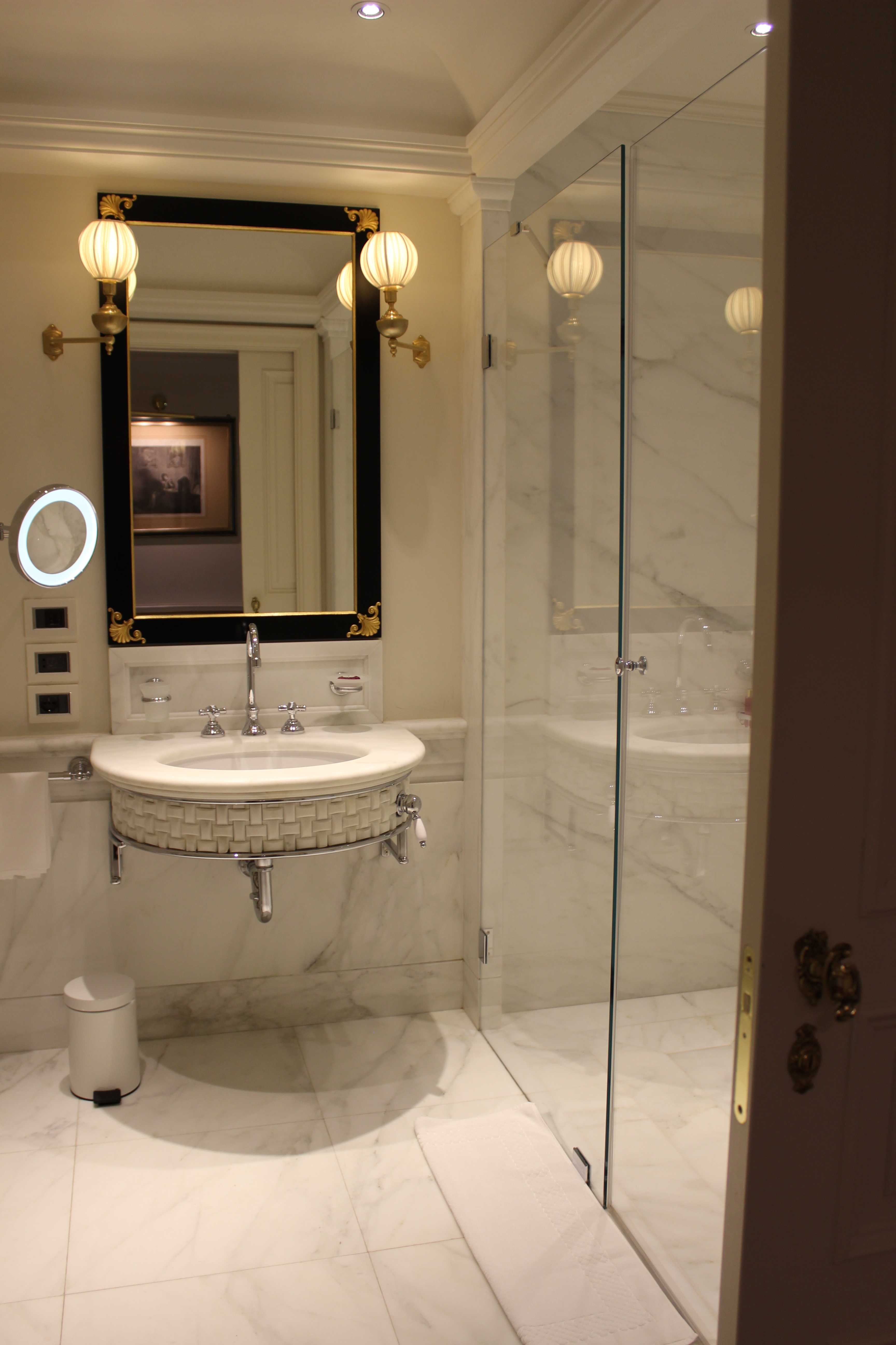 The rooms are comfortable yet certainly remind one of the Villa’s most celebrated time. They vary in size; ours was not large, but it was certainly beautiful. The shower was oversized, and the entrance hall allowed for two large closets. If I had to nitpick, I would question the lack of hooks and surfaces in the bathroom. There was not a designated place to hang my lush bathrobe, thoughtfully embroidered with a rose.