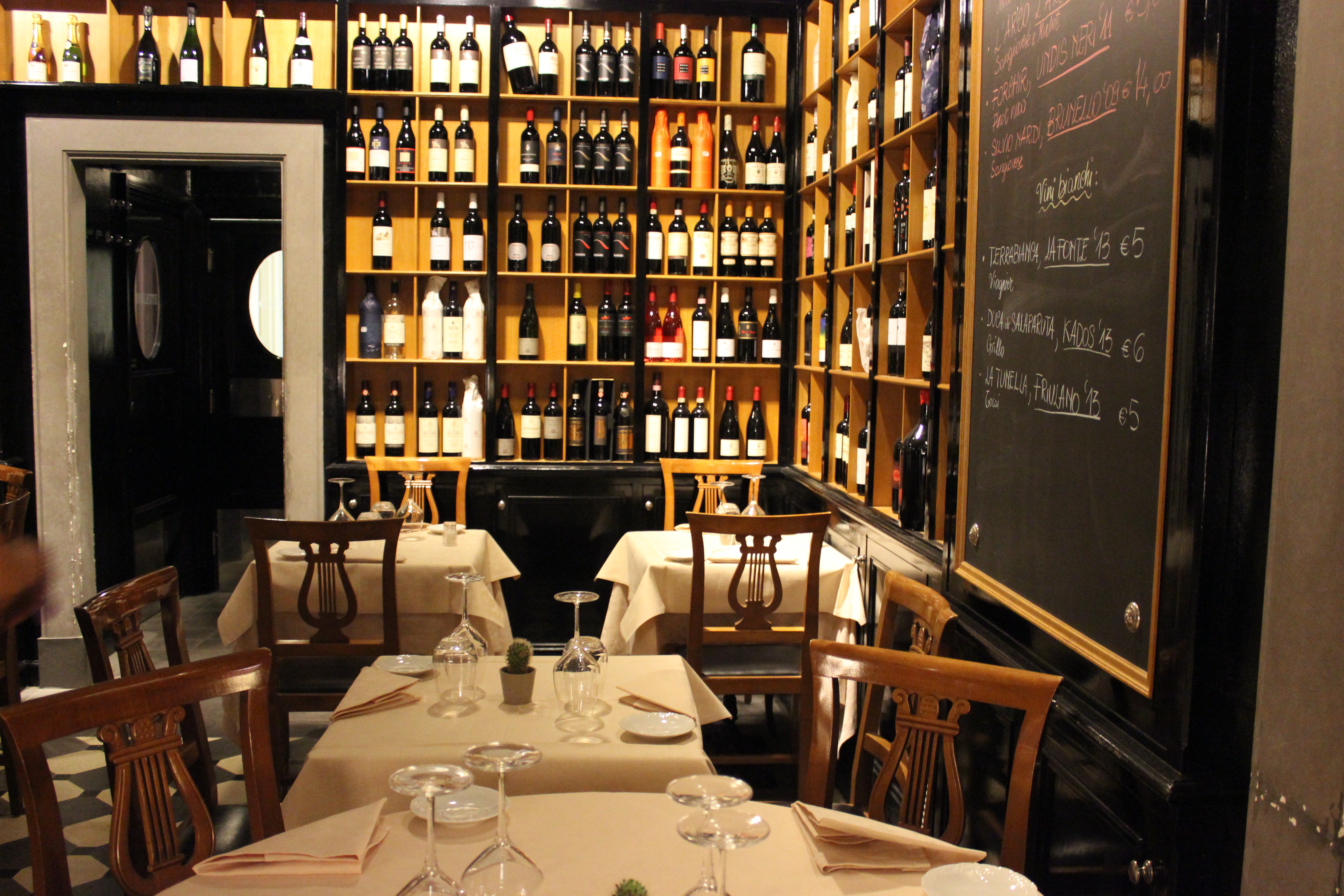 The dining room, beyond the dried pastas and condiments, is one of the most beautiful and elegant rooms I have discovered in my never-ending restaurant explorations. It is cozy, intimate, and warm, with tall ceilings and walls of over 250 pristinely displayed wine bottles. Two blackboards, one on either side, display the day’s specials- both food and wine.