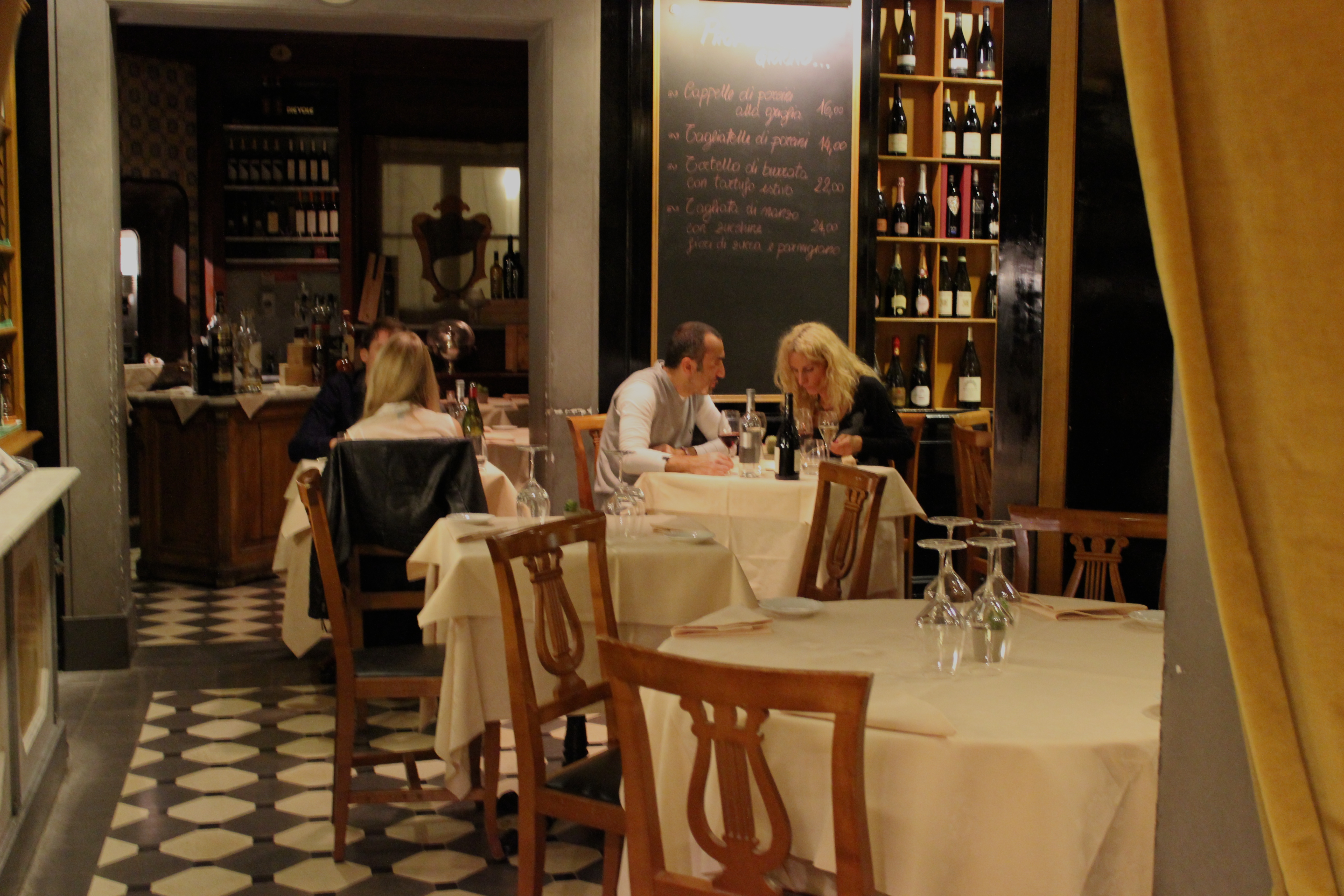 On our second night, we try what quickly becomes the best duck we have ever had, cooked at a low temperature and accompanied by a shallot stew. It is another beautiful plate, creatively enhanced with subtle flavors that lead us to believe the chef may have studied outside of Italy. In fact, Angelo tells us that the main chef is away on his honeymoon, and the sous chef helms from Asia. The blackboard tells us the tagliatelle special is meat sauce senza pomodori; instead of a tomato base, the meat is cooked in wine. Intrigued, I allow Angelo to seduce us once again with the warm, al dente pasta. The dish is simple yet highly original, certainly a great many steps outside of the more predictable Tuscan menu items seen at many of the region’s restaurants, which have remain unchanged for decades.
