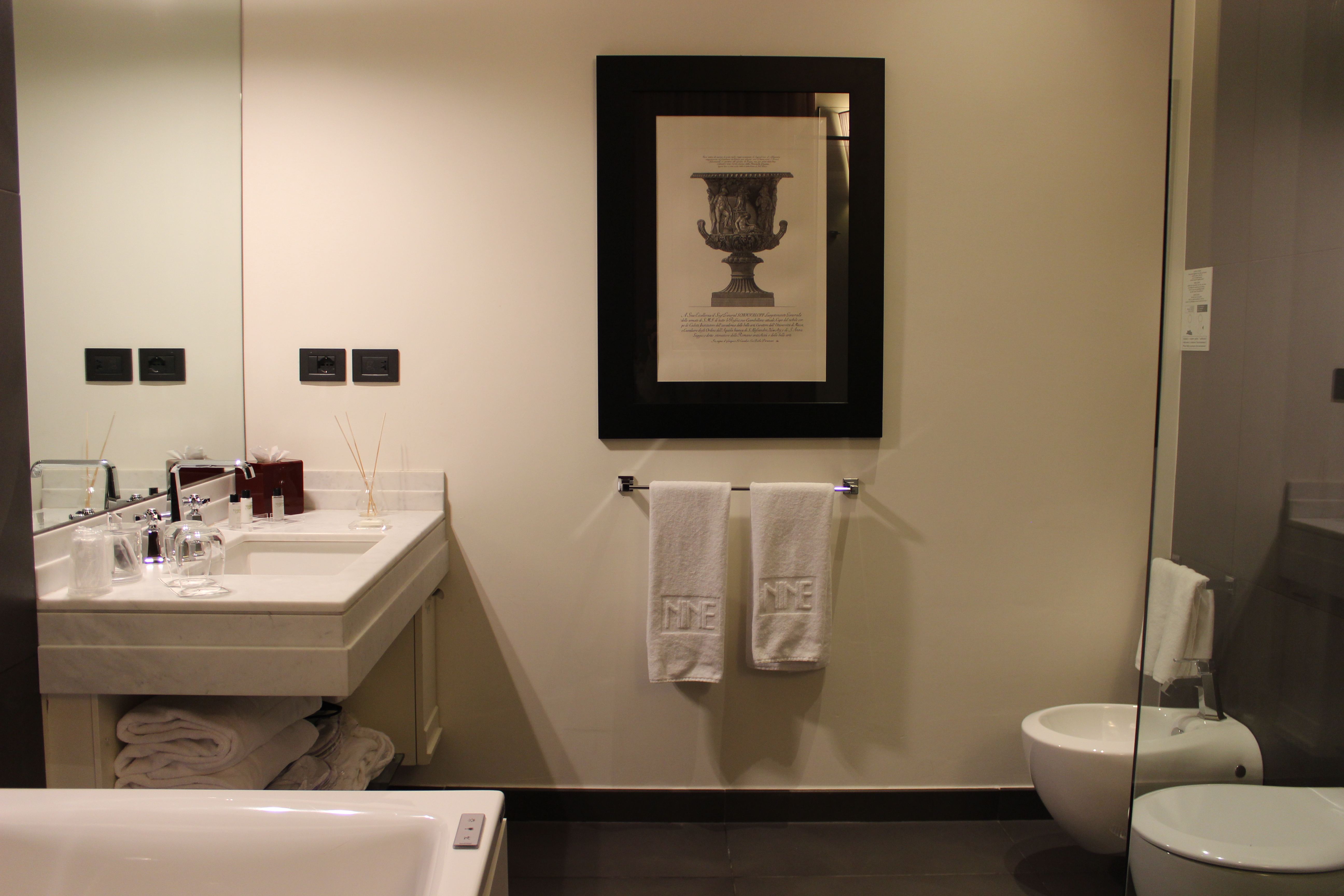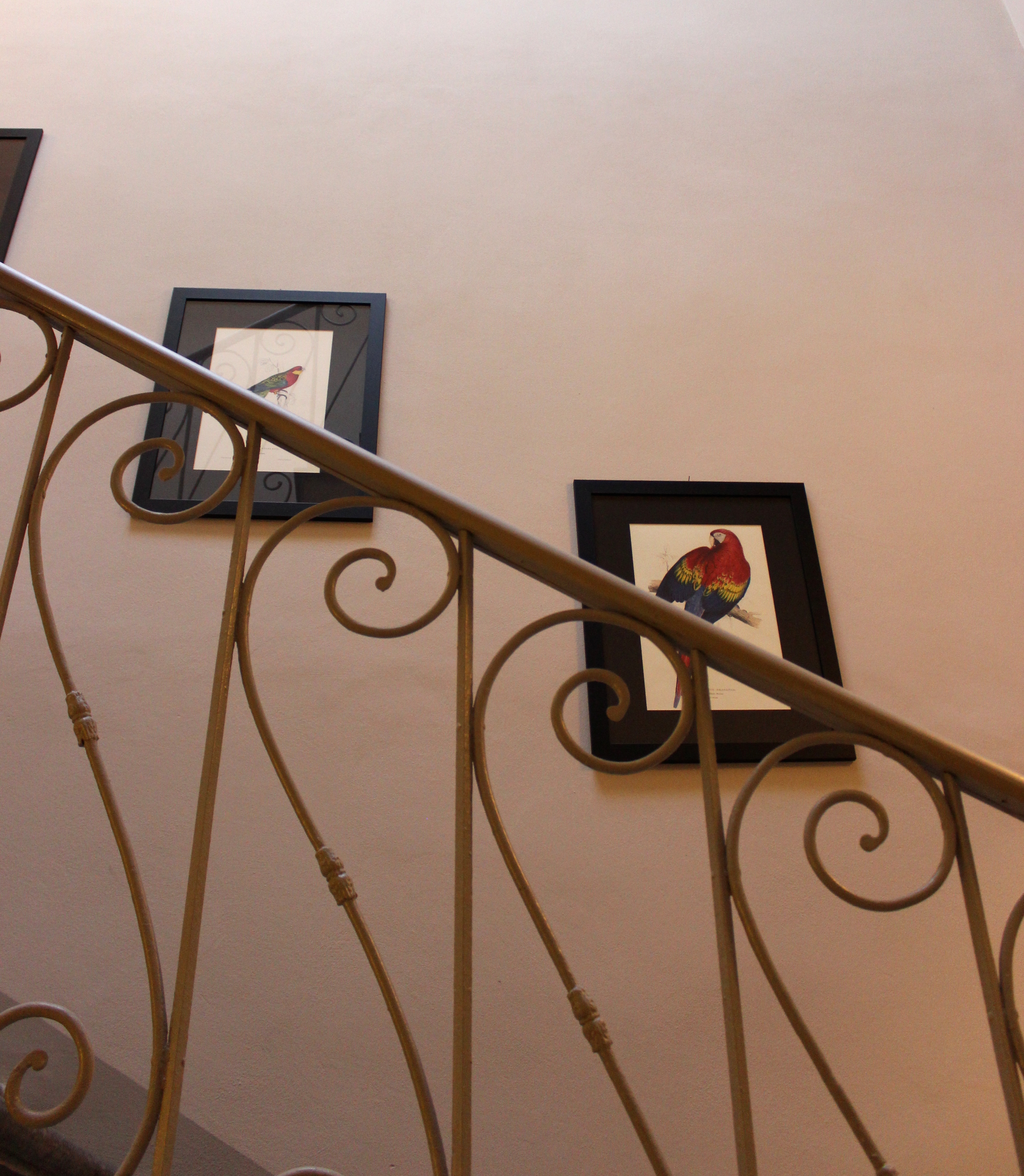 While the elevators are spacious for European city hotels, the wide stone staircase is far more interesting to ascend and descend, as it is lined with beautiful sketches of colorful birds; each an original print. The breakfast room was perhaps the most closed off, although it adjoins a small inner courtyard; it felt a tad stuffier than the rest of the airy building. The breakfast was a typical Tuscan hotel spread with far more carbs, cakes, and cheeses than fresh fruit, but the cappuccino was outstanding; the best I had during the whole trip.