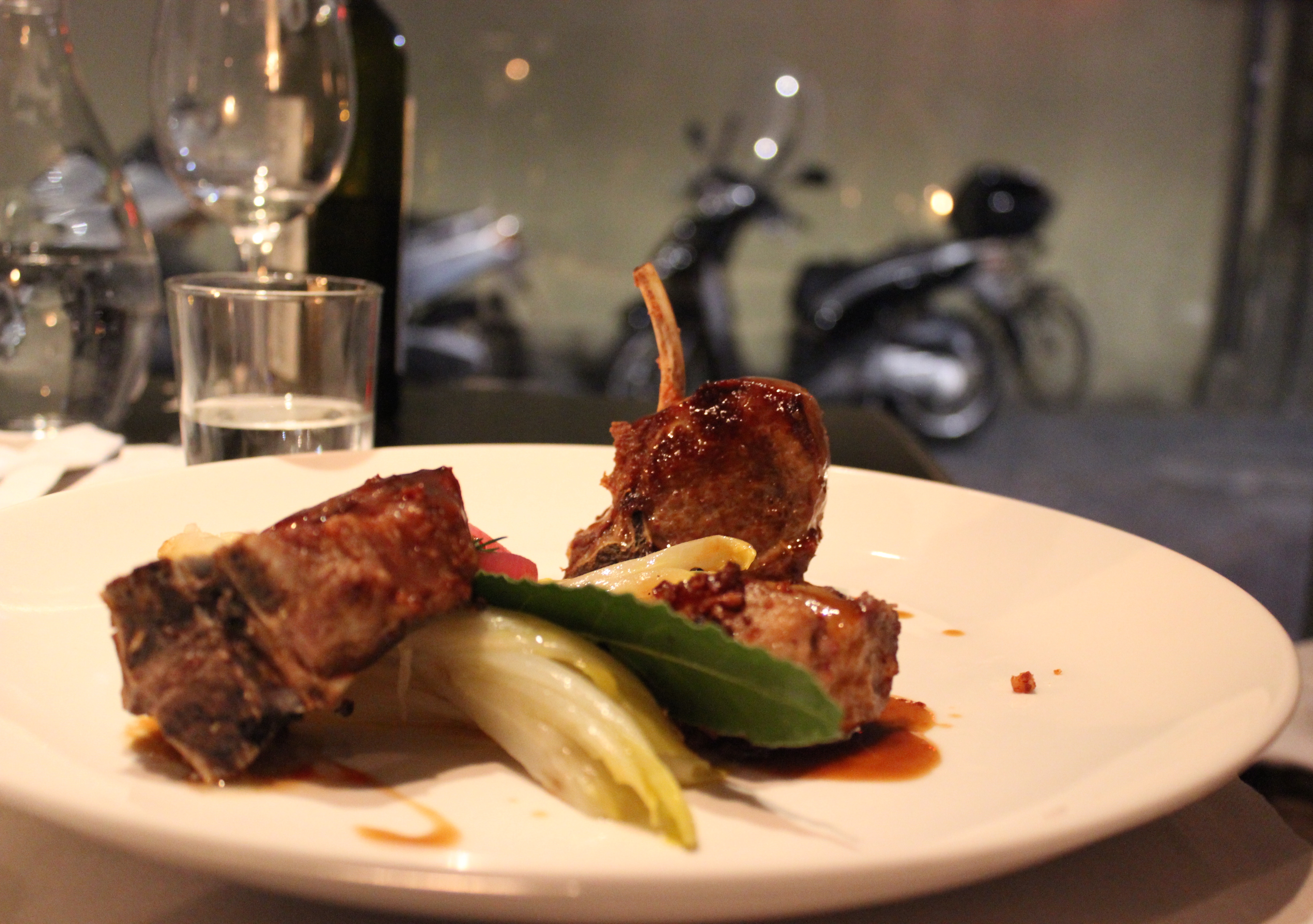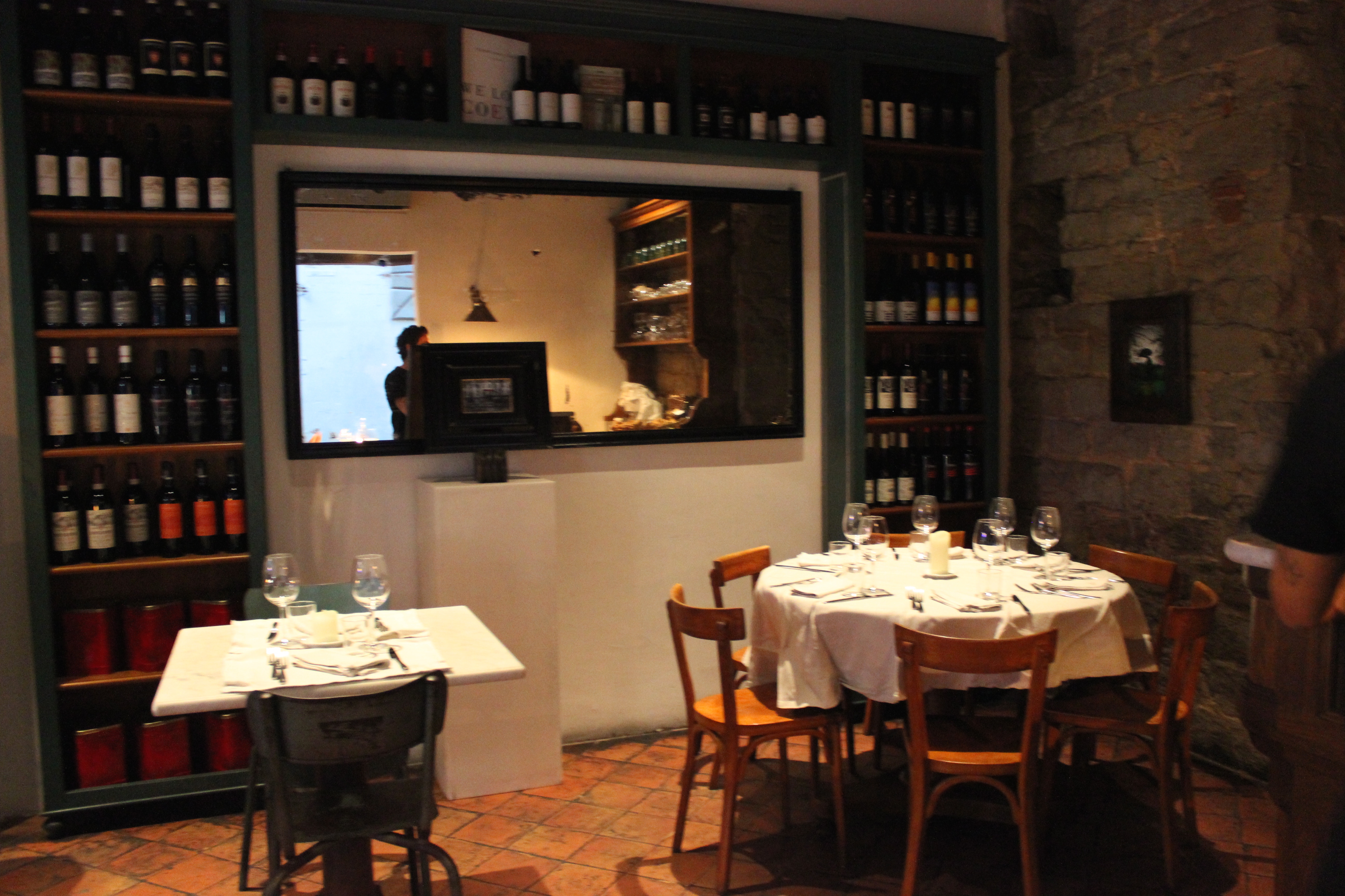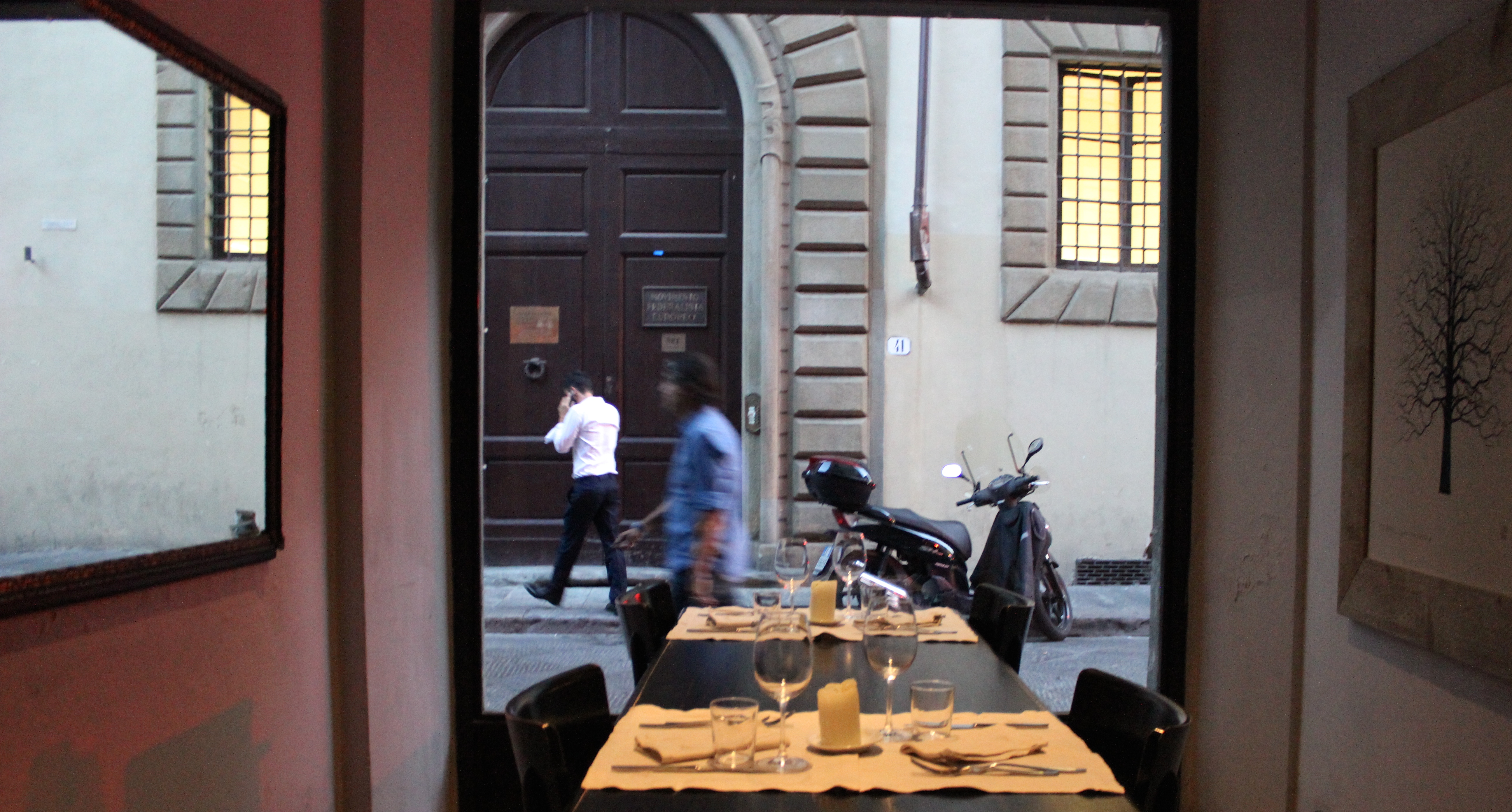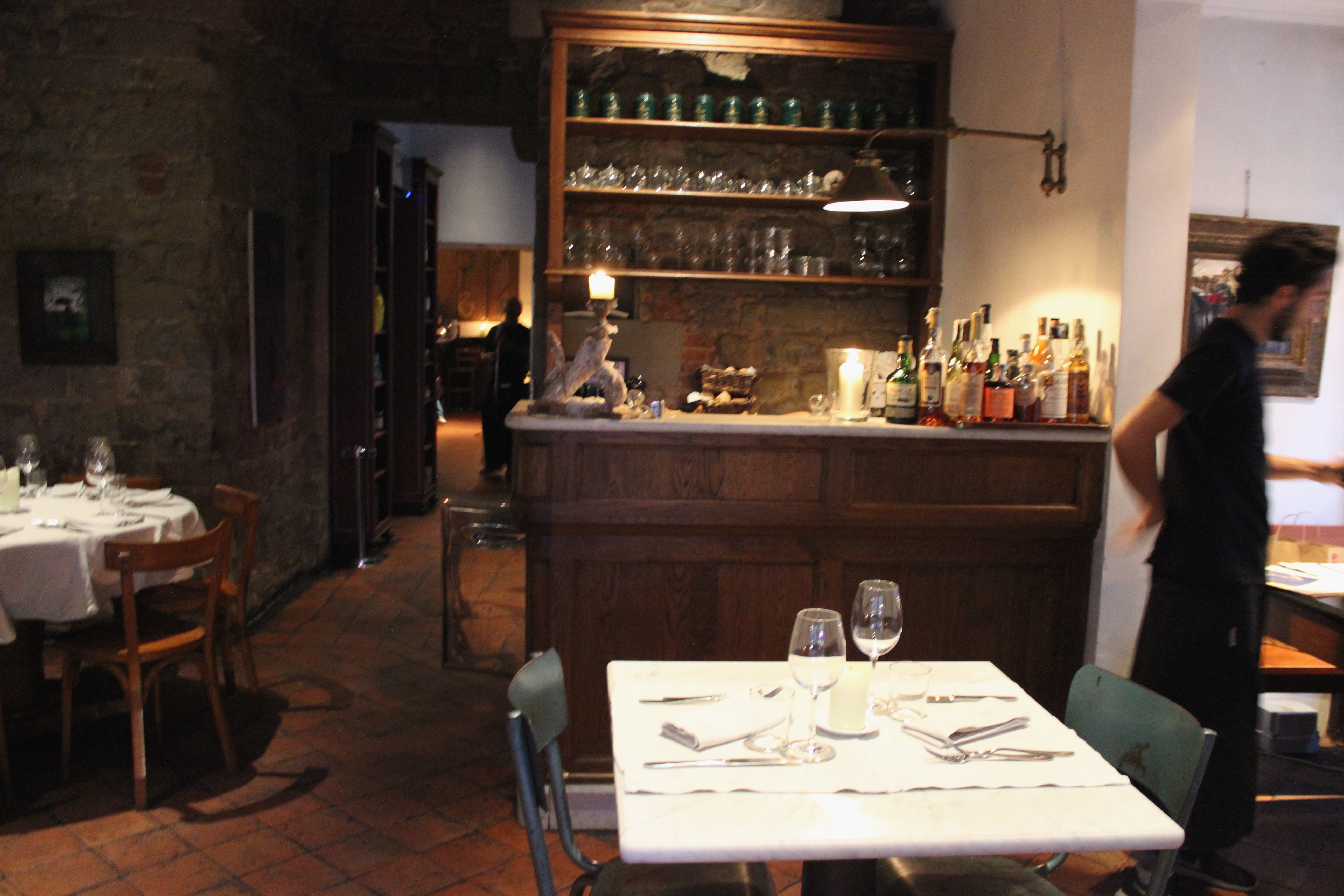 Upon first bite, I detected that the chef at Il Santo Bevitore had spent a fair amount of time outside of Italy. Expect a more modern meal; this is not your average trattoria with bistecca all Fiorentina et al. The seasonal menu is championed by a group of young, inventive chefs and creative minds. Where else in Florence can one find pea soup with cacao nibs and ricotta? Add to that one of the most unusual dishes I have had in recent memory: stuffed calamari with mussels, clams and pomodori. The lamb chops were cooked to perfection, served with chilled braised fennel. Celebrated toques Pierluigi Campi and Claudio Salvatori challenge the Florence restaurant scene, introducing international elements to a city who has relied on a sturdy repertoire of regional cuisine for decades. Indeed, the chef worked in London for some time, and the restaurant’s reputation has continuously heated up; it is recommended by absolutely every Florentine you might ask, and when we arrived at 7:30 for our reservation (the first seating of the evening), there was already a line at the door.