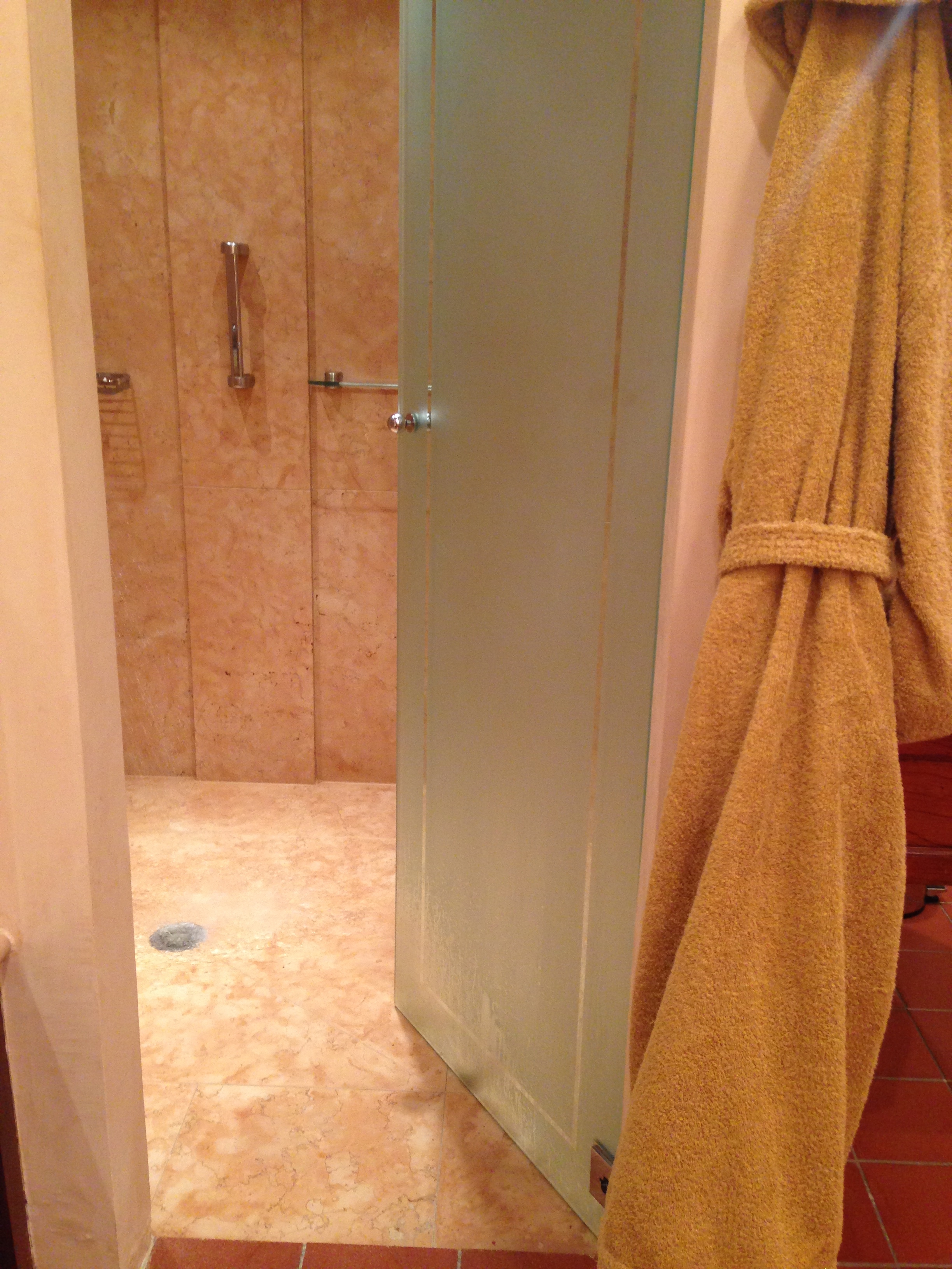 So it is a wonder how powerful a hotel bathroom can be to someone on vacation. At home, bathing is a daily necessity: we allow ourselves mere minutes to shower and get ready each day. When on vacanza, especially when ensconced in a bathroom like ours at Belmond Villa San Michele, we exult in the warmth and deep relaxation of a different kind of purification. Our oversized room has two areas on opposite sides of the bath for each person: each person has a personal sink with personal toiletries (Bulgari and Penhaligon products), each person has their own hanging space, shelf space, and drawers; three times as much storage space as my last apartment. The oversized bathtub commands the center of the Tuscan-tiled room, with a giant urn filled with bath salts at the ready. The shower is large enough to host a small tea party, and I find it rather difficult to decide each day, the bath or the shower, so the only practical choice is to bathe more frequently.