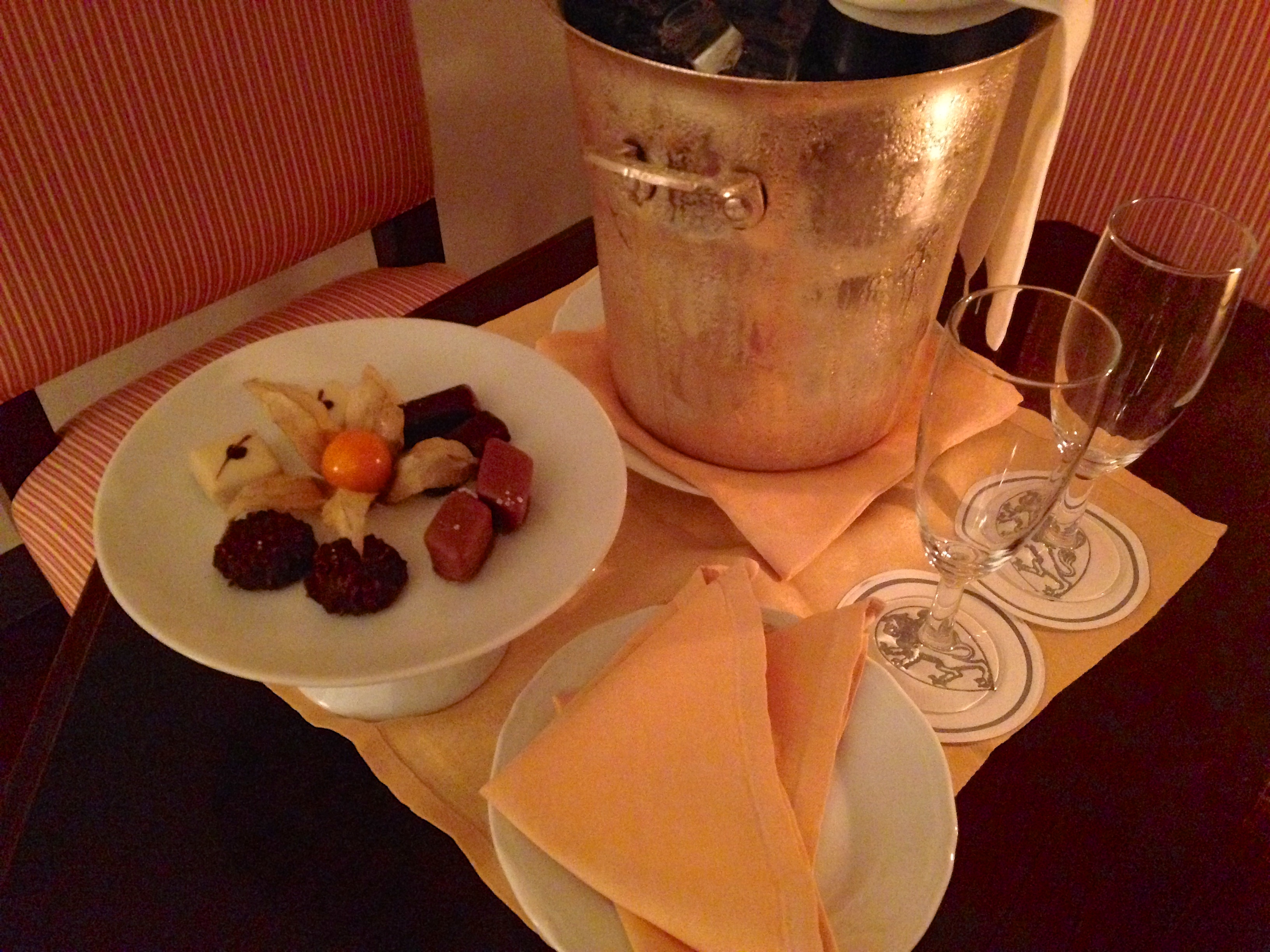 Ours had its own private patio overlooking the terraced gardens and all of Florence below. The room was large by all European hotel standards, and the bathroom bigger than many Manhattan apartments. After a tour of our room, during which we were like two small children at an amusement park, our eyes darting from one point of interest to the next as if we only had all of five minutes to soak it up, we did as those on holiday are supposed to do: we sat on our terrace and remained motionless. We indulged in welcome prosecco, snacked on hazelnuts and fresh fruit, and allowed the Tuscan sun to kiss our bare shoulders. I believe this is called ‘relaxing,’ otherwise known as ‘luxuriating,’ an activity that Italians have mastered as if naturally predisposed. If it is indeed a genetic predisposition, I don’t think it’s swimming in many New Yorker gene pools.
