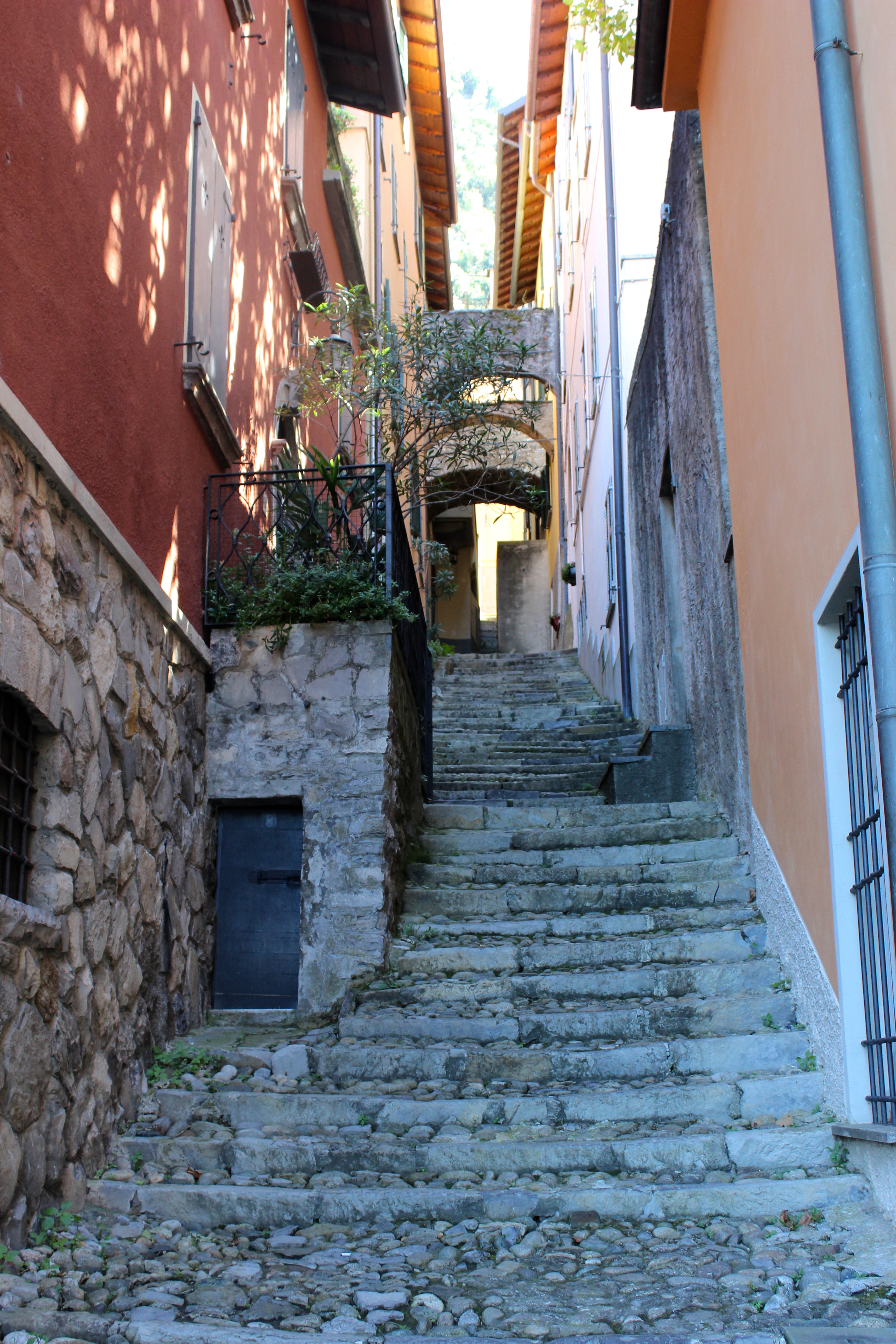 We embrace popular opinion, (Rick Steves’ included) and start our lake introduction on Como. On a perfect mid-September weekend, we arrive by train at the tiny, unpretentious village of Varenna, and make our way by foot down the winding road to the town square. The air is crisp and clear, and we pass narrow stone pathways lined with sorbet-colored houses that lead down to the lake, offering glimpses of the waters edge. Varenna quickly proves to be a most romantic little hamlet. We catch lovers holding hands and stopping to explore distant vistas, ancient stone details on original structures, citrus trees and palms and oodles of other botanical growth running rampant on cobbled paths.