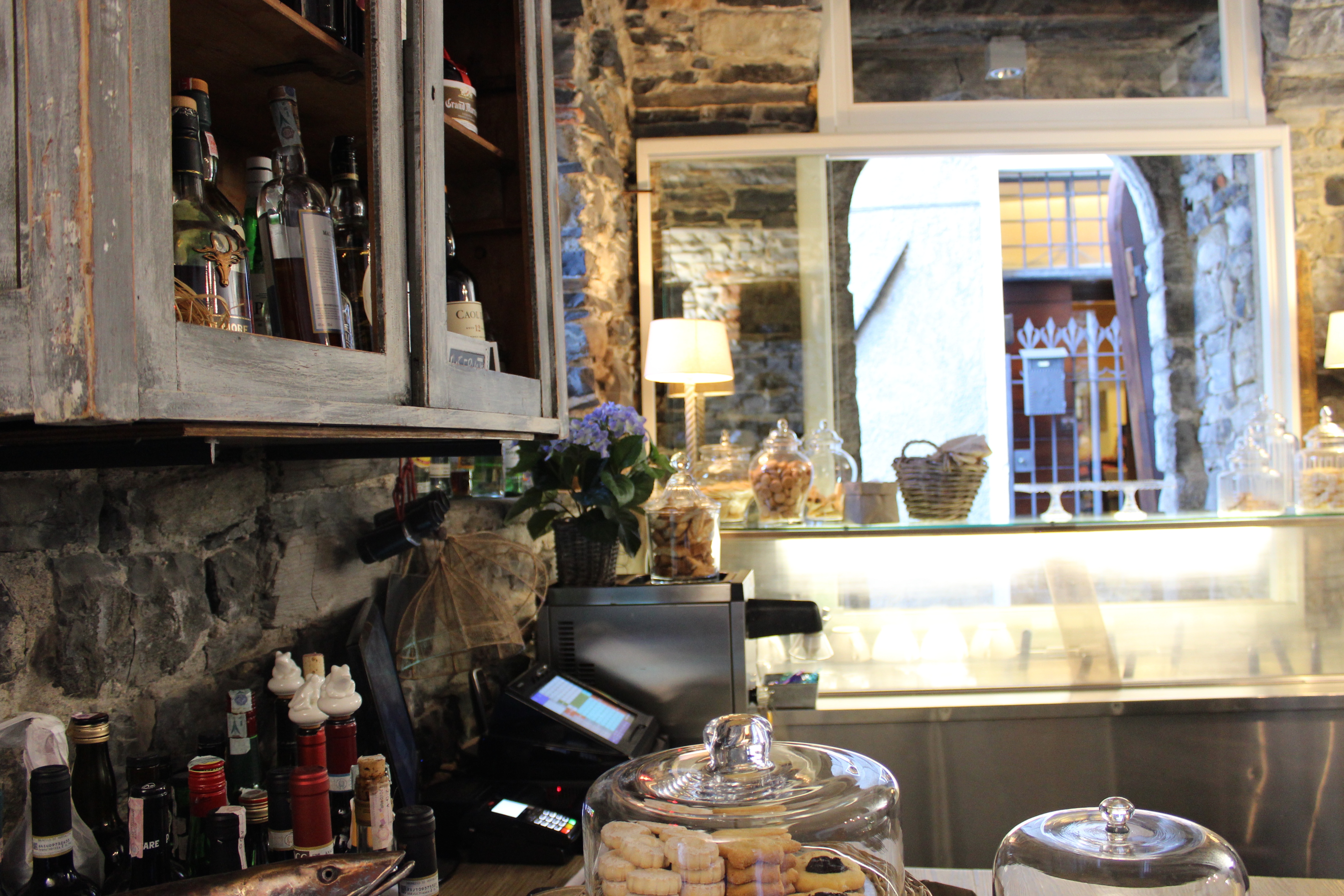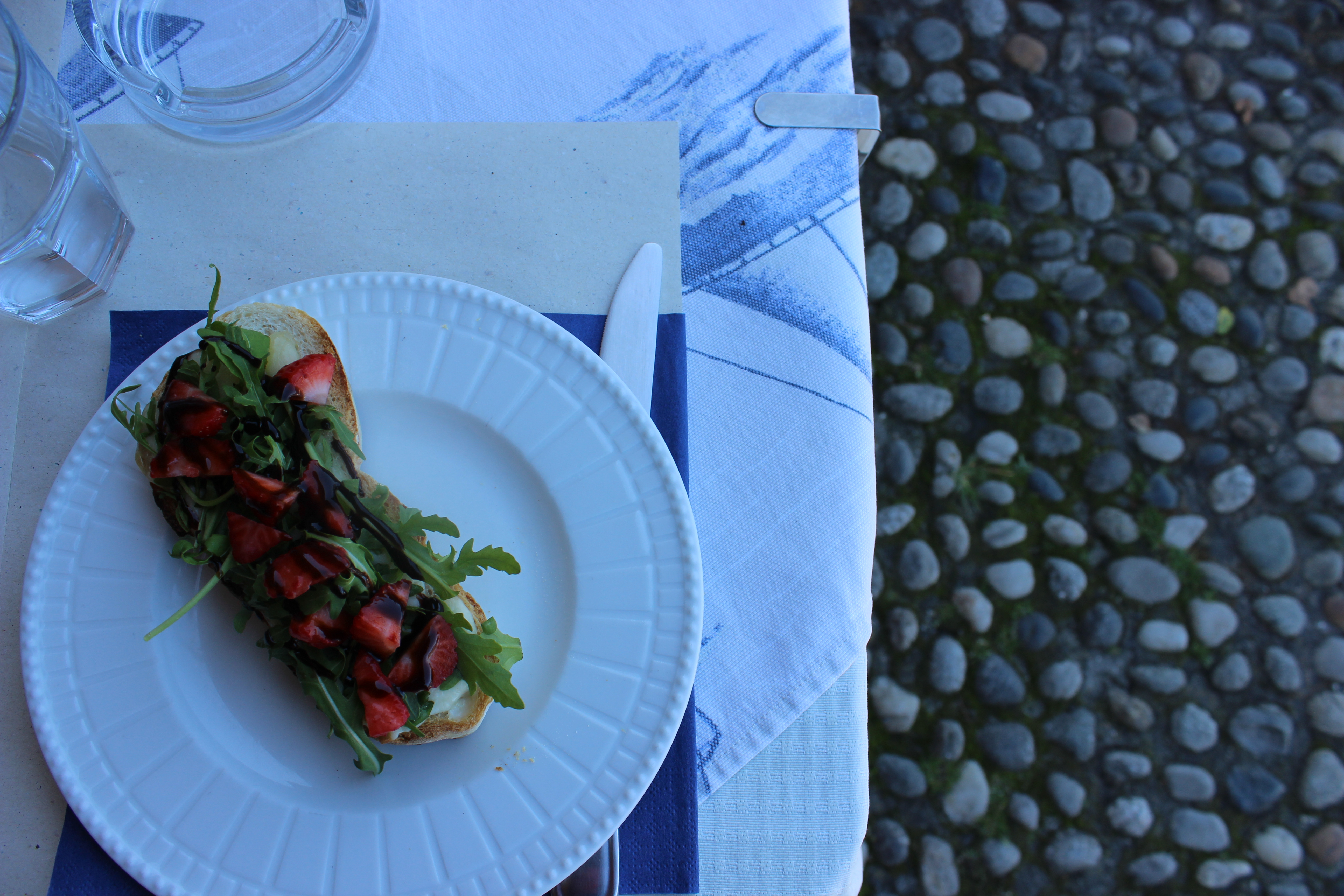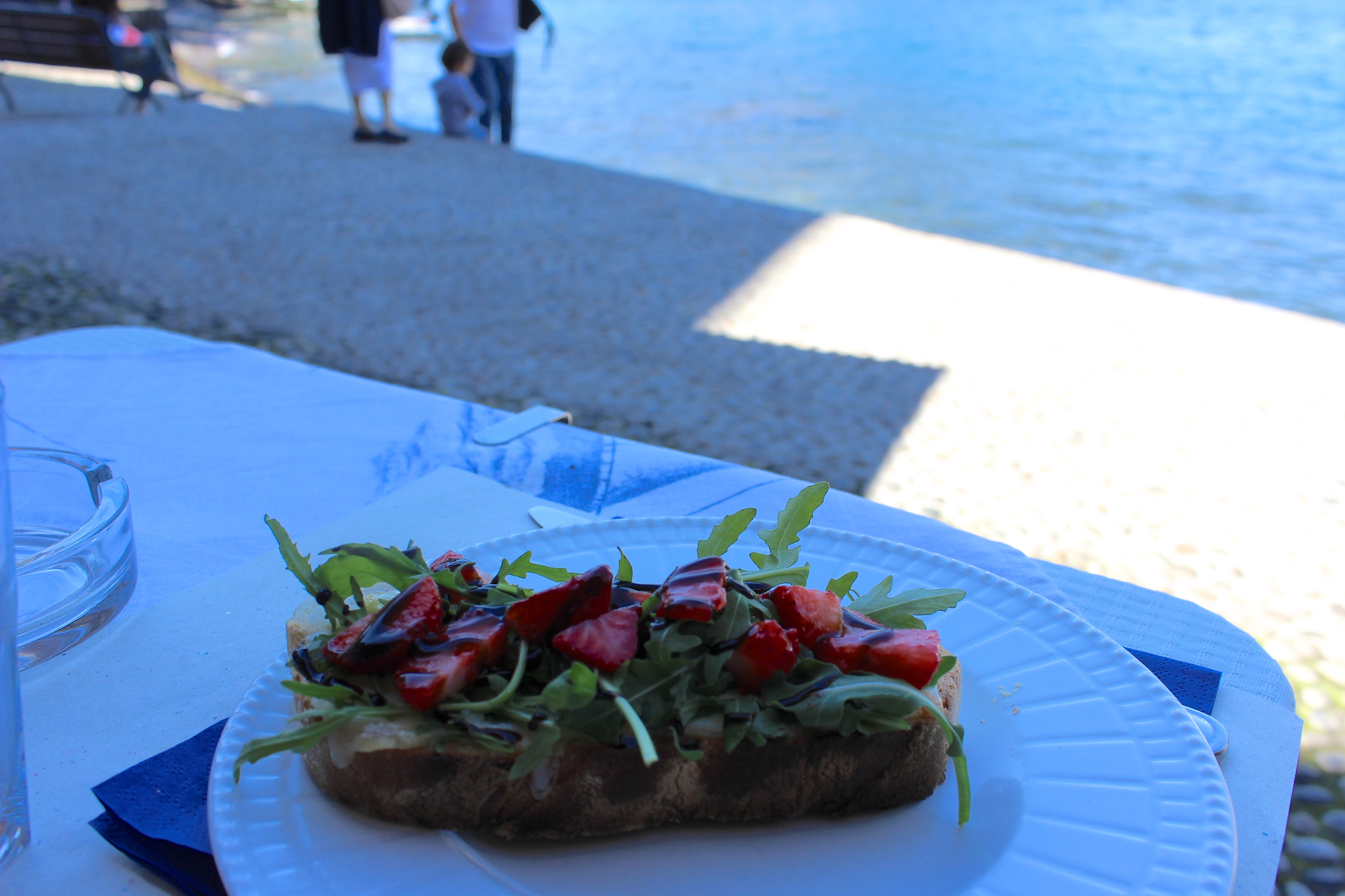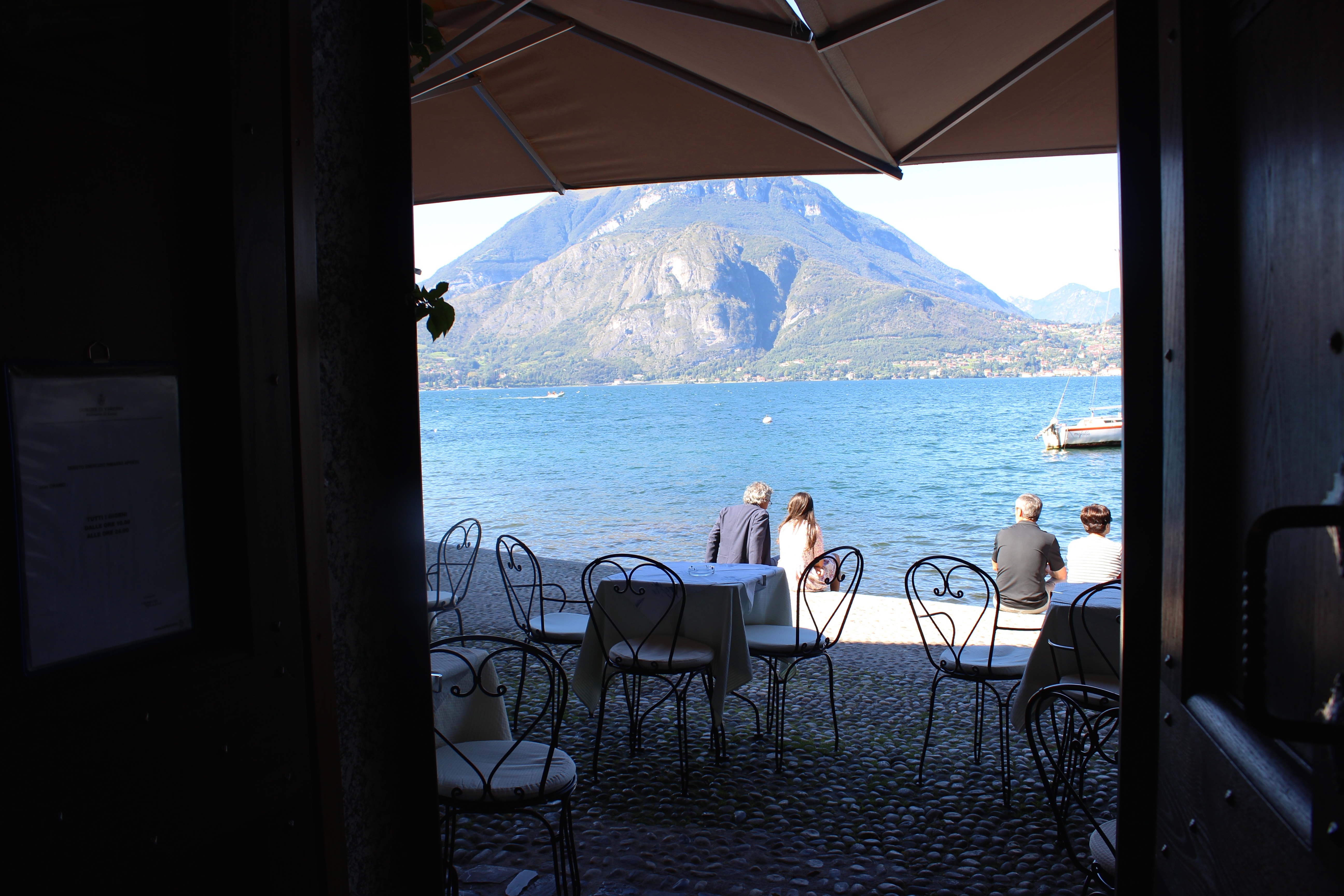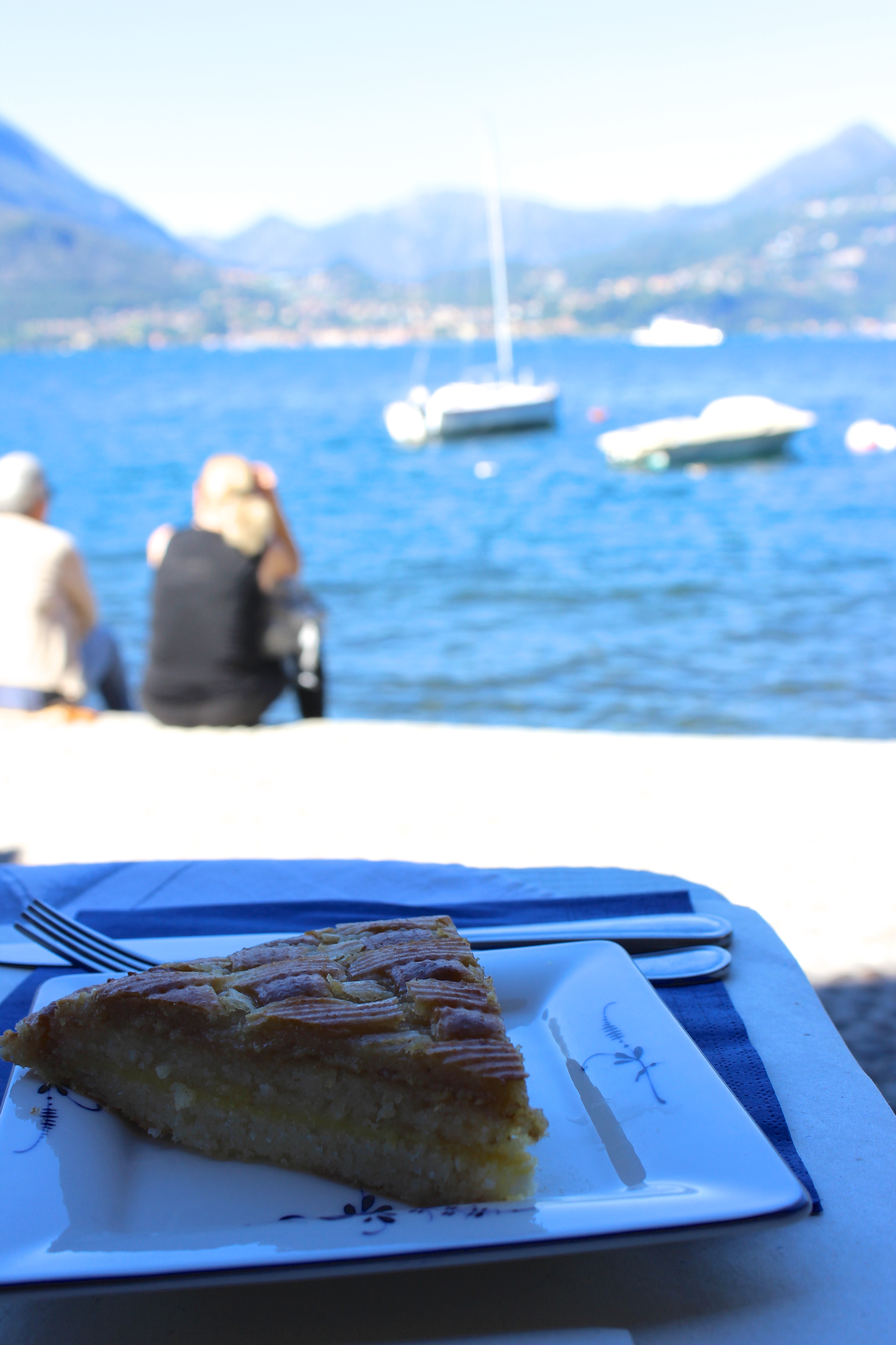 Scents of freshly baked cakes and frittatas drift out onto the cobblestones. Varenna Caffe is rustic chic, designed in keeping with its lakefront location. I imagine it is a favorite for summer residents. We choose a slice of their homemade almond cake and bruschetta with taleggio, strawberries, arugula, and balsamic. Our forks go back and forth between sweet and savory as we watch a couple sitting at the edge of the stone promenade, wading their lower legs in the lake and enjoying a rather perfect September Saturday.
