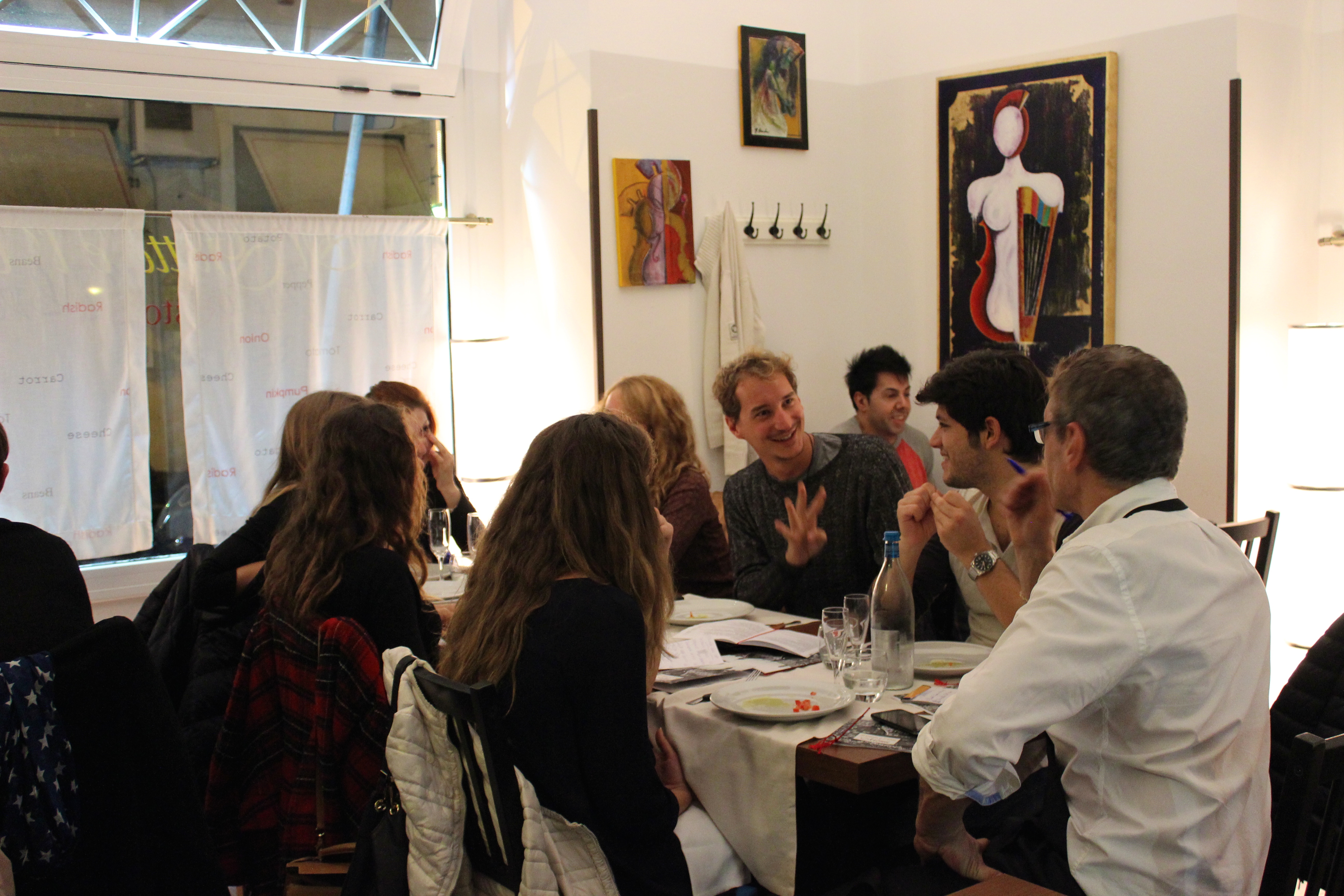 I cannot imagine an evening at Il Gatto e l’Uva without Marcello. Is he related to the Marcello? Possibly. He is just as charismatic, what with his mischievous smile, his tall Roman stature, and his swift movements around his recently opened restaurant above the Via Veneto neighborhood. When I first read reviews that described the ambience as romantic, the food refined, and the plating more ‘modern’ than other Romani favorites, I wondered if this was going to be one of those ‘trying too hard’ uncomfortable restaurants, where the single spear of asparagus is a whole 4 inches away from the carrot. Phewf, this could not be farther from reality. Il Gatto e l’Uva is as convivial as it gets, with tasty Roman cuisine beautifully presented yet still rustic and simple, and a warm prosecco/bruschetta greeting. The whole restaurant is run by two incredibly fun, bewitching hosts who make for a stellar evening.