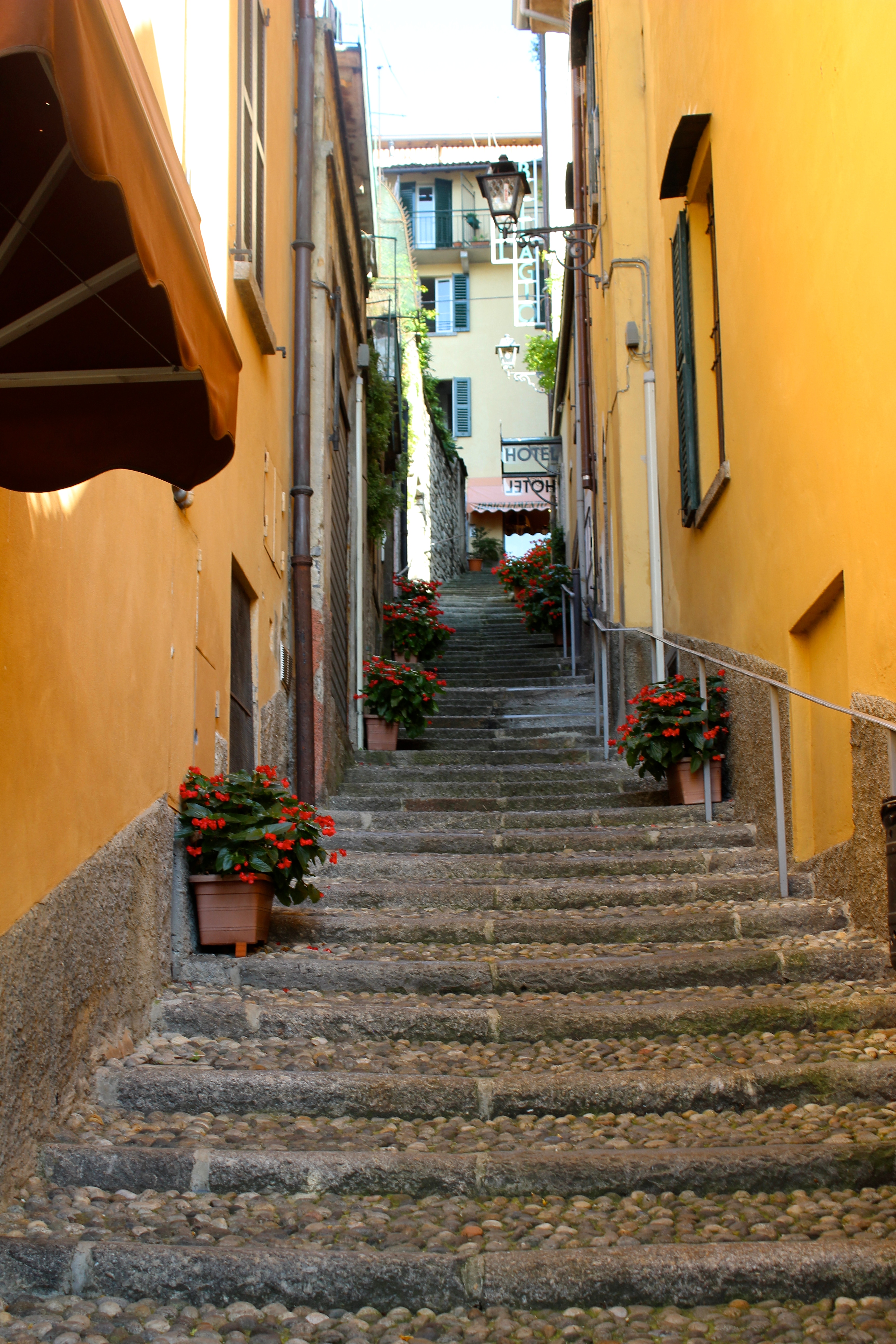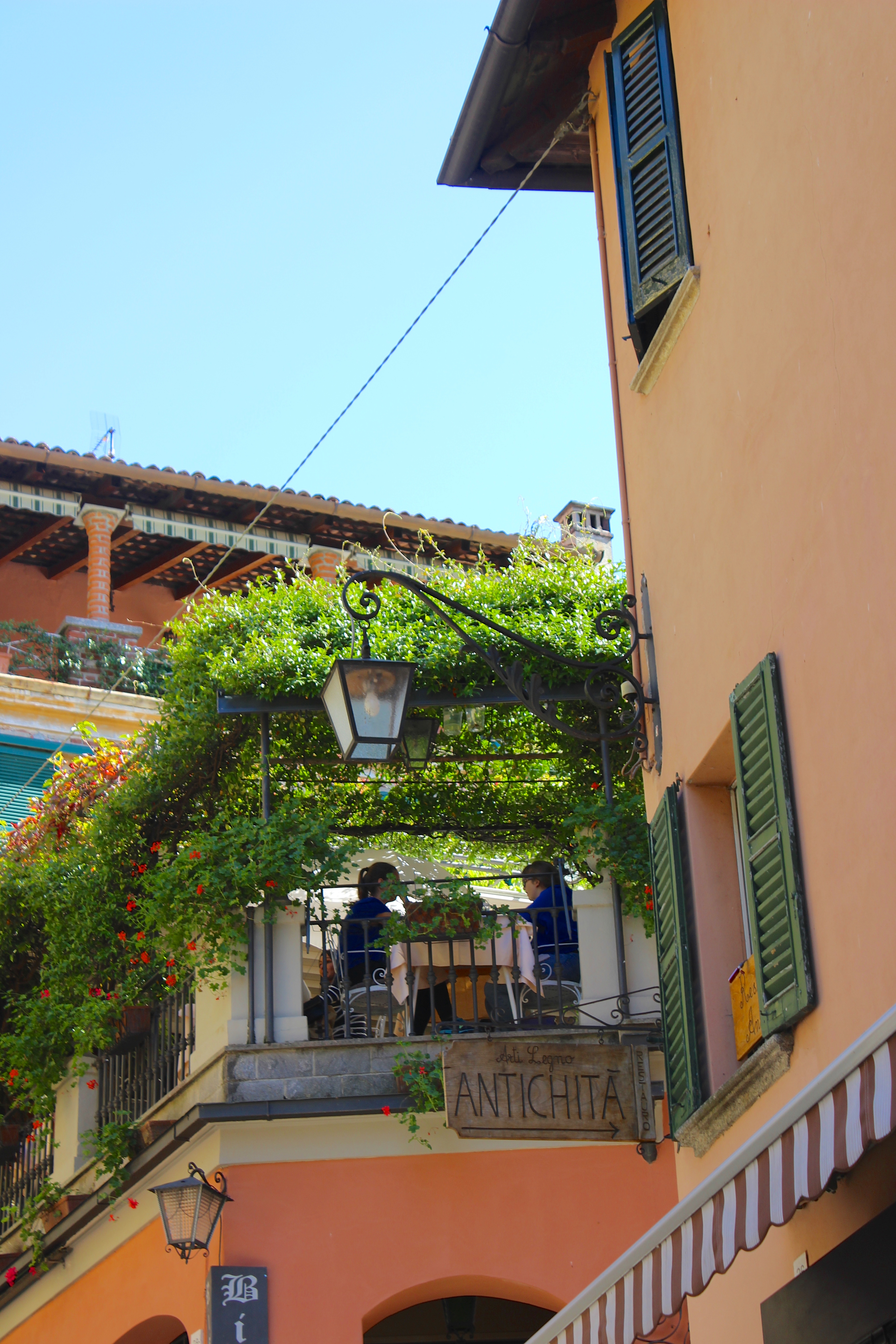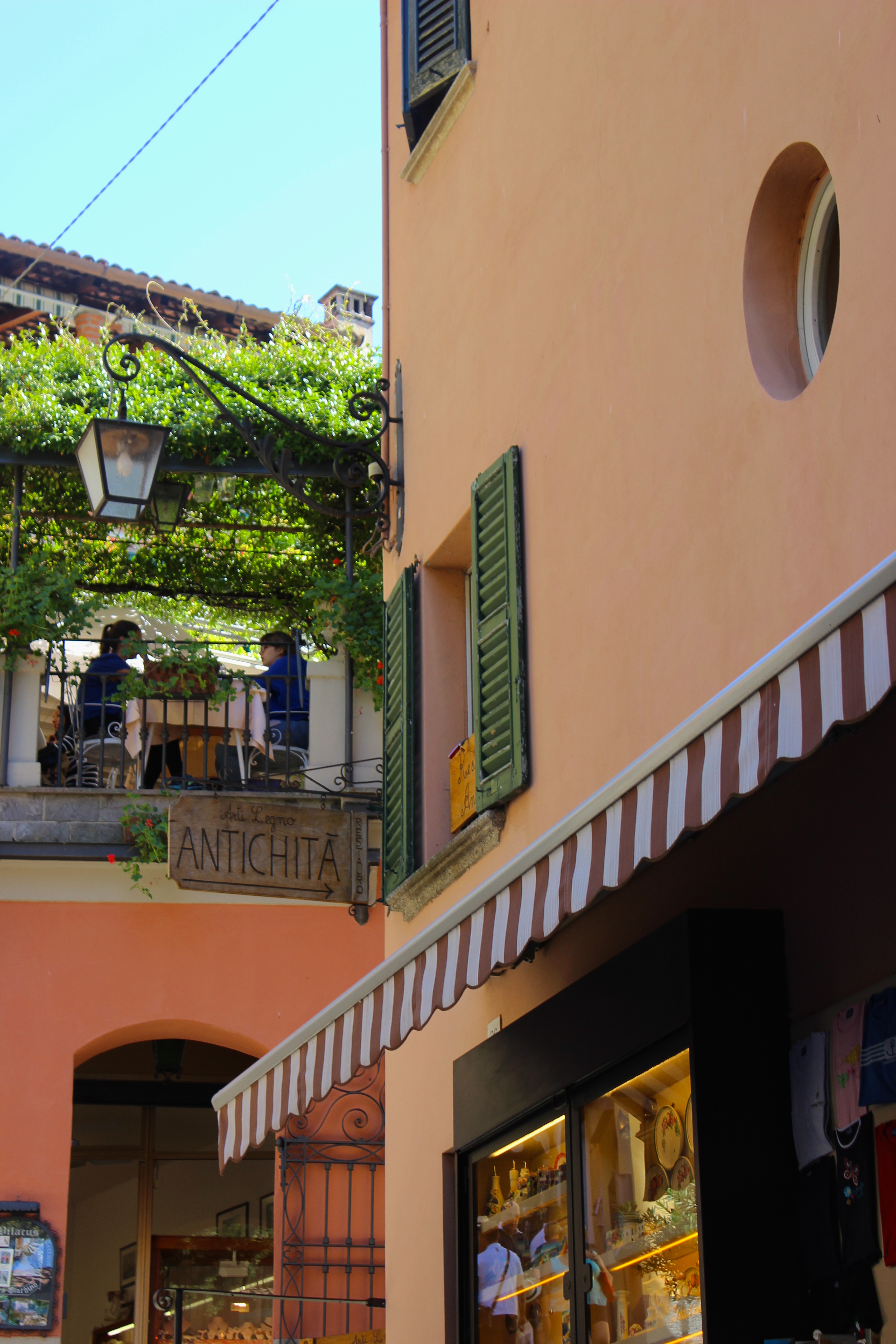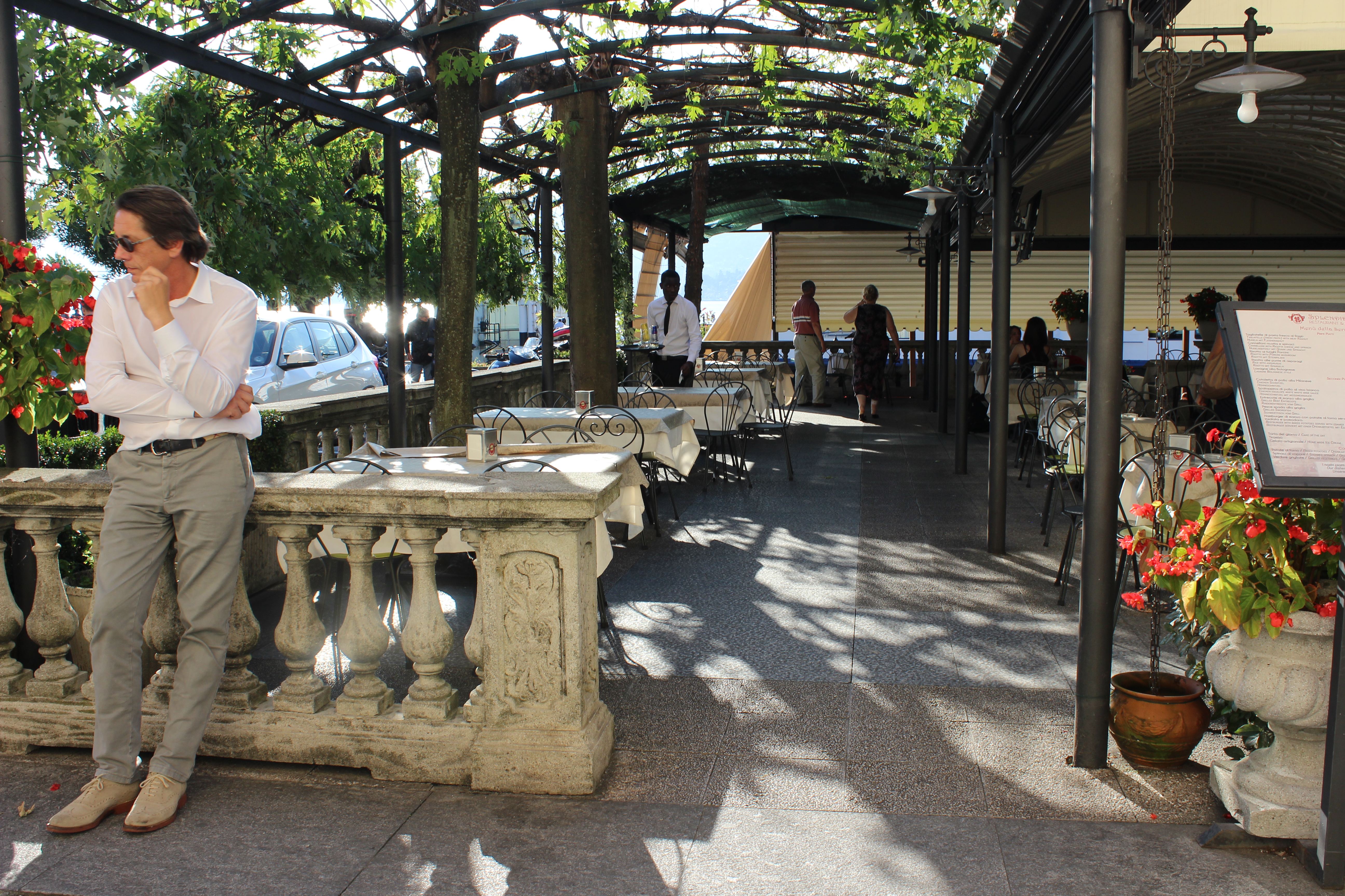 The promenade is wide and leisurely, adorned with beautiful shops, newsstands, and cafes with peach-colored tablecloths and white iron chairs. Take any of the narrow lanes that lead inward and upward, and listen, smell, taste, feel, and see lakeside life at your fingertips. The ambience is romantic, sunny, and melodic, as if Verdi is orchestrating the background music for all town meanderings. I half expect Don Juan to come to life, leaning against one of the sun-colored buildings underneath a lantern, beside an overflowing pot of geraniums, ready to sweep me off my feet and charm me at a table for two on a terrace surrounded by seductive vines- (or am I to sweep him off his feet? Byron, please clarify).