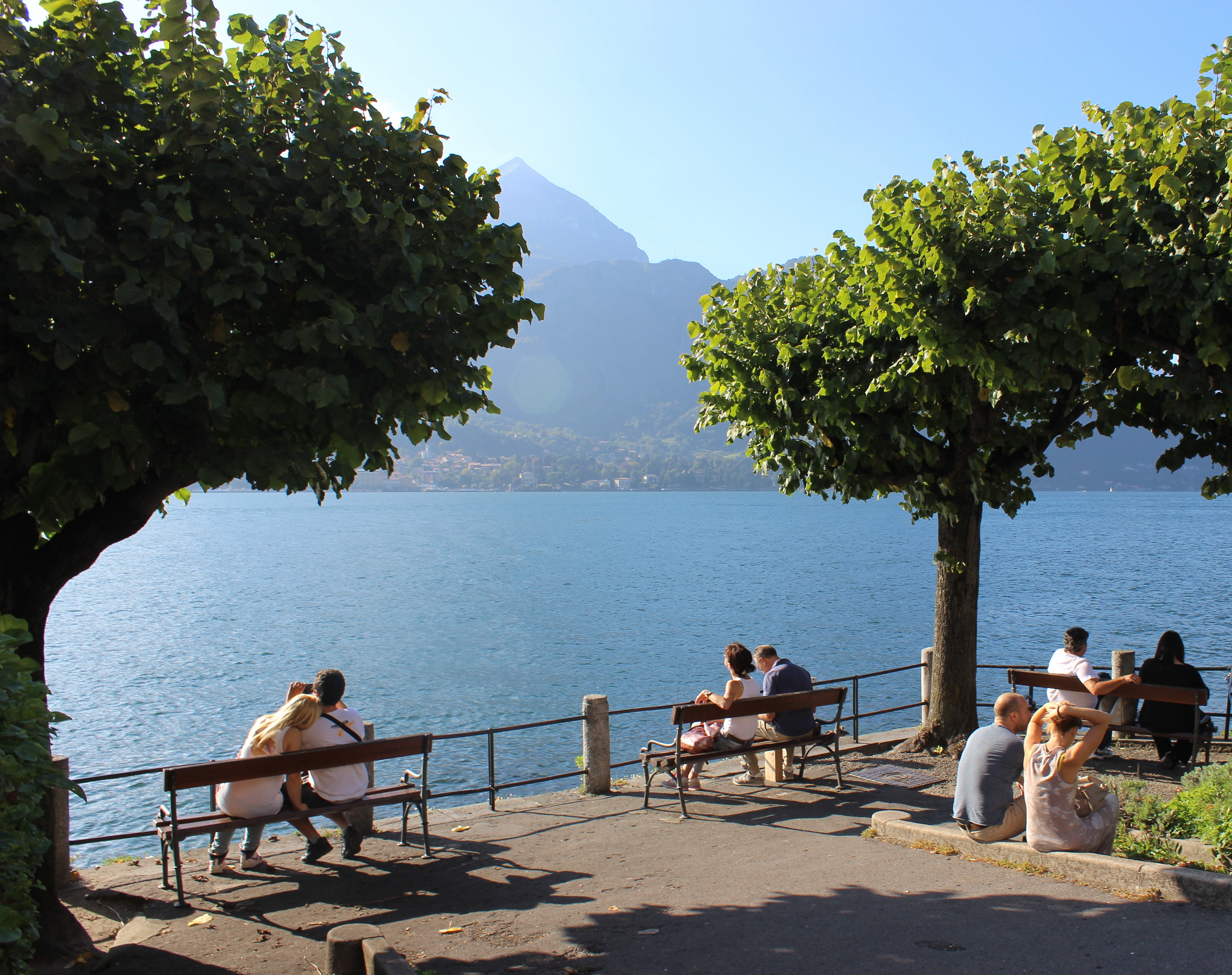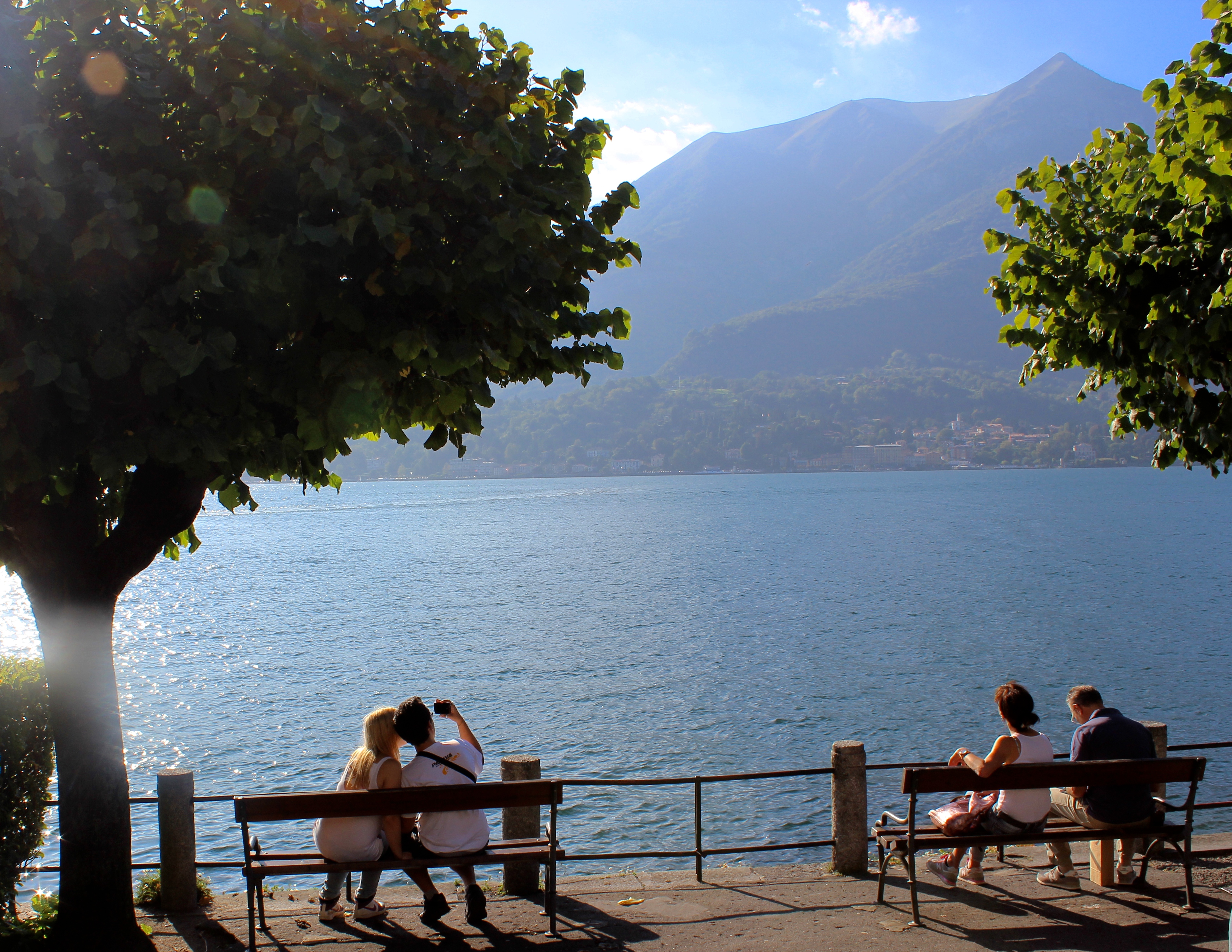 When it is time to stretch your legs, join lovers at the promenade for a lakeside walk beneath the bougainvillea, or duck in and out of the shops along the main road, now staying cool underneath sun-coverage. Cyclists, dogs, and ferry-watchers criss-cross in slow motion, careless or otherwise unaware of passing cars. The lake is ablaze with the last of the day’s rays, and the alps fade into each other in a haze of blue; reflections of Como’s colors.
