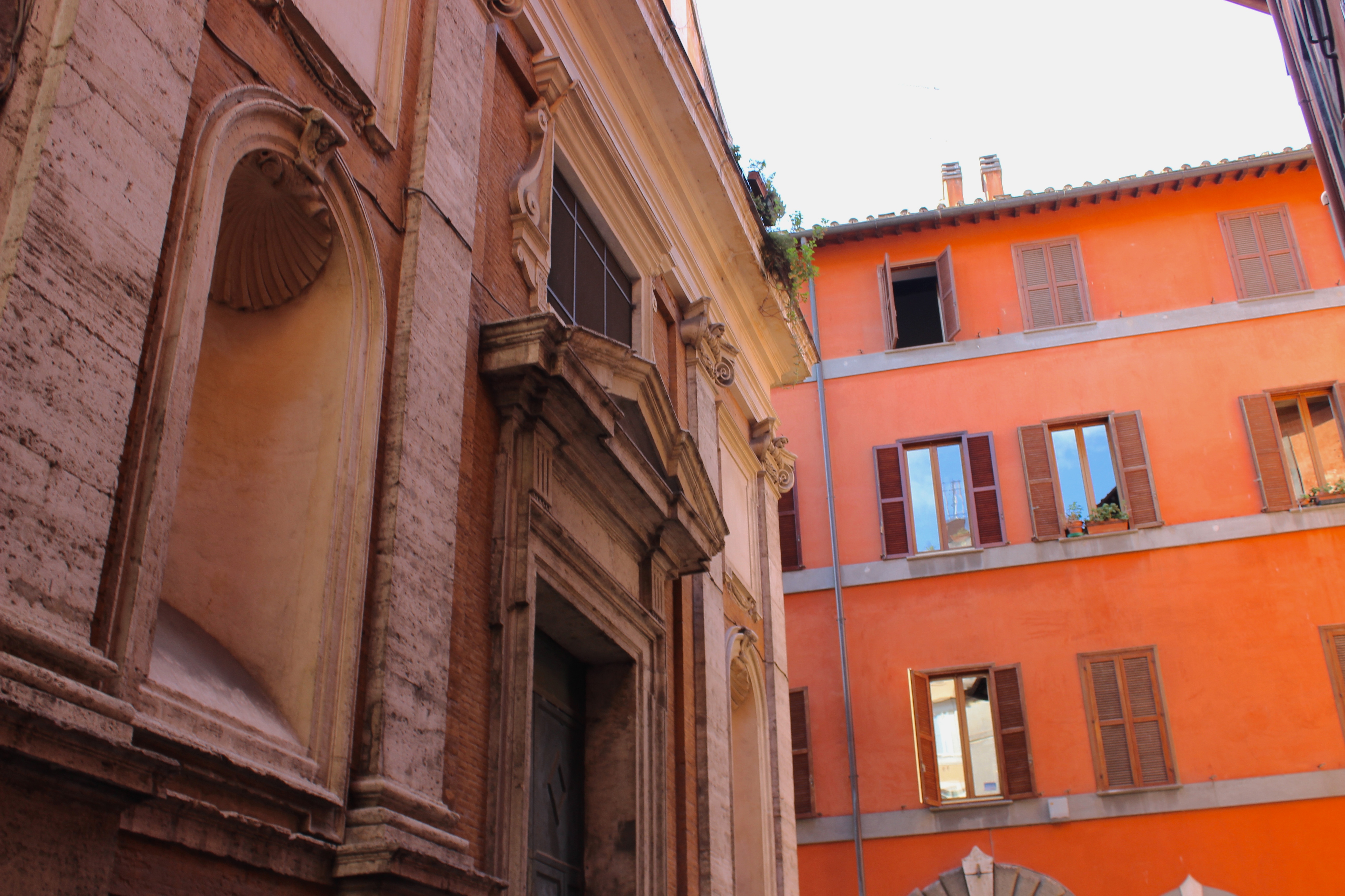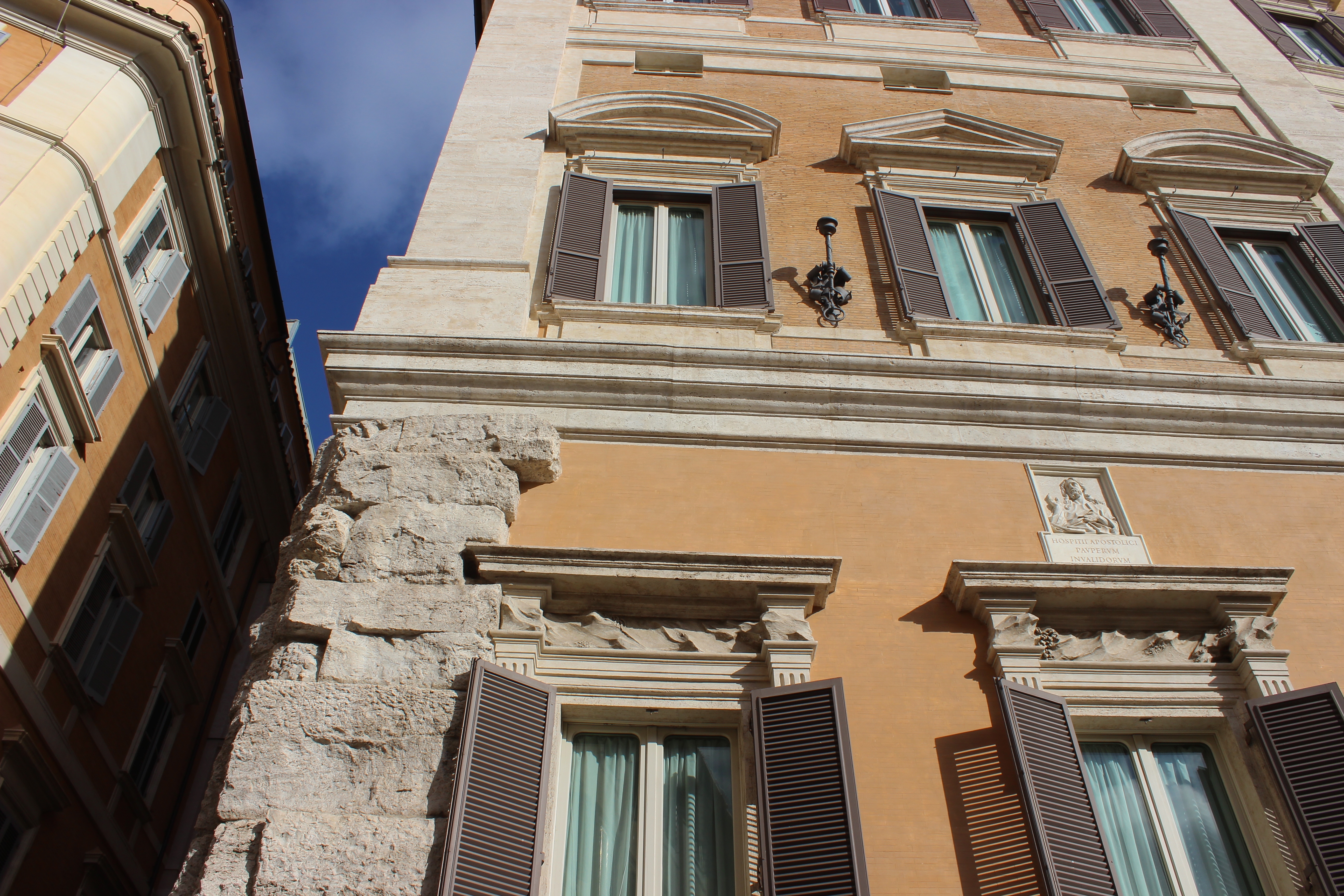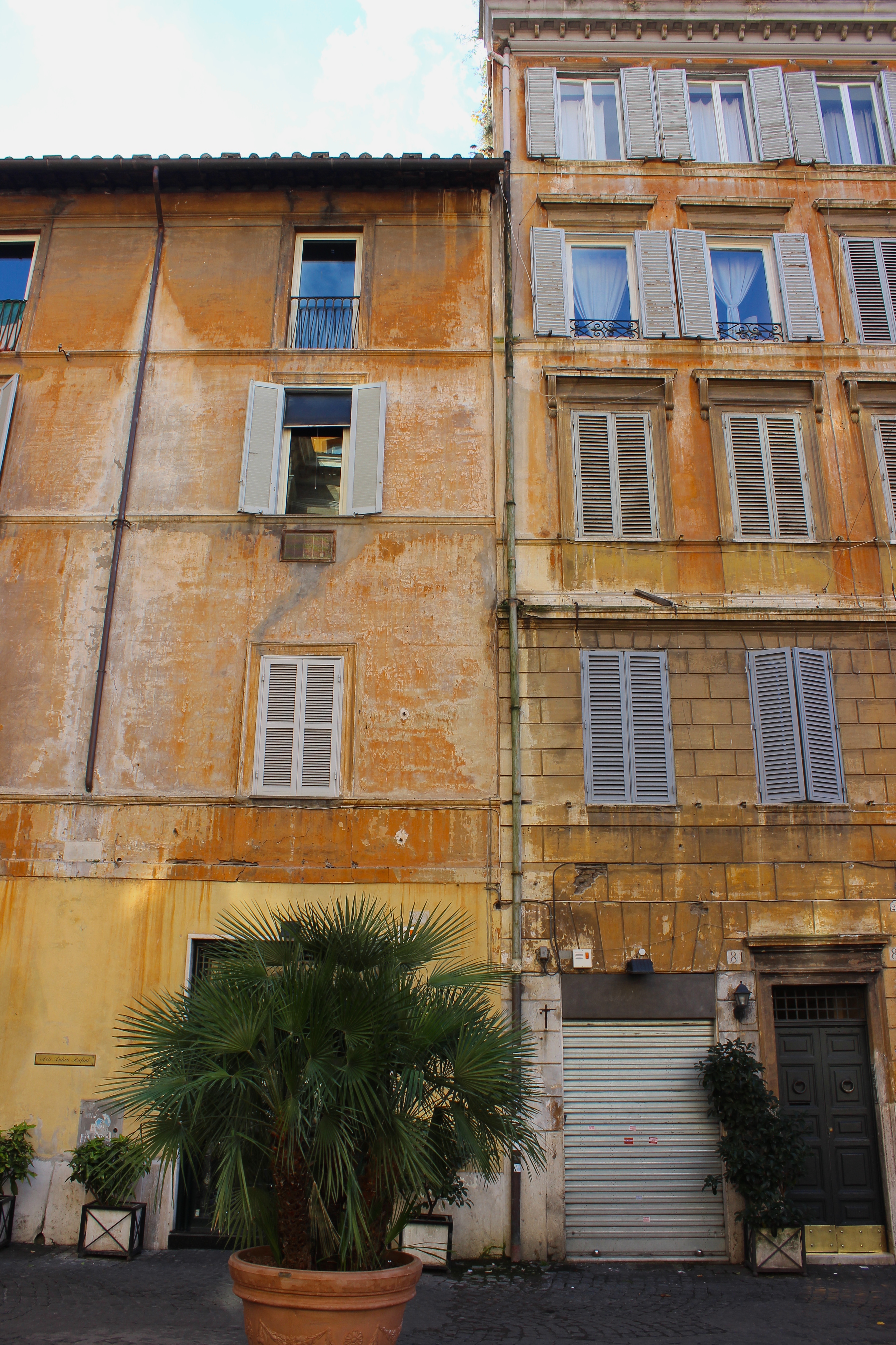 One need only to wander the maze-like cobble stoned streets and look up and around in order to appreciate Rome’s outdoor museum quality. The warm, mediterranean colored buildings are medicine for the weary, the bored, and the jaded. The terra-cotta pots perched at the very edge of sixth floor rooftops and terraces are displays of ‘come no?’ Vine-covered homes and hotels, intricate arched doorways and painted shutters- shutters everywhere. Narrow, winding lanes lined with scooters and caffe tables, Romans in full designer garb, wardrobes stylishly speaking out loud with reds and blues and greens. Roma is a technicolor city filled with gregarious people driven by technicolor emotions; a physical place that cannot help its own power and affectation.