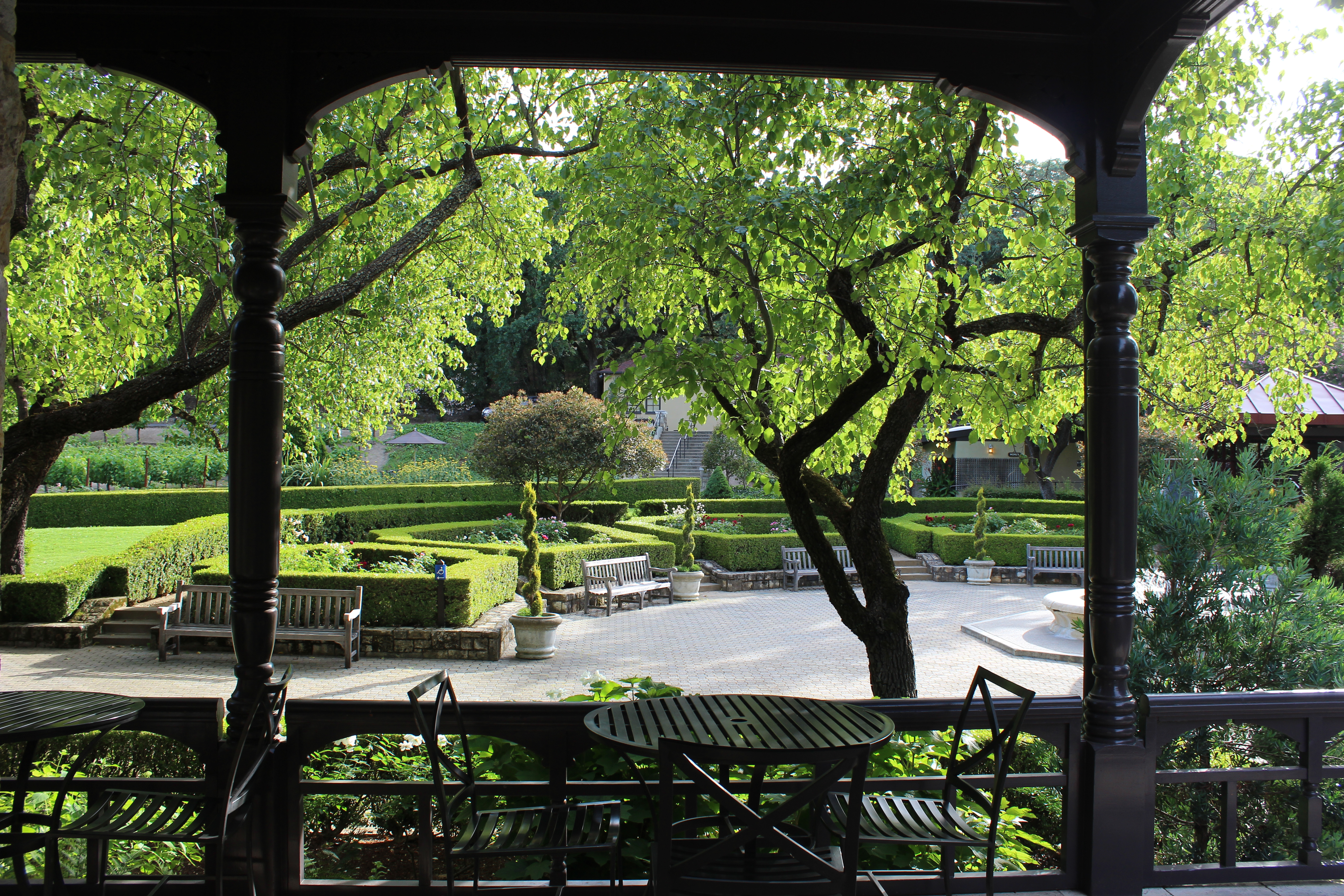 If you have the time before dinner, let Beringer Winery’s winding drive entice you for a quick visit. The expansive property is a stunner on Main Street, just a hop away from the Culinary Institute at Greystone. I can picture dinner parties and weddings here, and I am already dreaming of a beautiful evening at the Rhine House. Frederick Beringer’s former estate was completed in 1884 by architect Albert Schroepfer with the family’s German home at Mainz-on-the-Rhine as inspiration. The ornate Victorian architecture is unique in wine country, with its historic gables, turrets, and ornaments. If you prefer to host a private event underground, ask the Beringer team about the aging tunnels, dug into the hillside of Spring Mountain in th elate 19th century. I myself prefer to be above ground in the company of pink roses and weeping willows.
