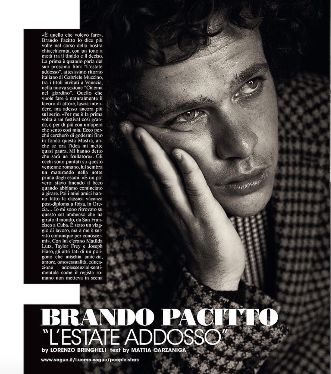 Published December 20, 2016 at 1056 × 1194 in Un giro with Lorenzo Bringheli From Lorenzo’s Instagram: Brando Pacitto for L’uomo Vogue ‹ Return to post Leave a comment Cancel reply Δ